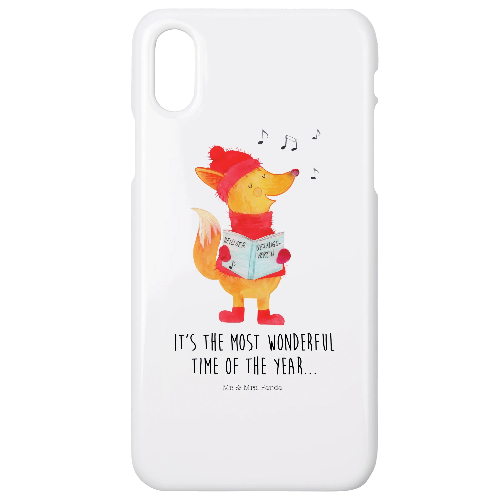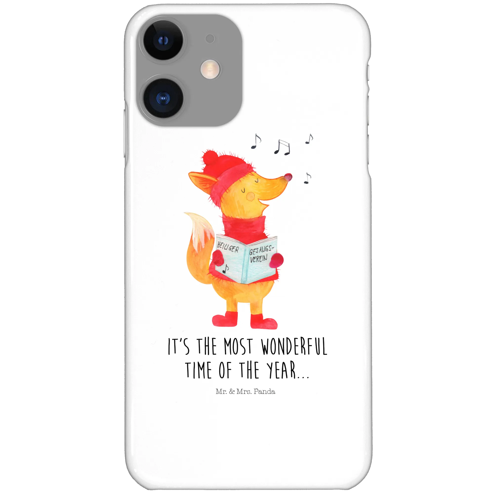 Featuring a joyful fox in a cozy red hat, matching scarf, and adorable red boots, this case embodies the fun and cheer of the winter season. As our musical fox sings merrily into a songbook adorned with the words "Heiliger Gesangsverein," you can almost hear the charming melodies of Christmas carols filling the air around you. This design captures the essence of winter magic, making it the perfect addition to your holiday gifting list!