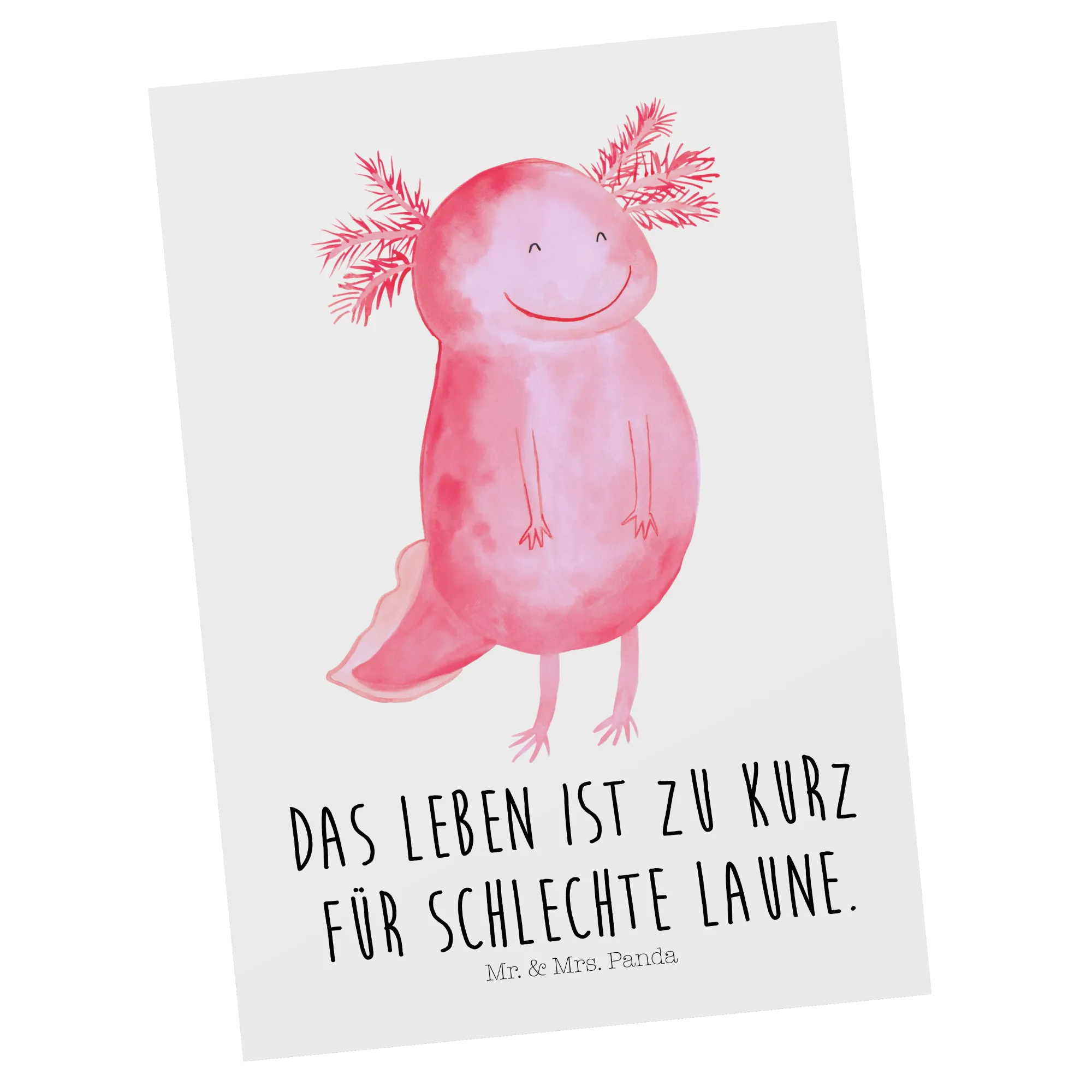 Designed without a slogan, its blank backside is ready for your personal notes, making it an ideal choice for birthdays, weddings, or simply to brighten someone's day! Imagine a friend receiving this lovely postcard in the mail; their smile will surely rival that of the adorable axolotl depicted, known for its ability to regenerate limbs and exude a contagious good mood!