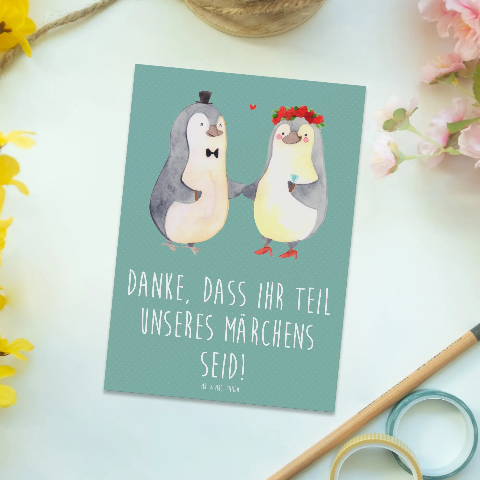Postcard Danke, dass ihr Teil unseres Märchens seid! – Mr. & Mrs. Panda