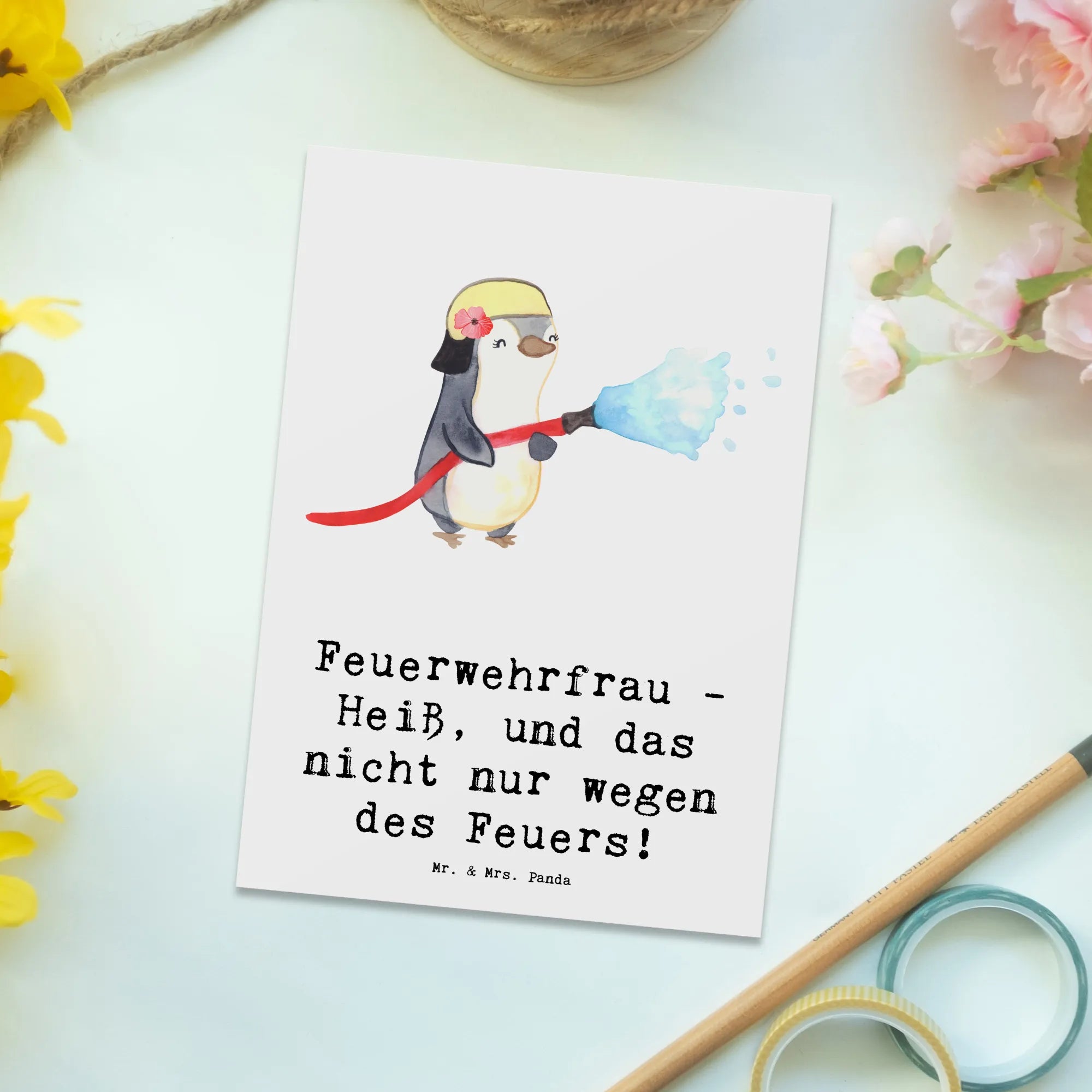 Postcard Feuerwehrfrau - Heiß, und das nicht nur wegen des Feuers! – Mr. & Mrs. Panda