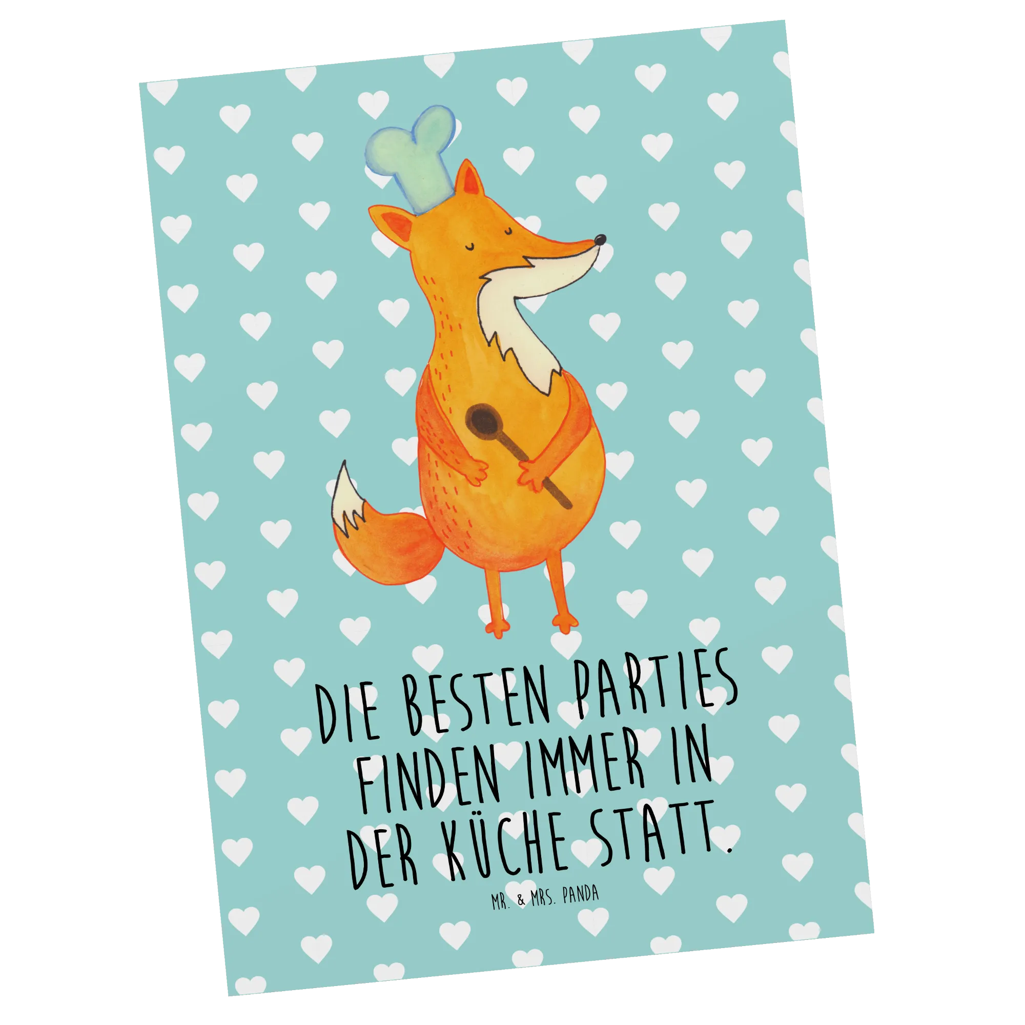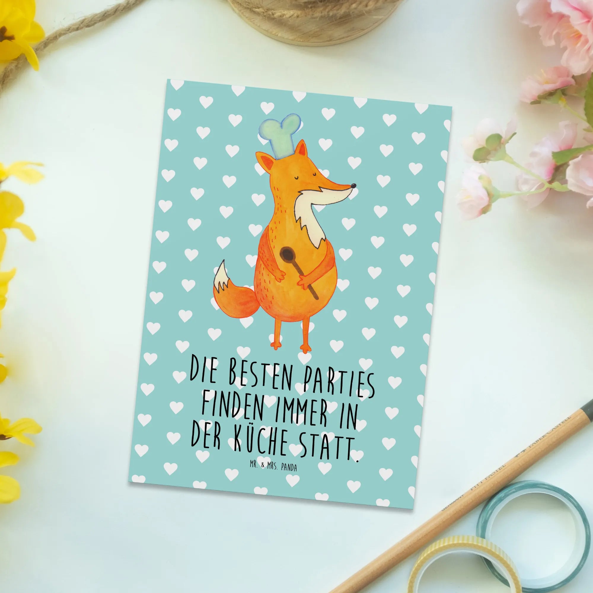 Postcard Fox A cook - with a saying - Turquoise Pastel