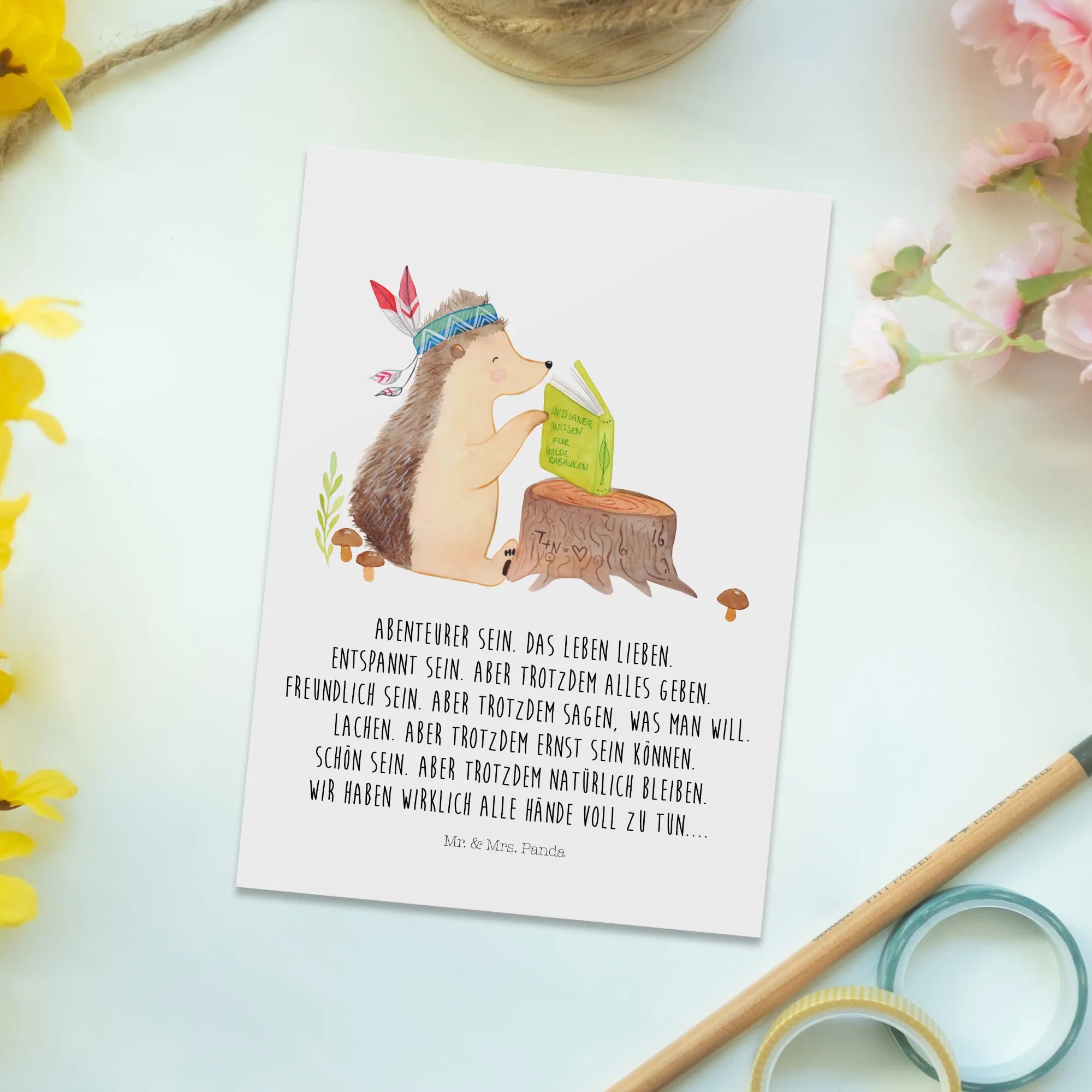 Looking for the perfect way to share your feelings or invite friends to an exciting adventure? The Mr. & Mrs. Panda Hedgehog Indians postcard from our Forest Animals collection is your delightful solution! This unique postcard features a charming illustration of a cute hedgehog wearing a feather headpiece, sitting on a tree stump with a book about adventures in its hands, ready to inspire others to embrace their own journey.