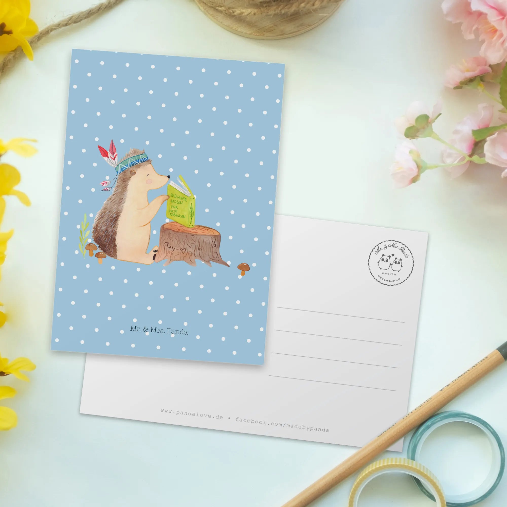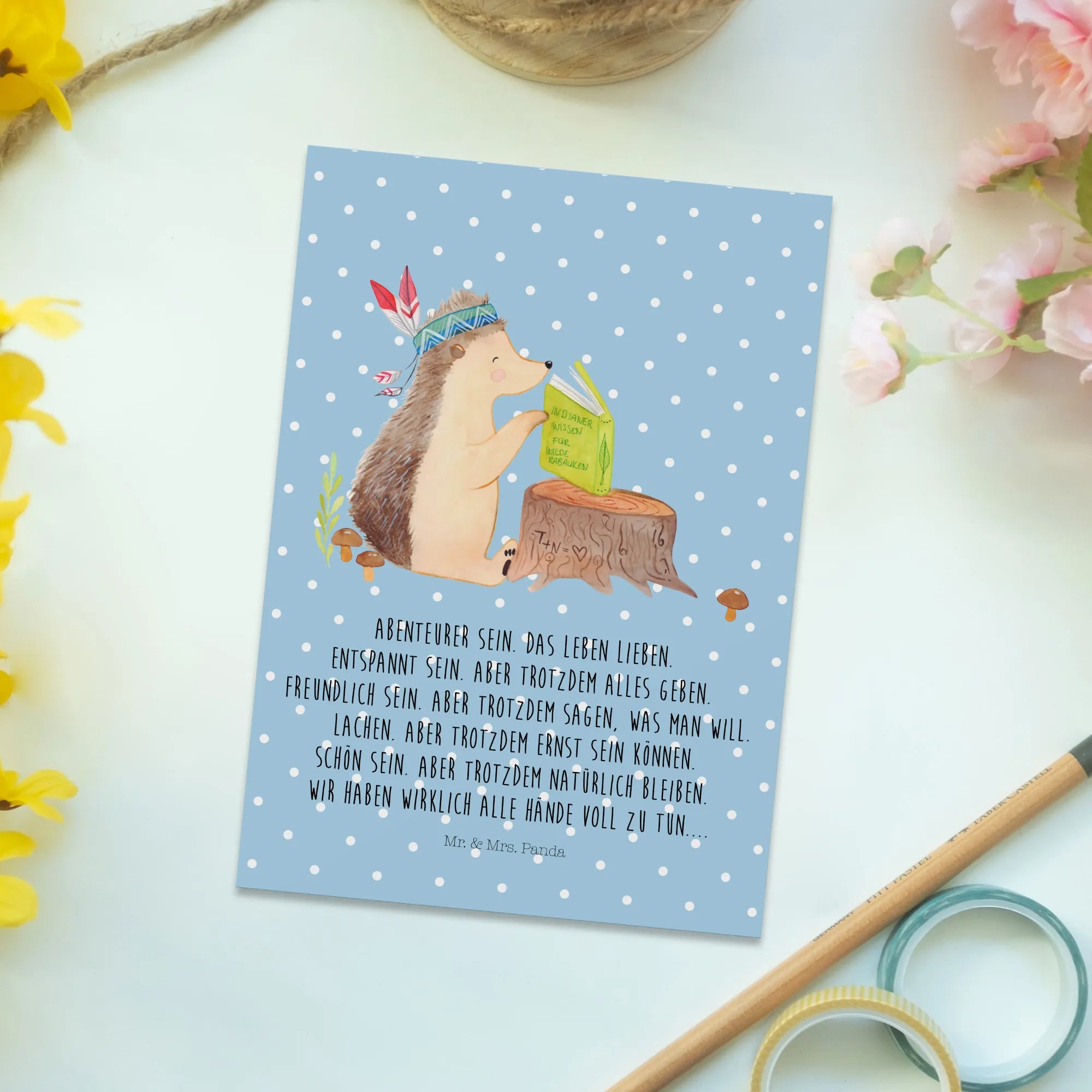 Postcard Hedgehog feather headdress - with a saying - Blue Pastel