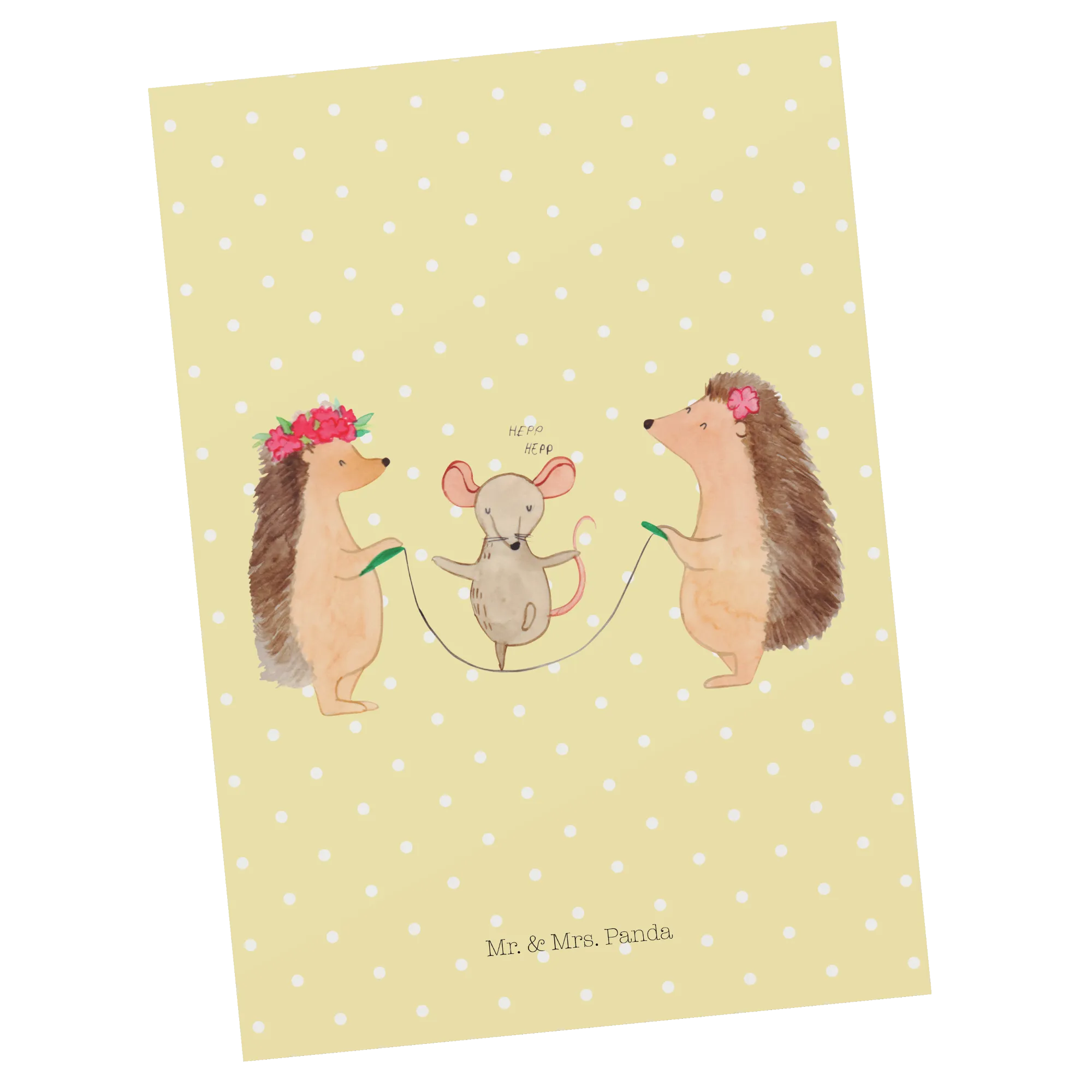 Postcard Hedgehog skipping - with saying - Pastel Yellow