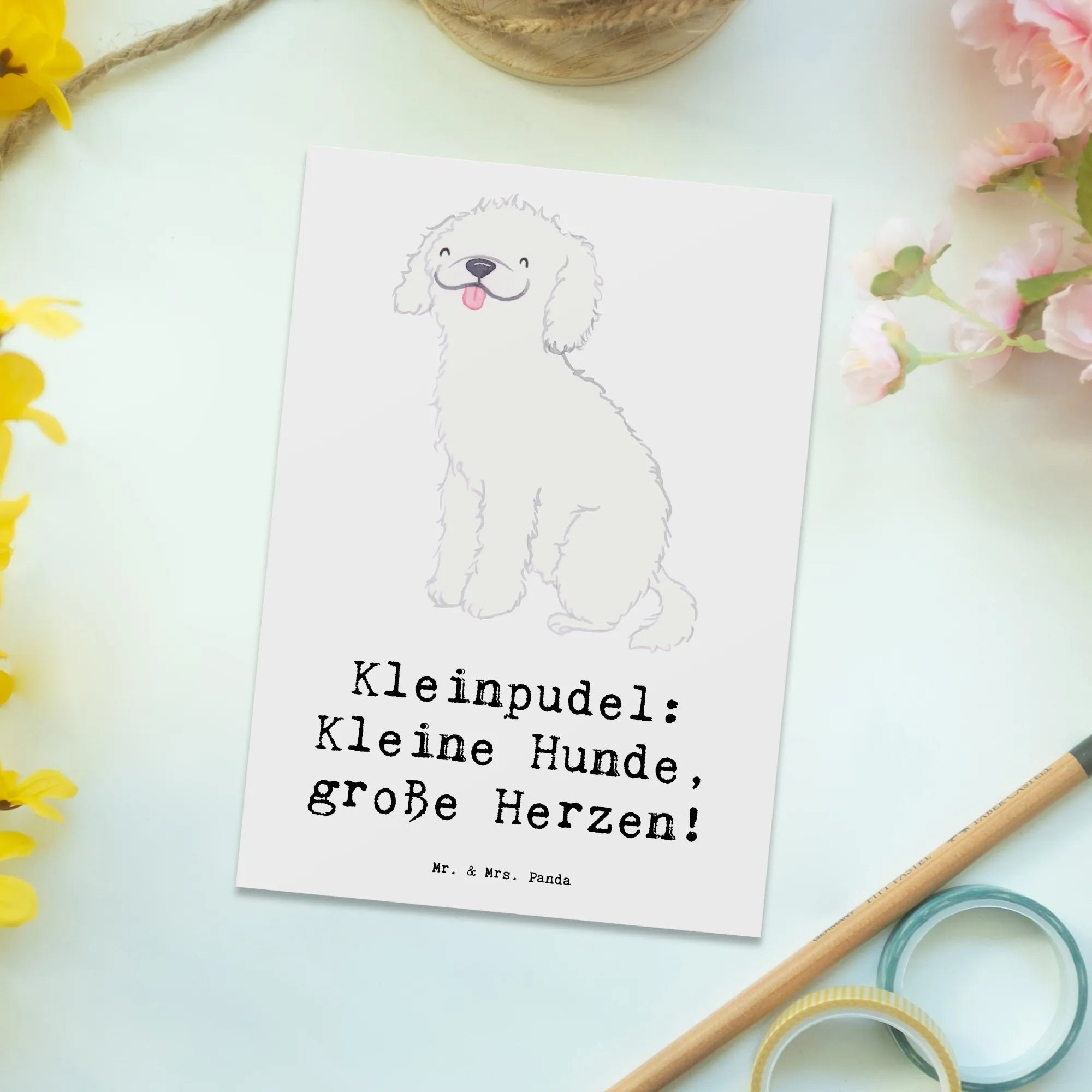Postcard Kleinpudel: Kleine Hunde, große Herzen! - White