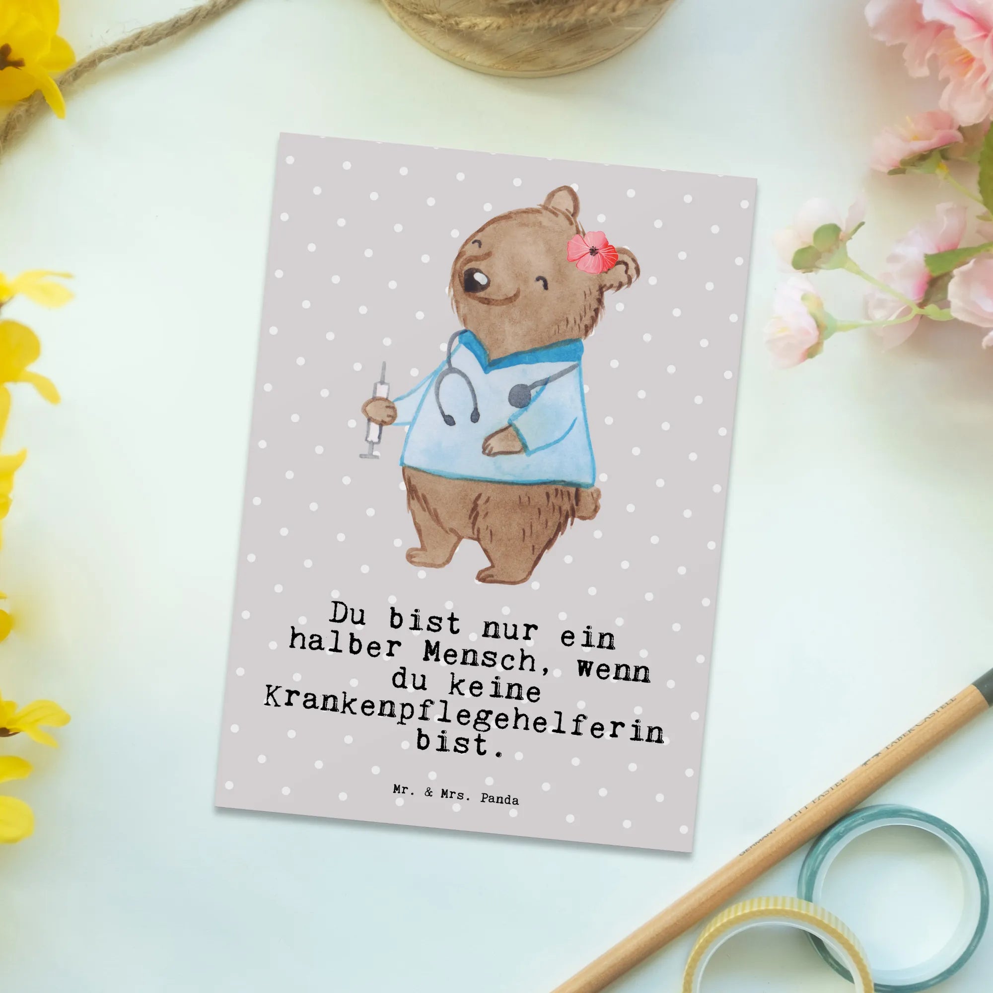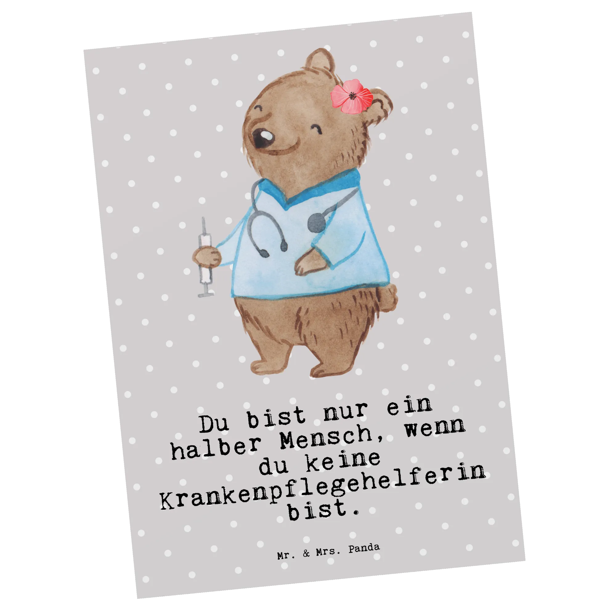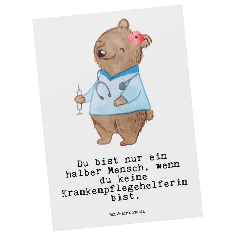 Looking for the perfect way to celebrate the incredible work of a nursing assistant? Look no further than our delightful Mr. & Mrs. Panda Postcard, specifically designed for those dedicated professionals who tirelessly care for others! This charming postcard features an adorable illustration of our little bear, embodying the spirit of a nursing assistant. Her caring nature shines through as she helps patients with washing, eating, and ensuring their comfort. Each postcard comes with a blank back, perfect for you to add your own personal message or heartfelt note.
