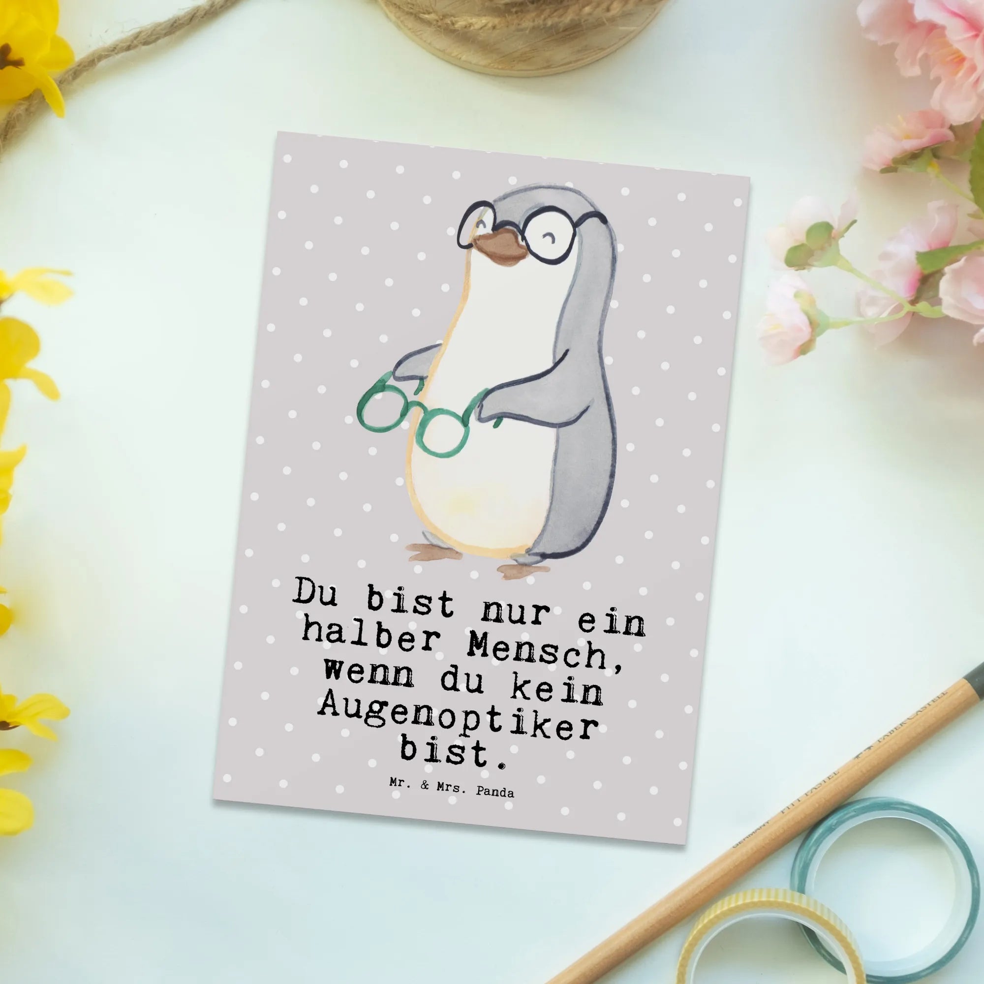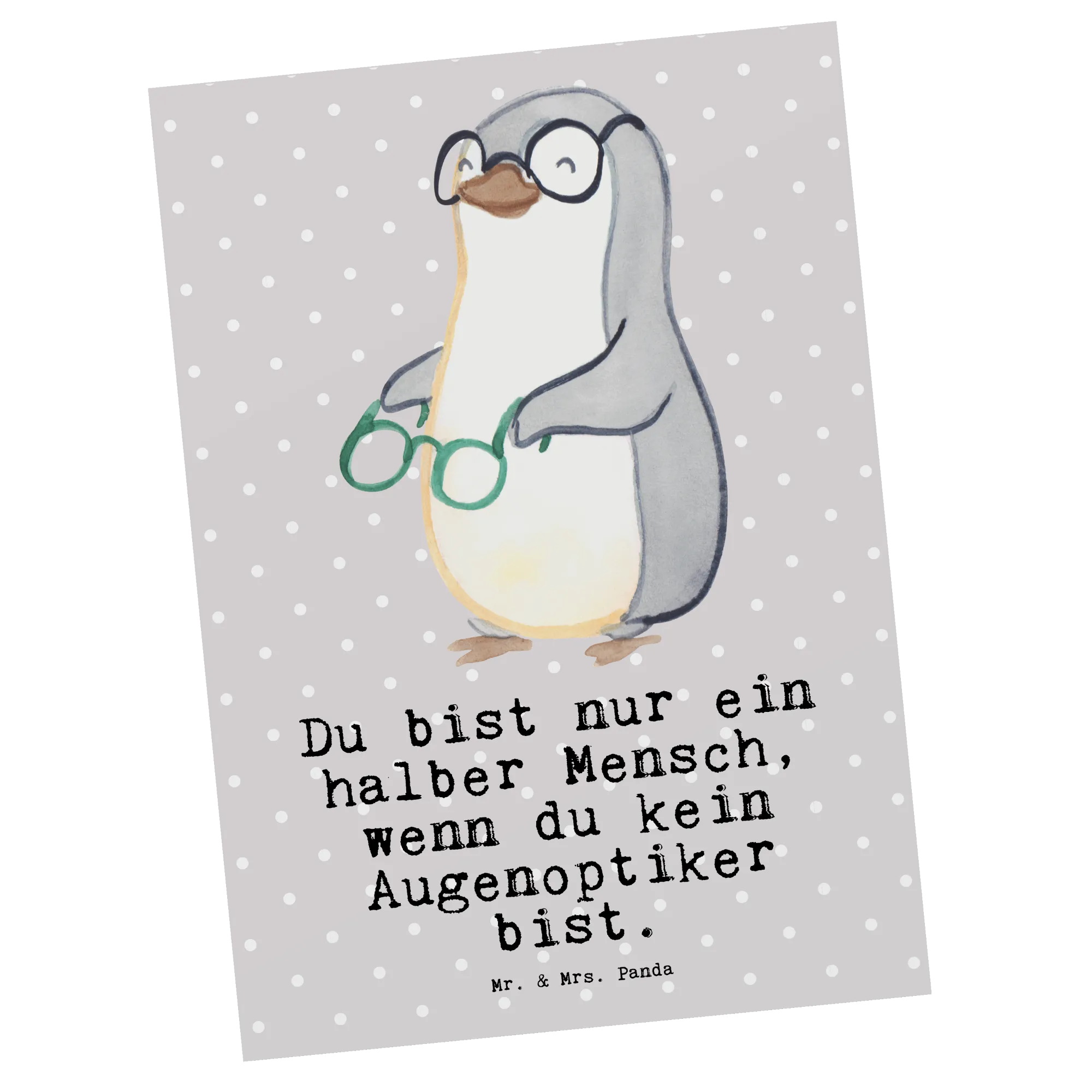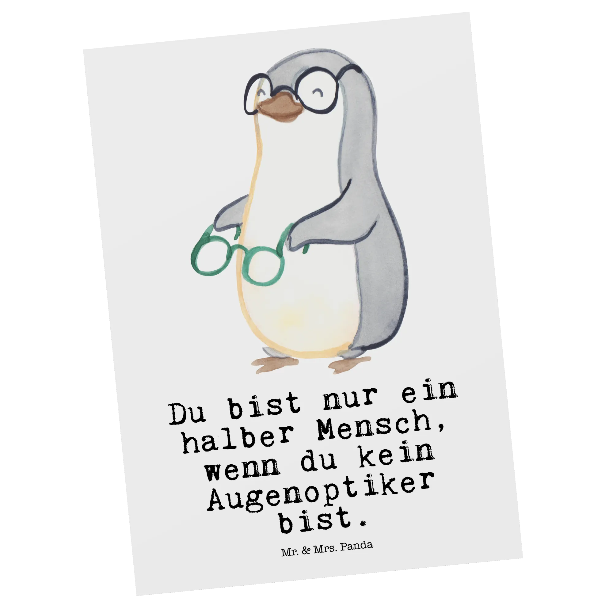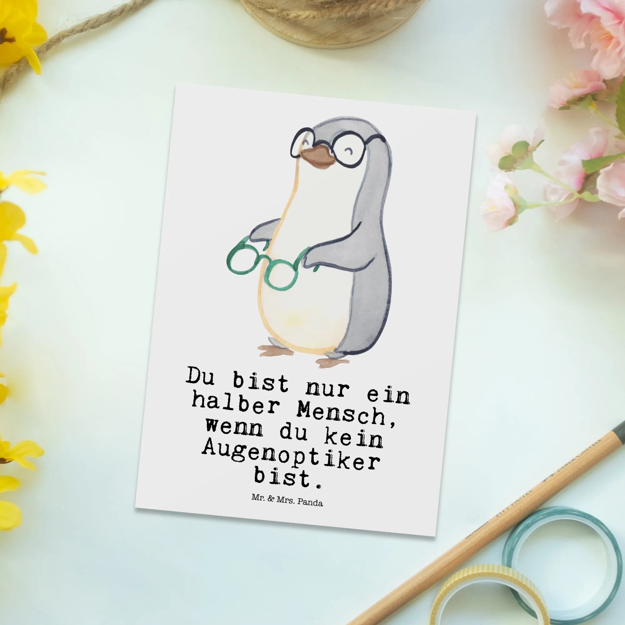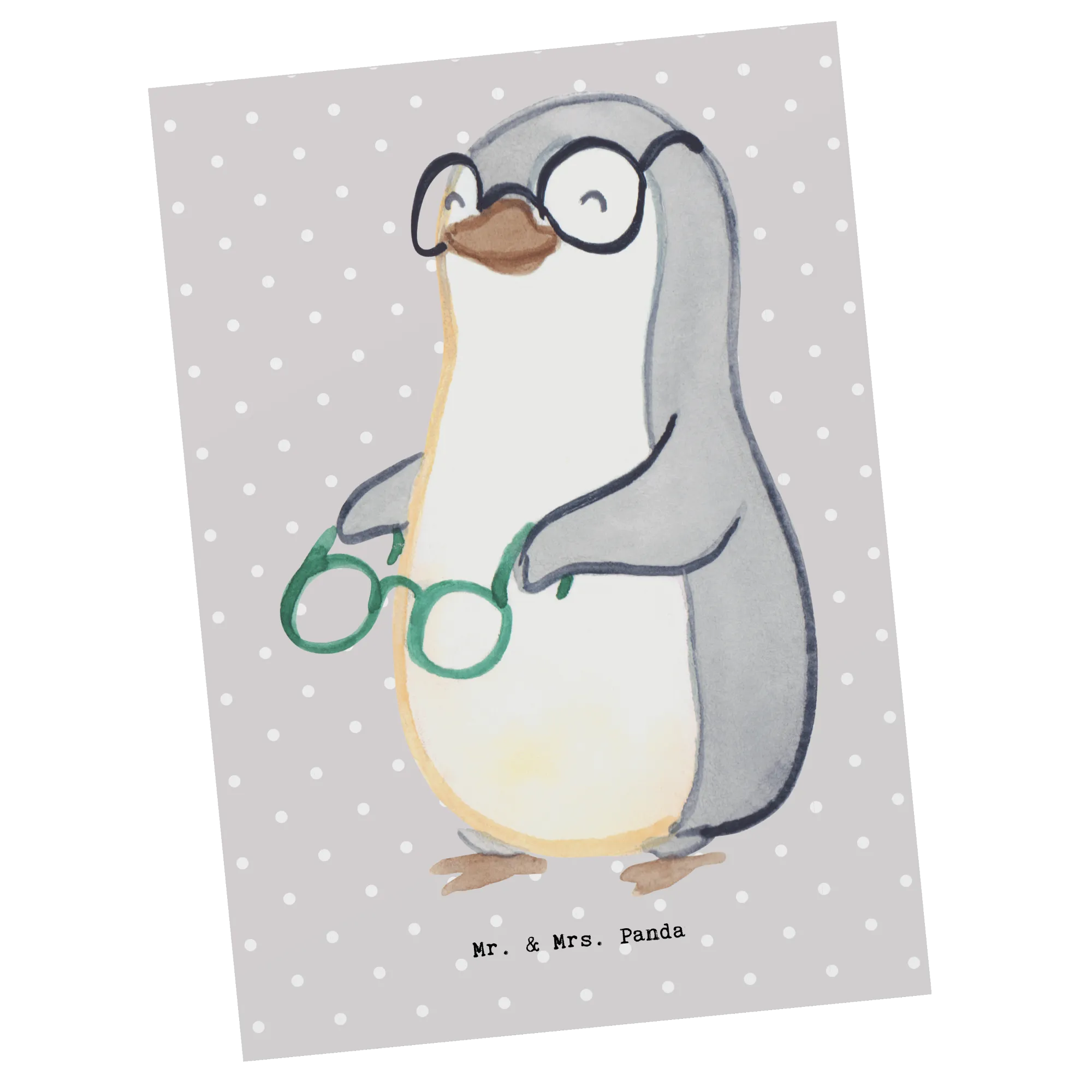 Are you on the hunt for the perfect gift for an optician? Look no further than this charming postcard featuring a delightful design from Mr. & Mrs. Panda! Our unique postcard showcases an adorable little penguin holding a custom pair of glasses, perfectly embodying the spirit of the optician profession. Measuring 150mm x 100mm (6 inches x 4 inches), this card is crafted from high-quality 300-gram carton, ensuring it feels just as precious as the message you'll be sending.
