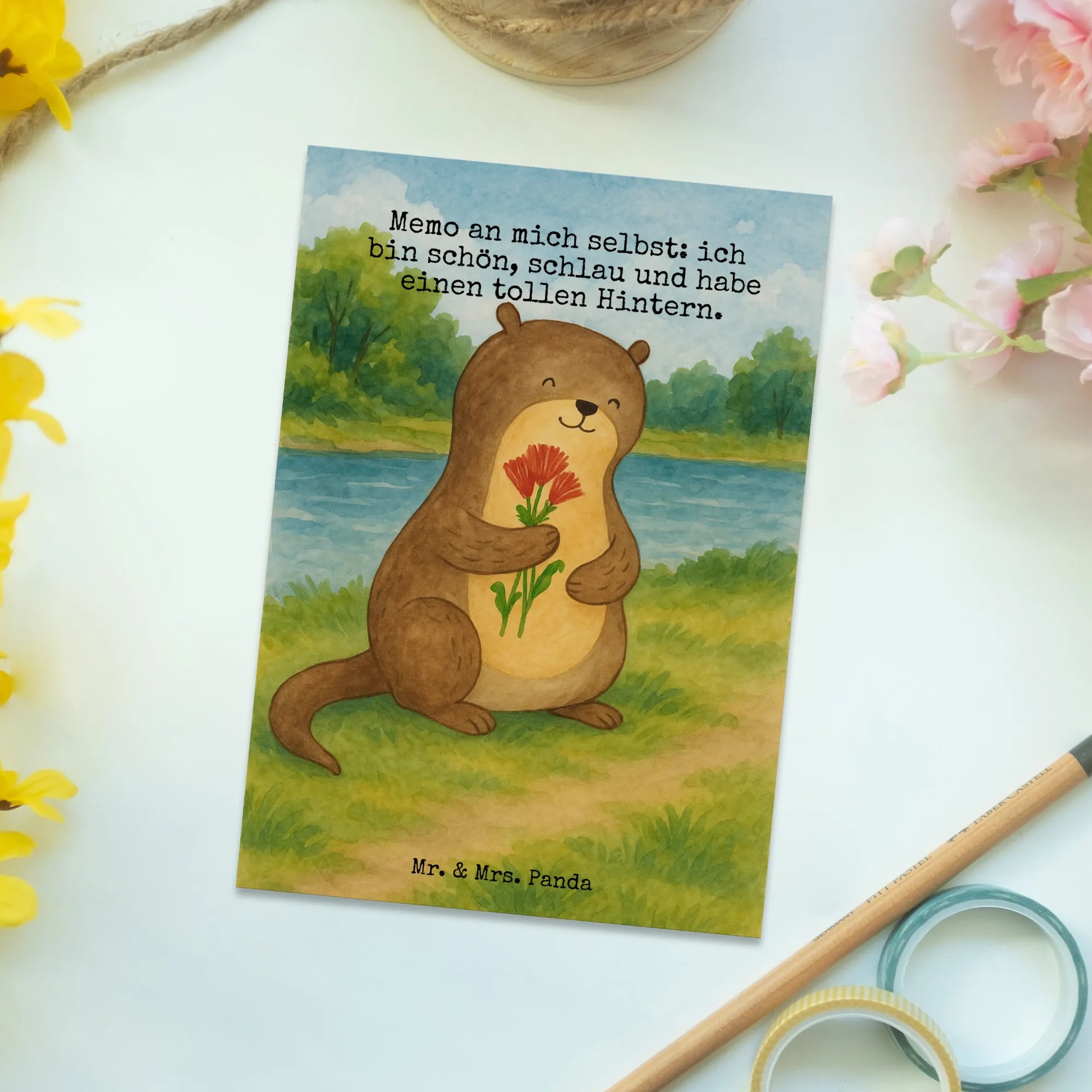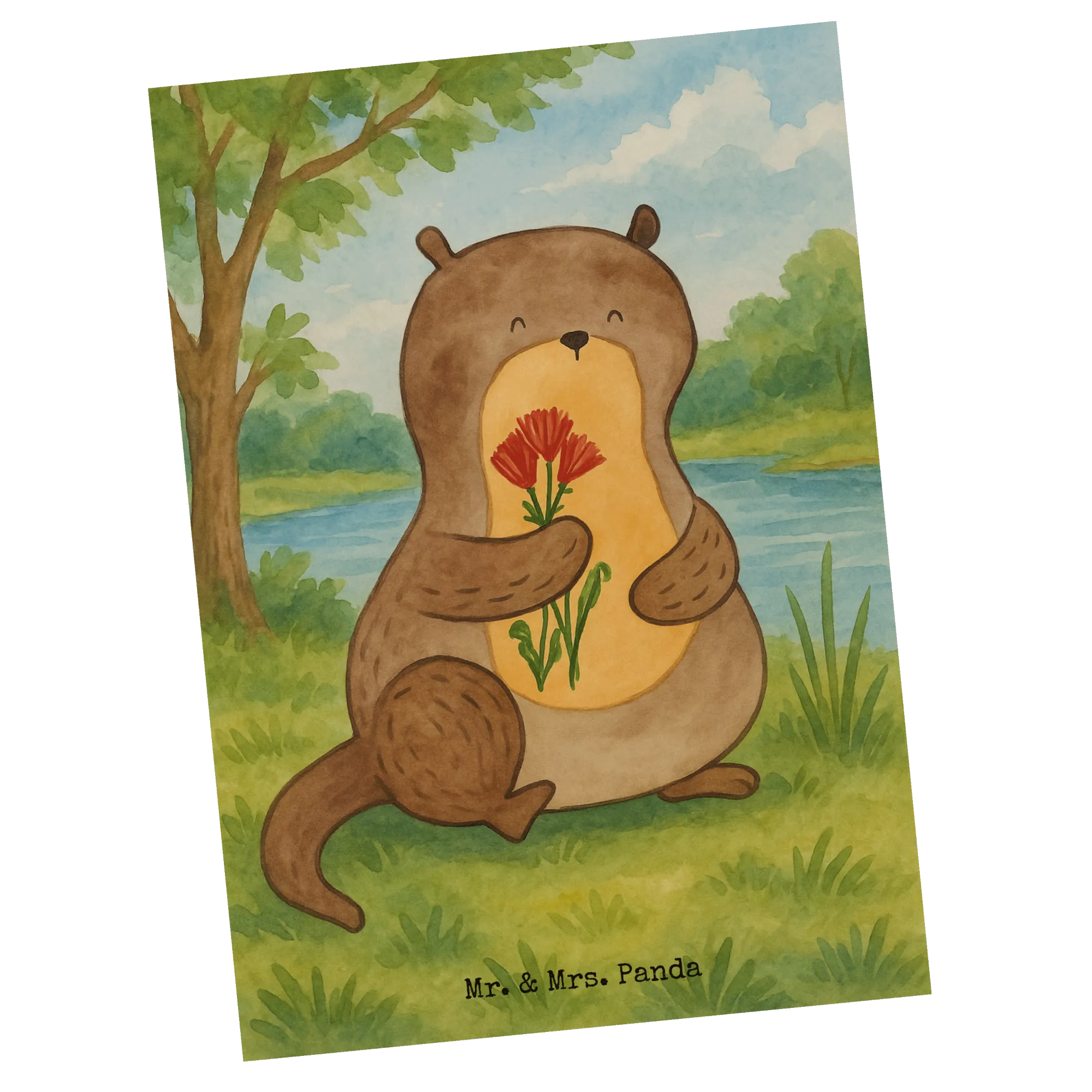 Postcard otter Bunch of flowers Design - with a saying