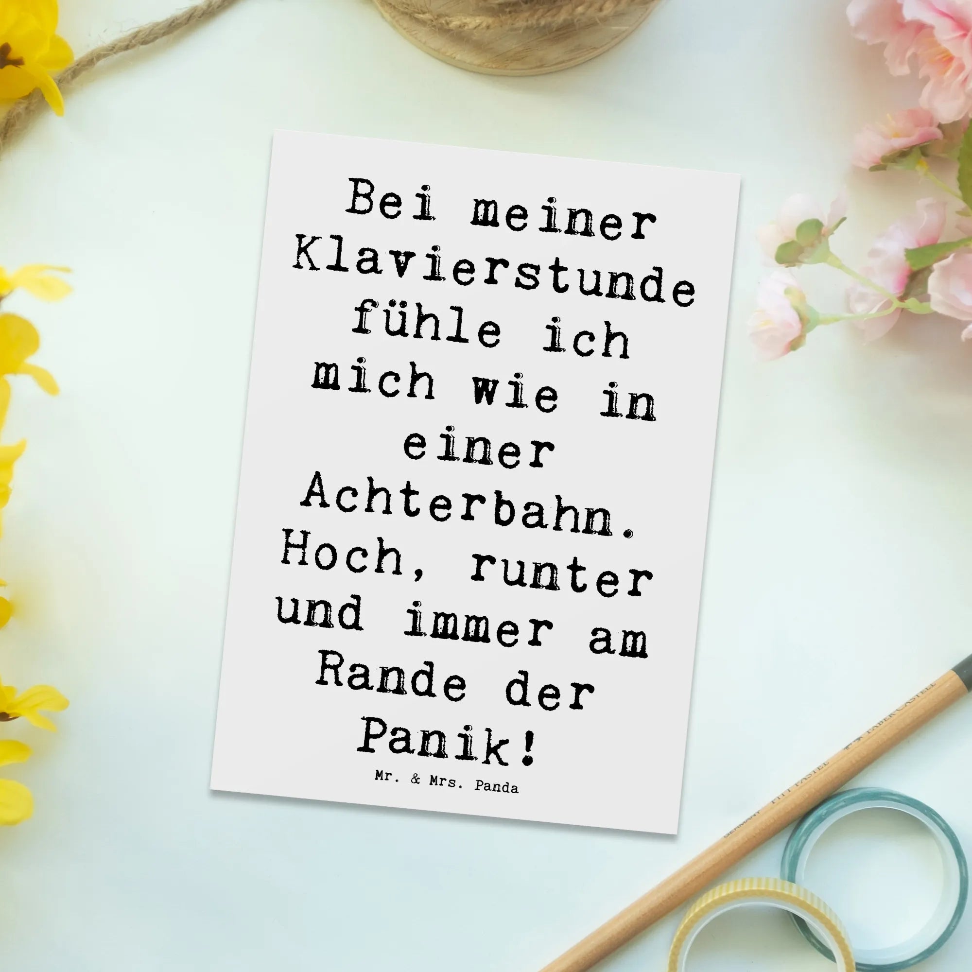 Postcard Saying Bei meiner Klavierstunde fühle ich mich wie in einer Achterbahn. Hoch, runter und immer am Rande der Panik! - White