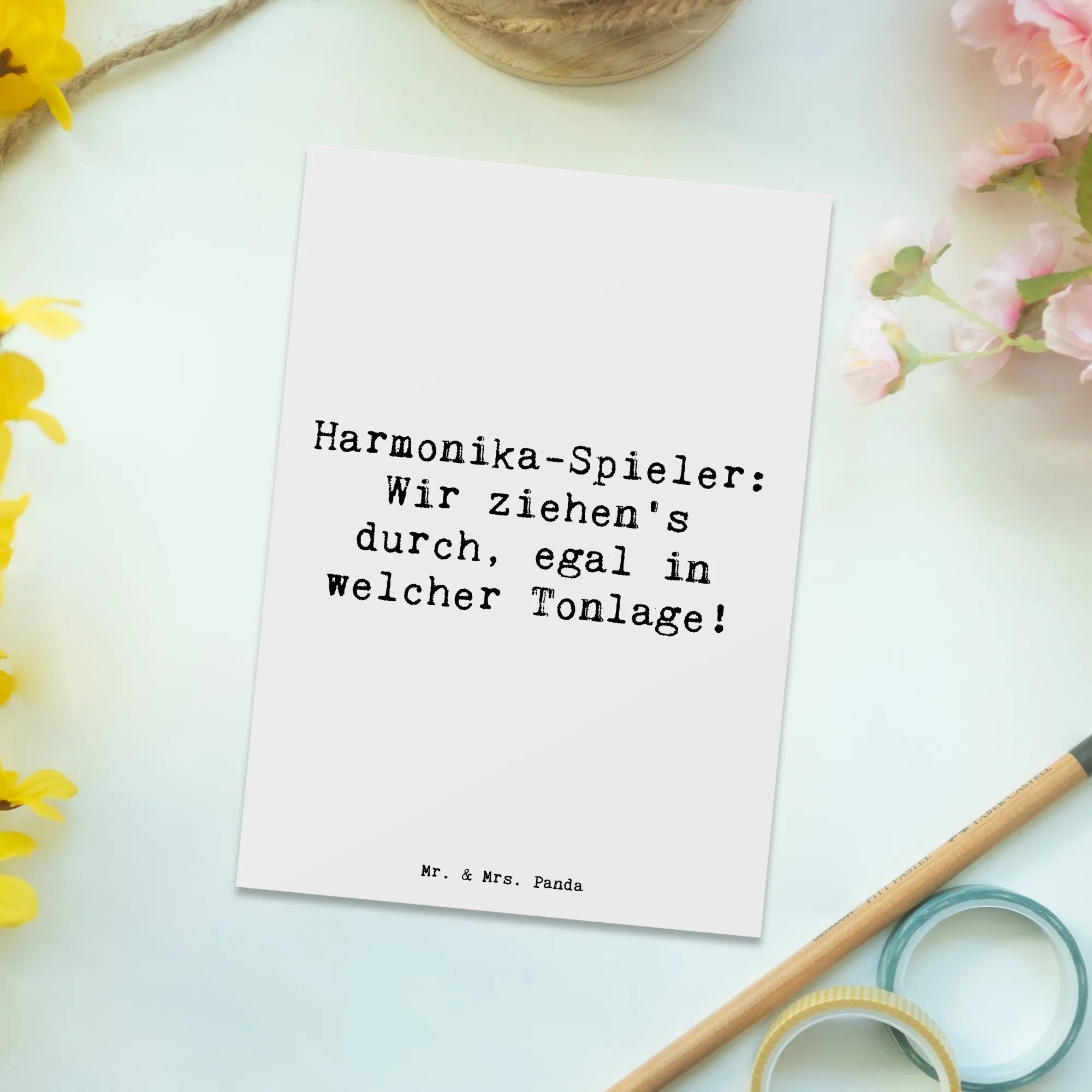 Postcard Saying Harmonika-Spieler: Wir ziehen’s durch, egal in welcher – Mr. & Mrs. Panda