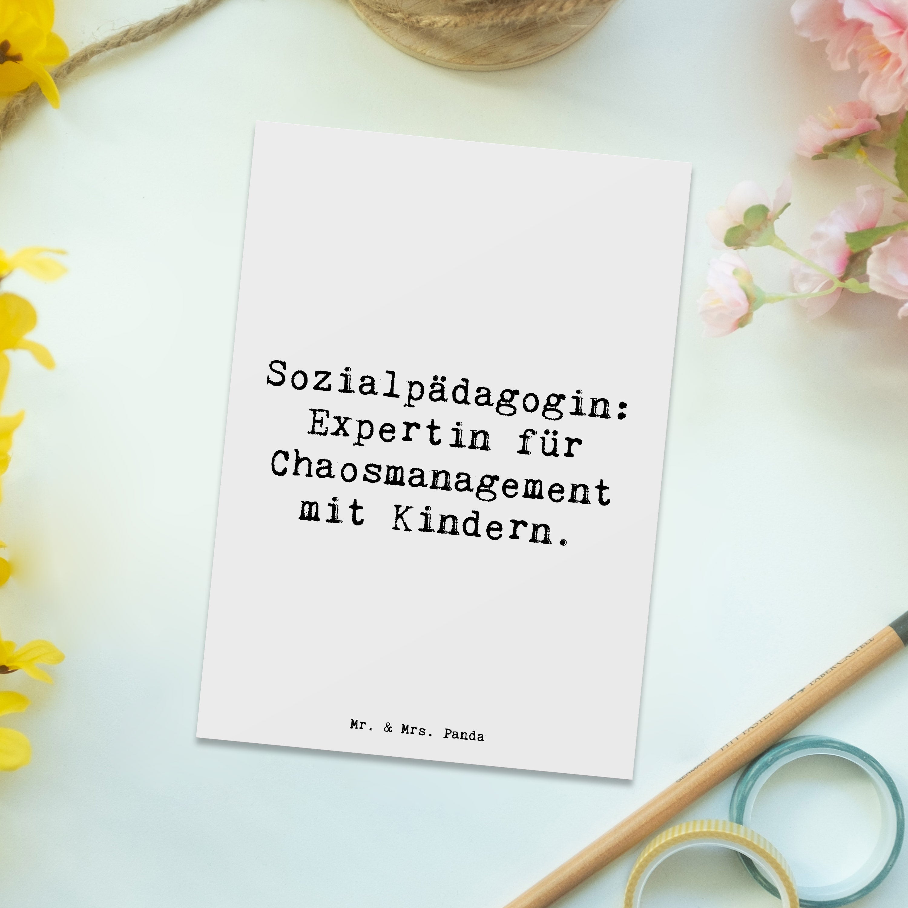 Perfektes Geschenk für Sozialpädagoginnen 🌸 Diese charmante Postkarte aus der Berufe-Kollektion von Mr. & Mrs. Panda ist eine liebevolle Hommage an alle Sozialpädagoginnen, die täglich mit Geduld und Herz arbeiten. Auf der Vorderseite steht der freche Spruch „Sozialpädagogin: Expertin für Chaosmanagement mit Kindern.“ – ein kurzweiliges Statement, das Anerkennung und Humor verbindet.
