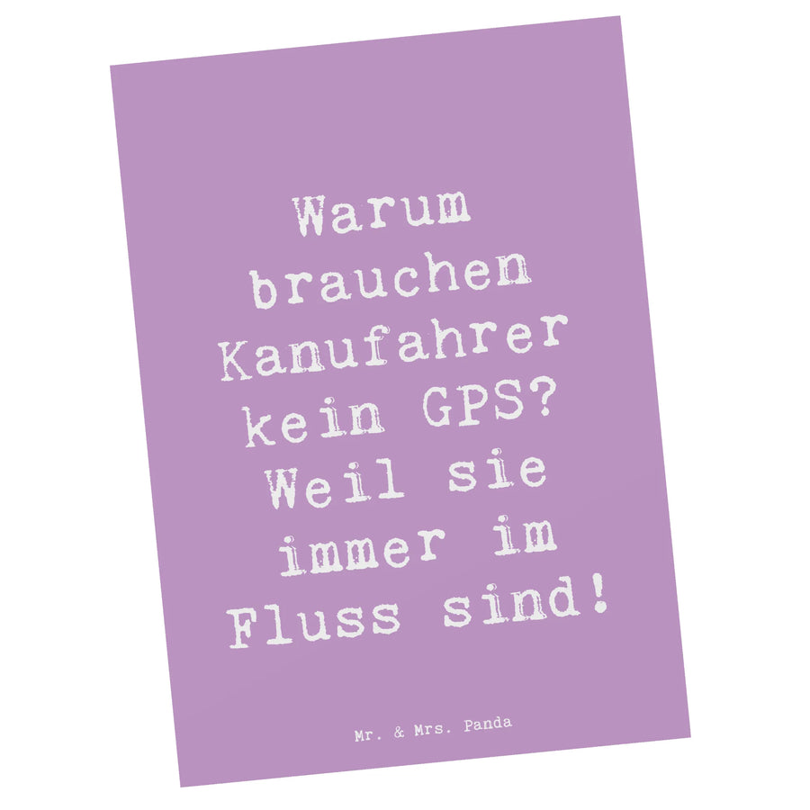 Postcard Saying Warum brauchen Kanufahrer kein GPS? Weil sie immer im Fluss sind! - Lavender Dream