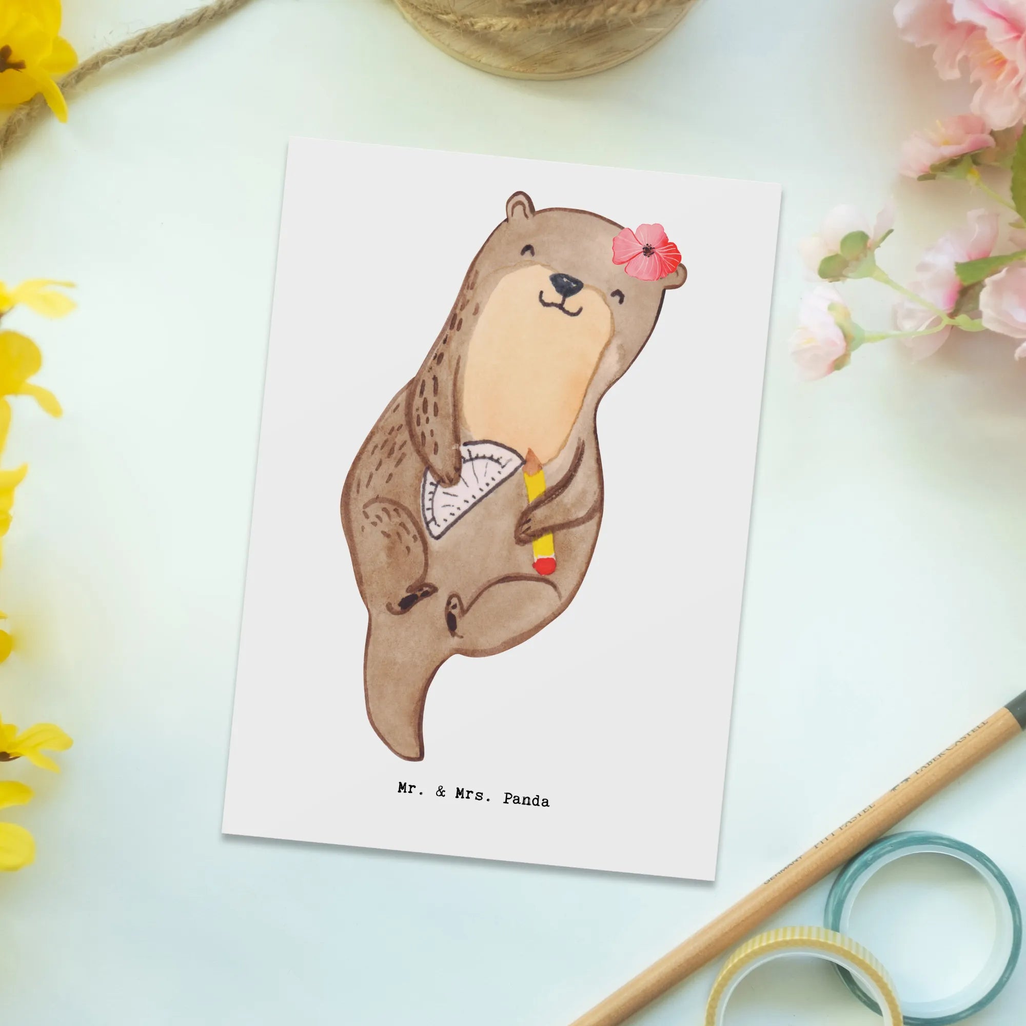 Playful Otter with Ruler & Pencil - Ideal for Designers & Engineers