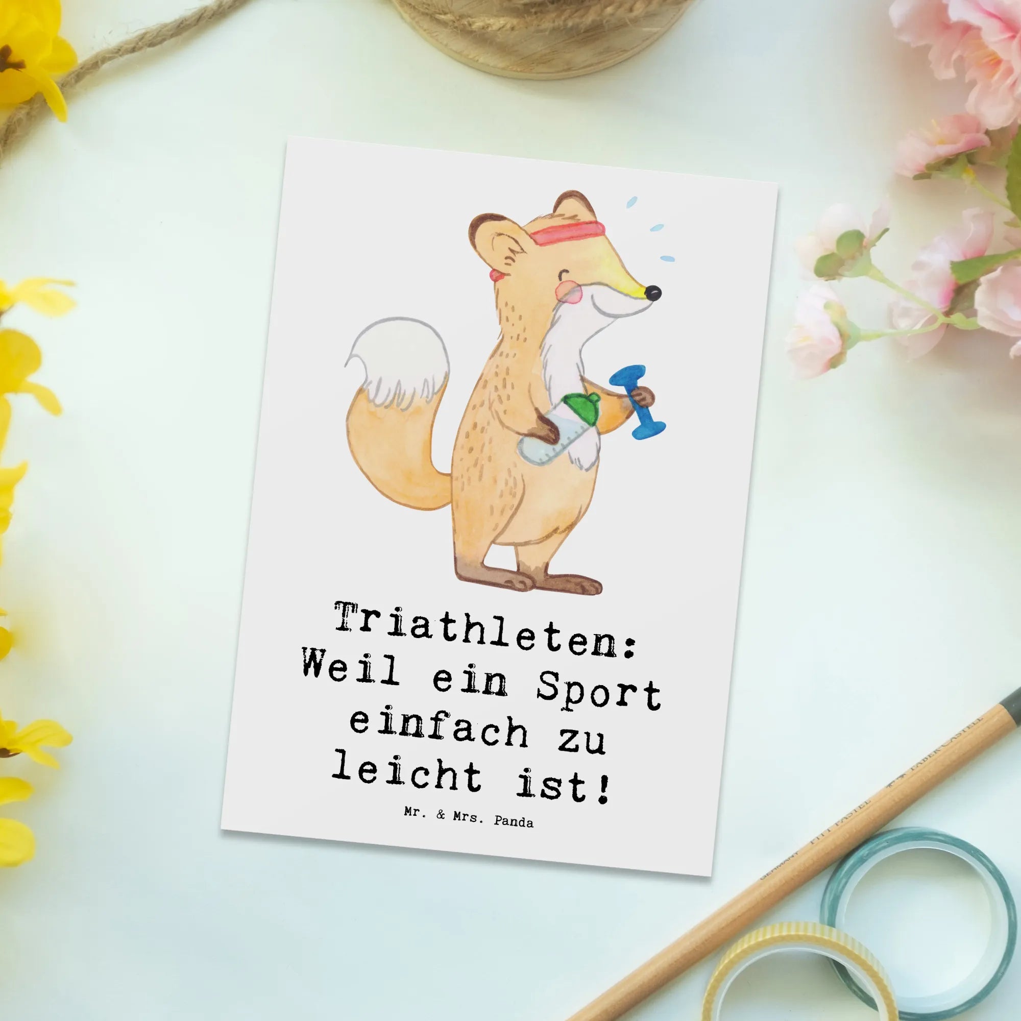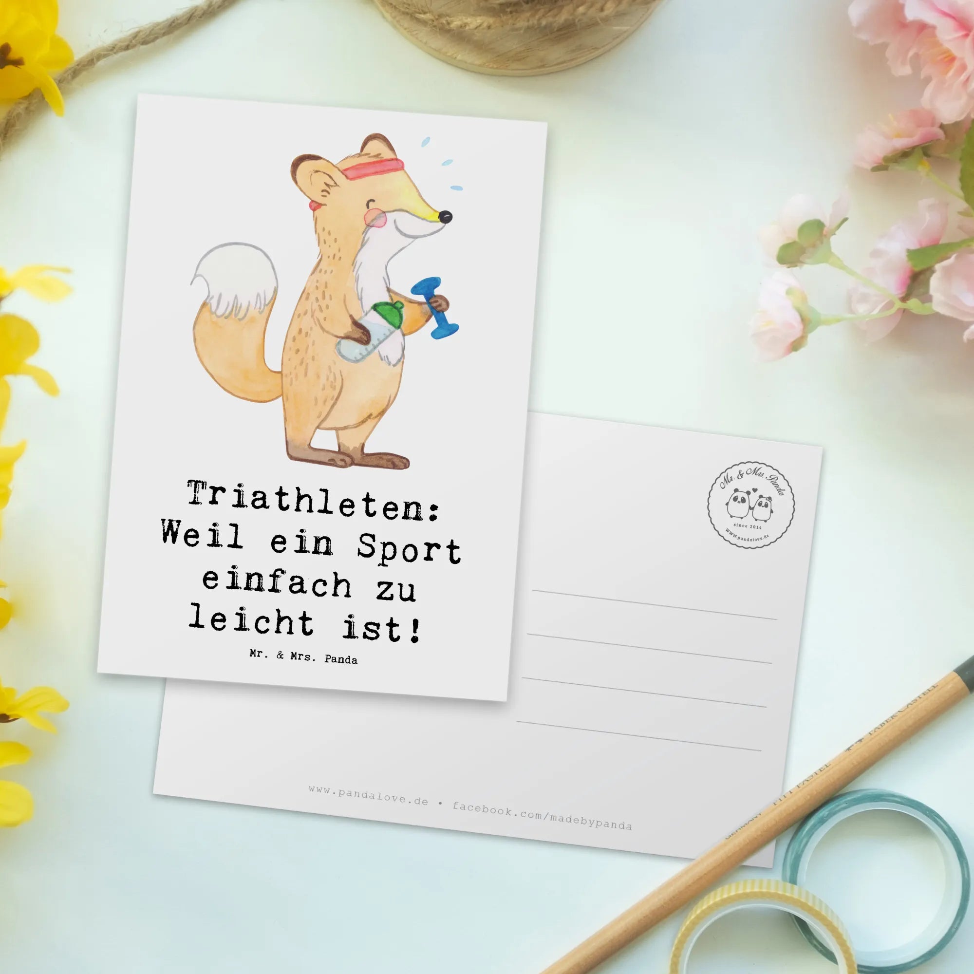 Du suchst nach dem perfekten Geschenk für einen Sportliebhaber, der den Triathlon als seine Leidenschaft entdeckt hat? Unsere einzigartige Postkarte mit dem witzigen Slogan "Triathleten: Weil ein Sport einfach zu leicht ist!" von Mr. & Mrs. Panda ist genau das, was du brauchst! Diese Karte aus hochwertigem 300 Gramm Karton ist nicht nur ein Eyecatcher, sondern zaubert jedem Triathleten ein Lächeln ins Gesicht.