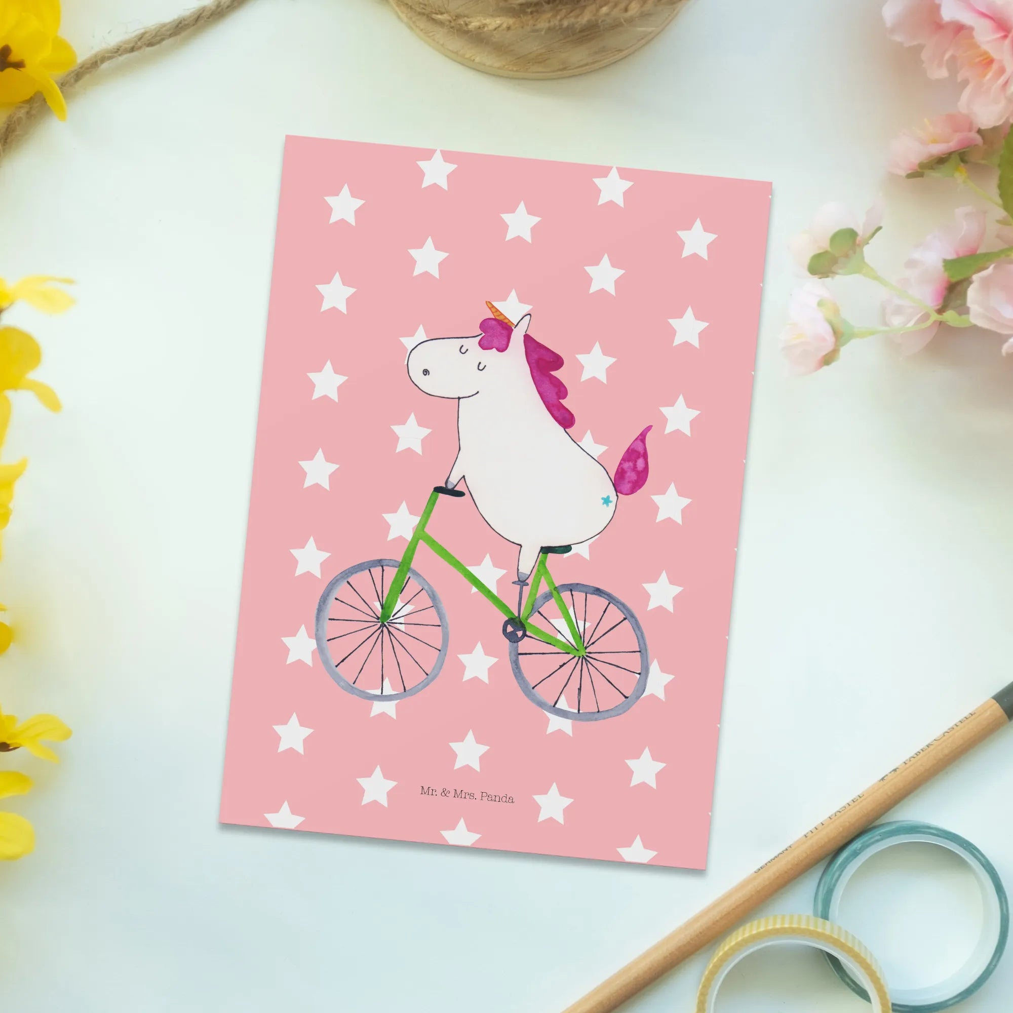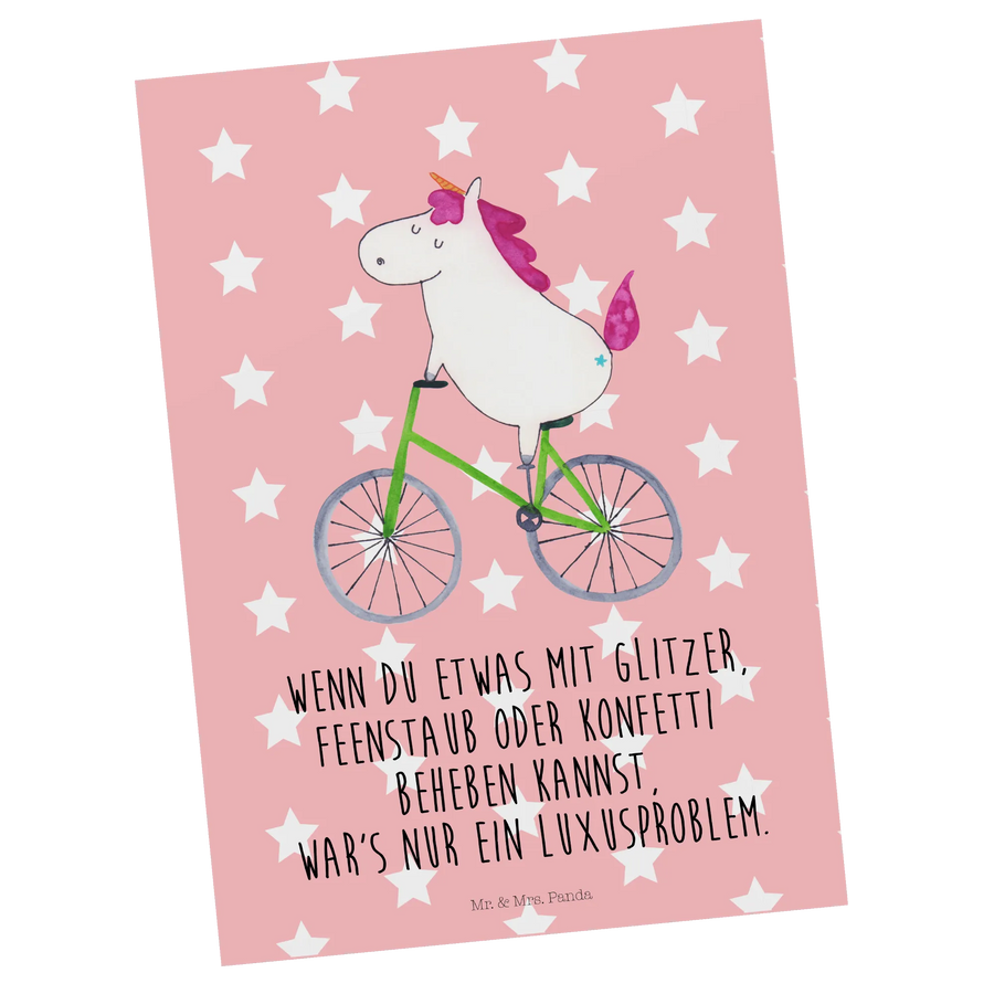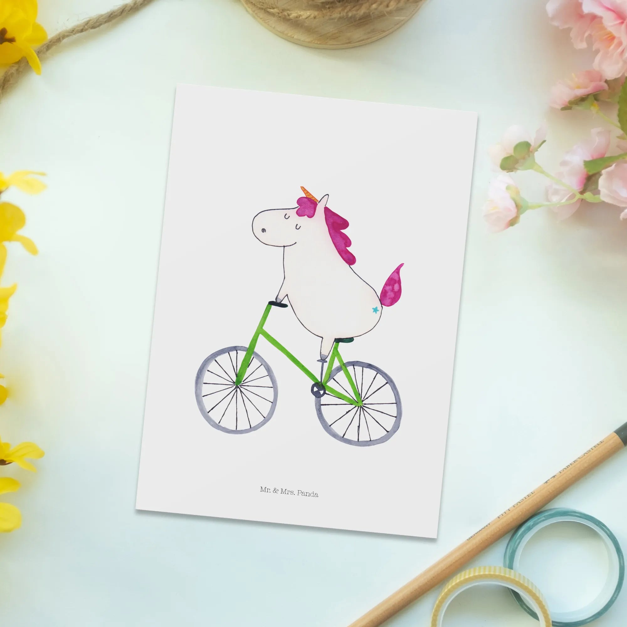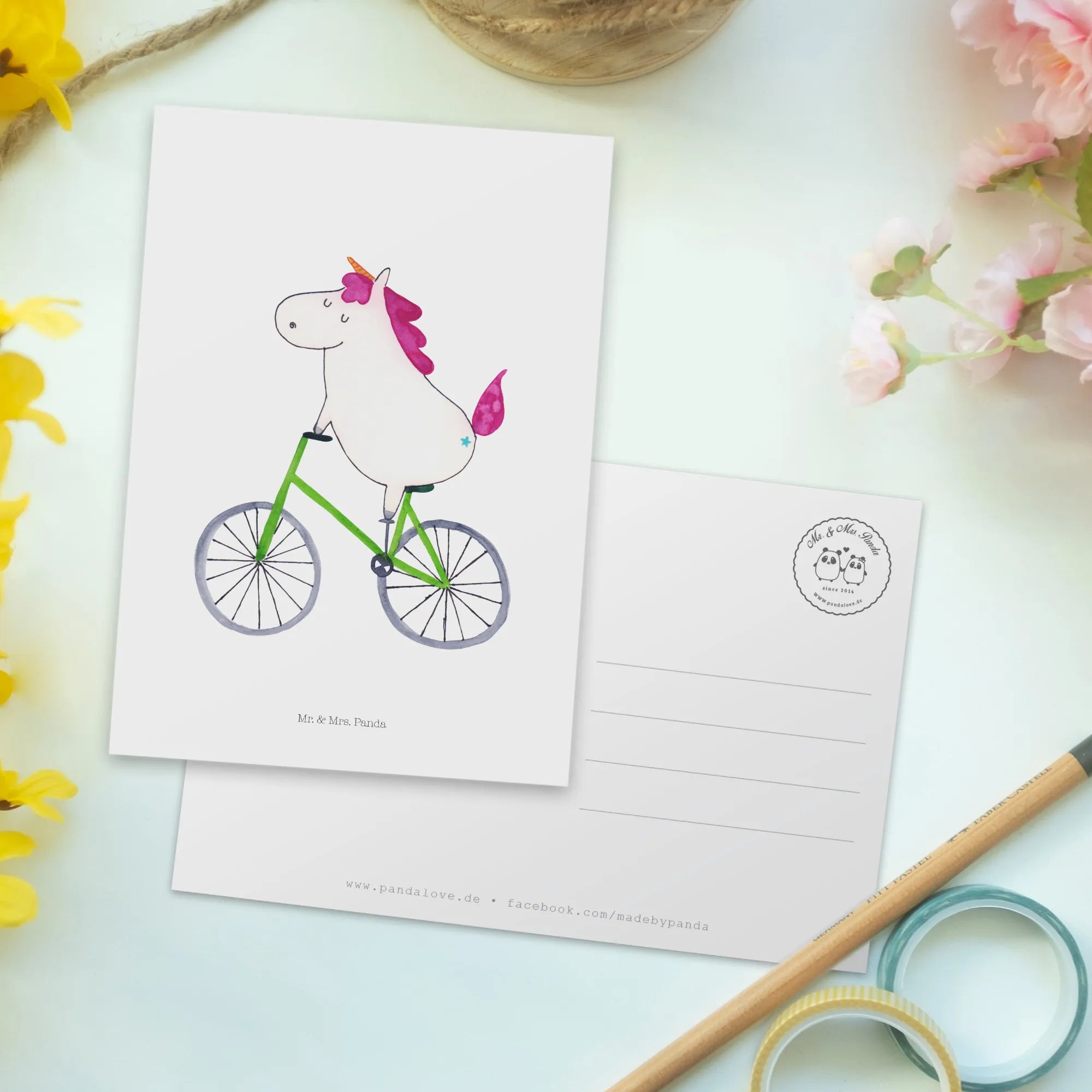 Introducing the delightful Postcard Unicorn Cyclist from the magical Unicorn - Collection by Mr. & Mrs. Panda! This postcard is far more than just a piece of paper; it’s an enchanting way to sprinkle some joy and fairy dust into your loved ones' lives. With its vibrant illustration of a cheerful unicorn cycling through a world filled with confetti, this postcard captures the essence of whimsy and light-heartedness that we all need from time to time.