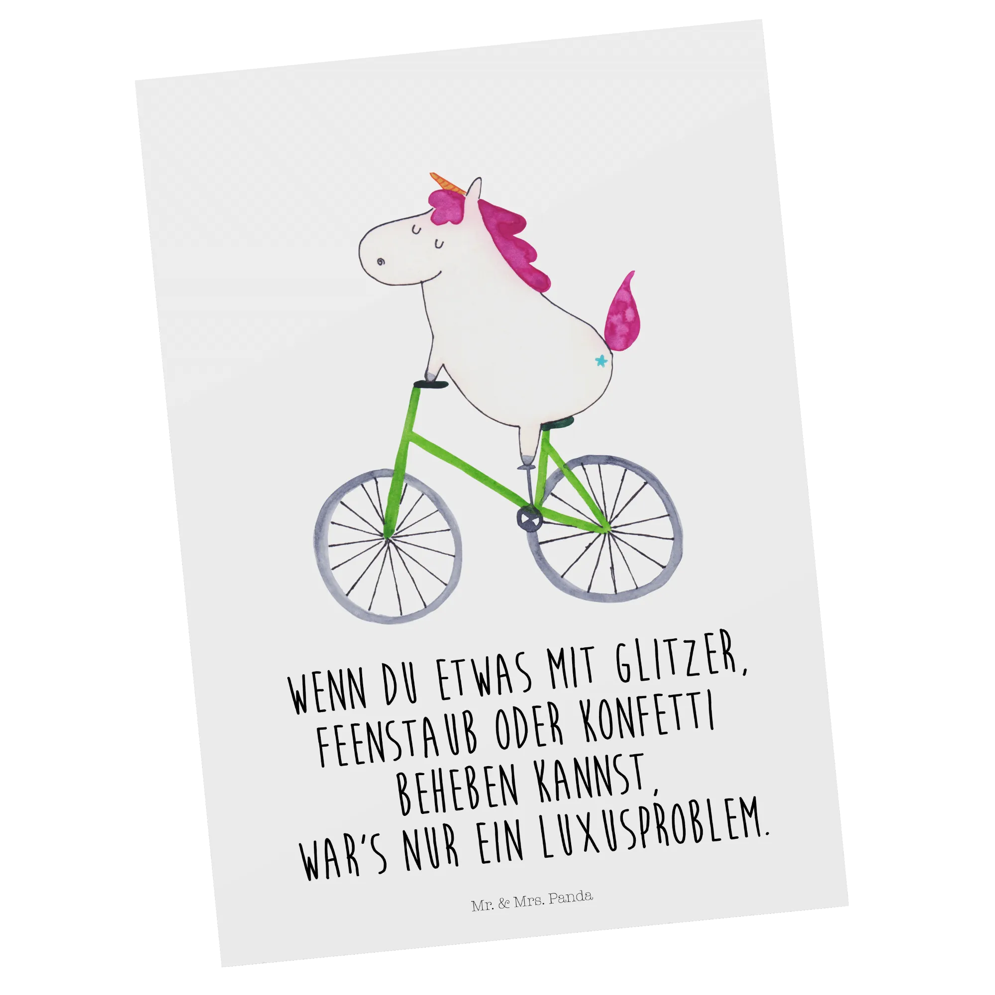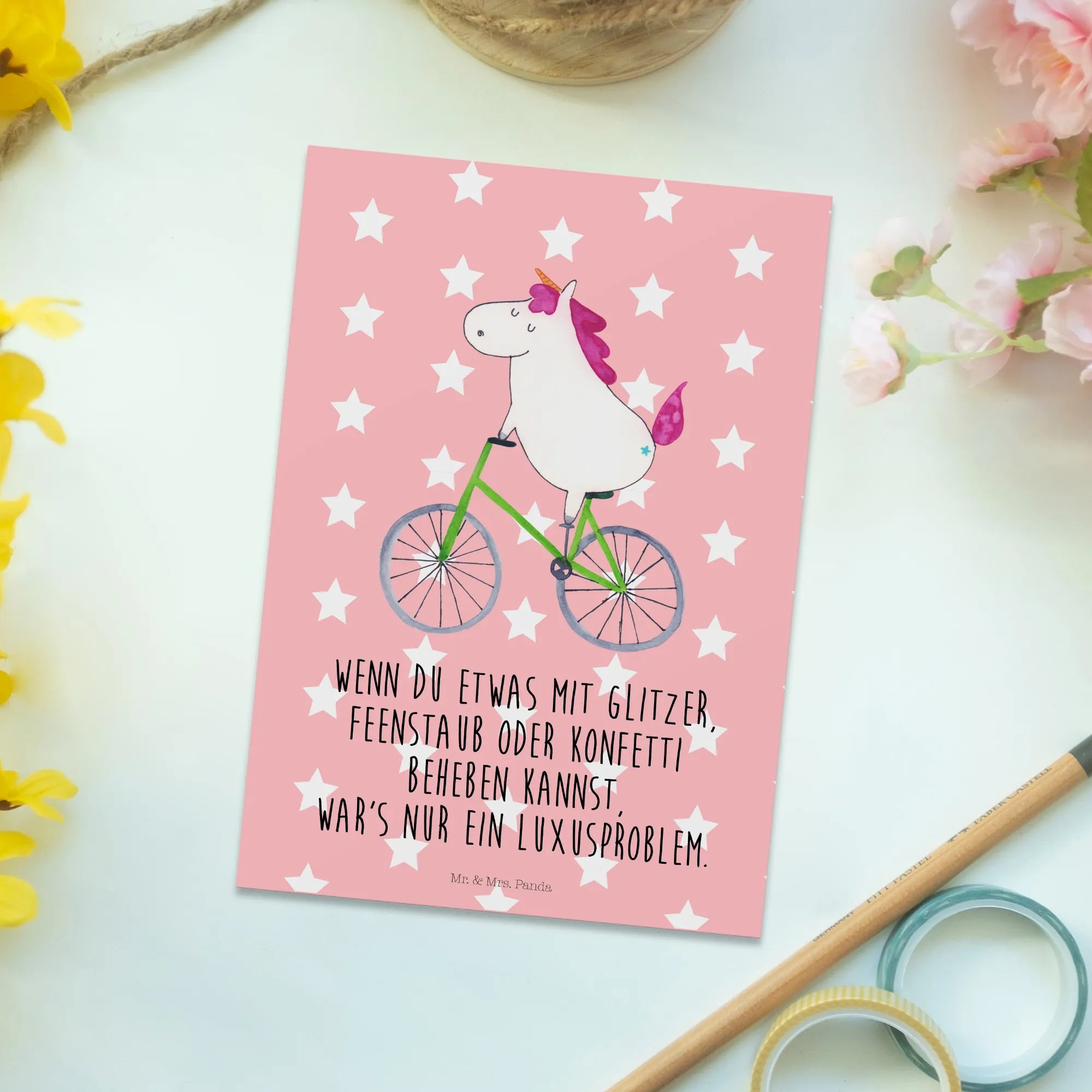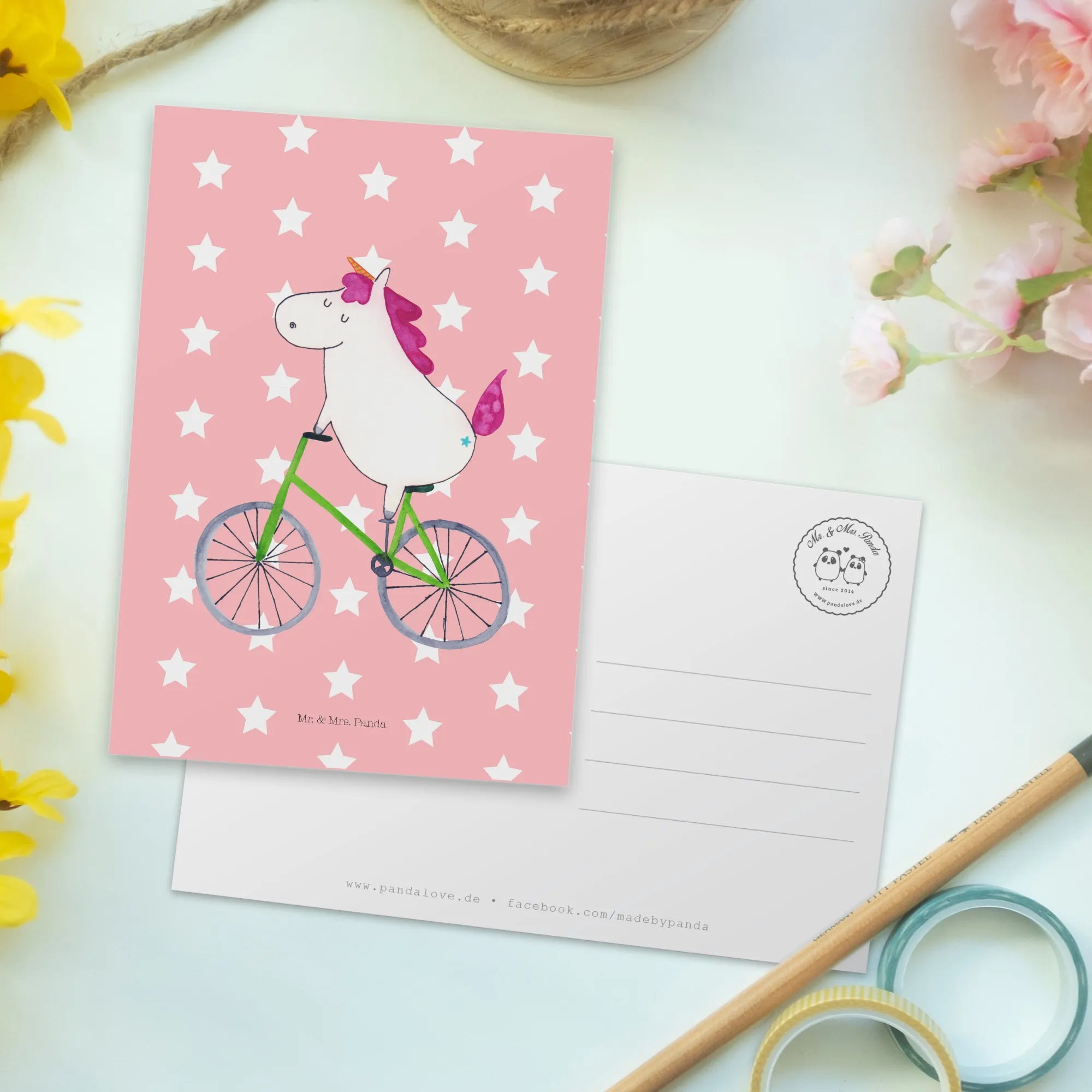 Introducing the delightful Postcard Unicorn Cyclist from the magical Unicorn - Collection by Mr. & Mrs. Panda! This postcard is far more than just a piece of paper; it’s an enchanting way to sprinkle some joy and fairy dust into your loved ones' lives. With its vibrant illustration of a cheerful unicorn cycling through a world filled with confetti, this postcard captures the essence of whimsy and light-heartedness that we all need from time to time.