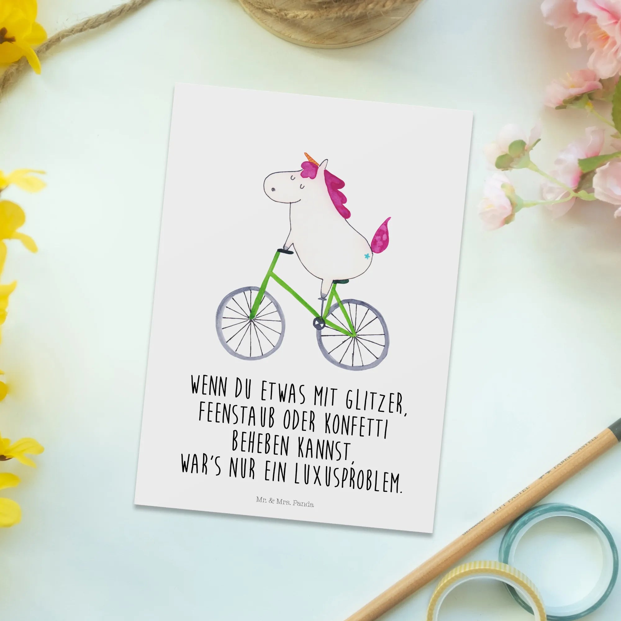 Perfect for anyone who believes in the magic of unicorns or simply loves to ride a bike, this postcard is versatile enough for any occasion. Imagine sending a heartfelt note to a grieving friend—our unicorn cyclist isn’t just a pretty picture; it’s a gentle reminder that even during life's turmoils, problems can turn into glittering opportunities. On the blank backside, you can express your thoughts and feelings, making it a personal gift that will be treasured.
