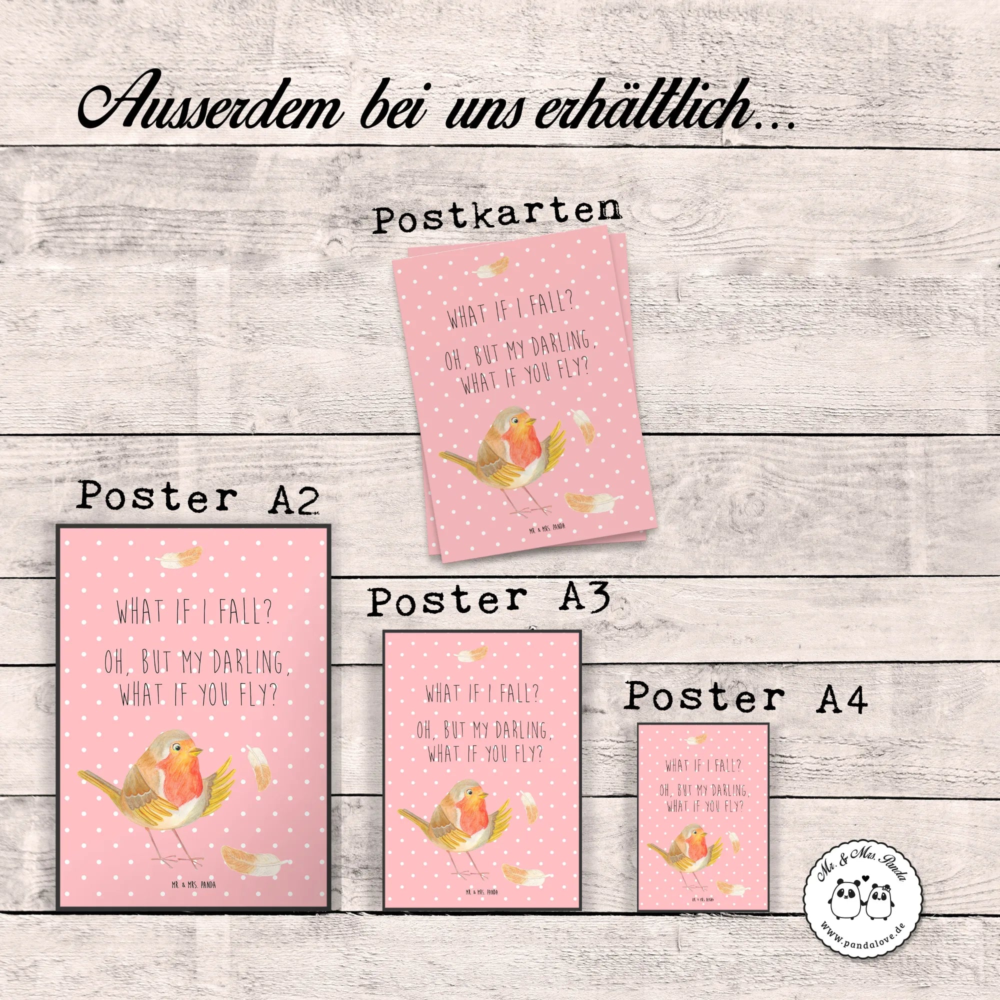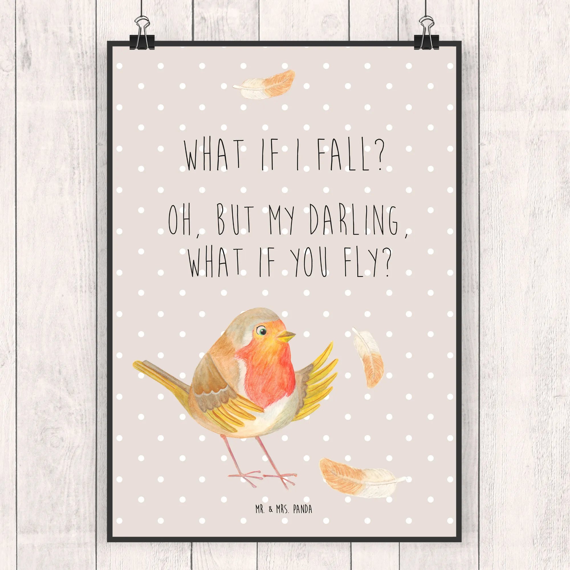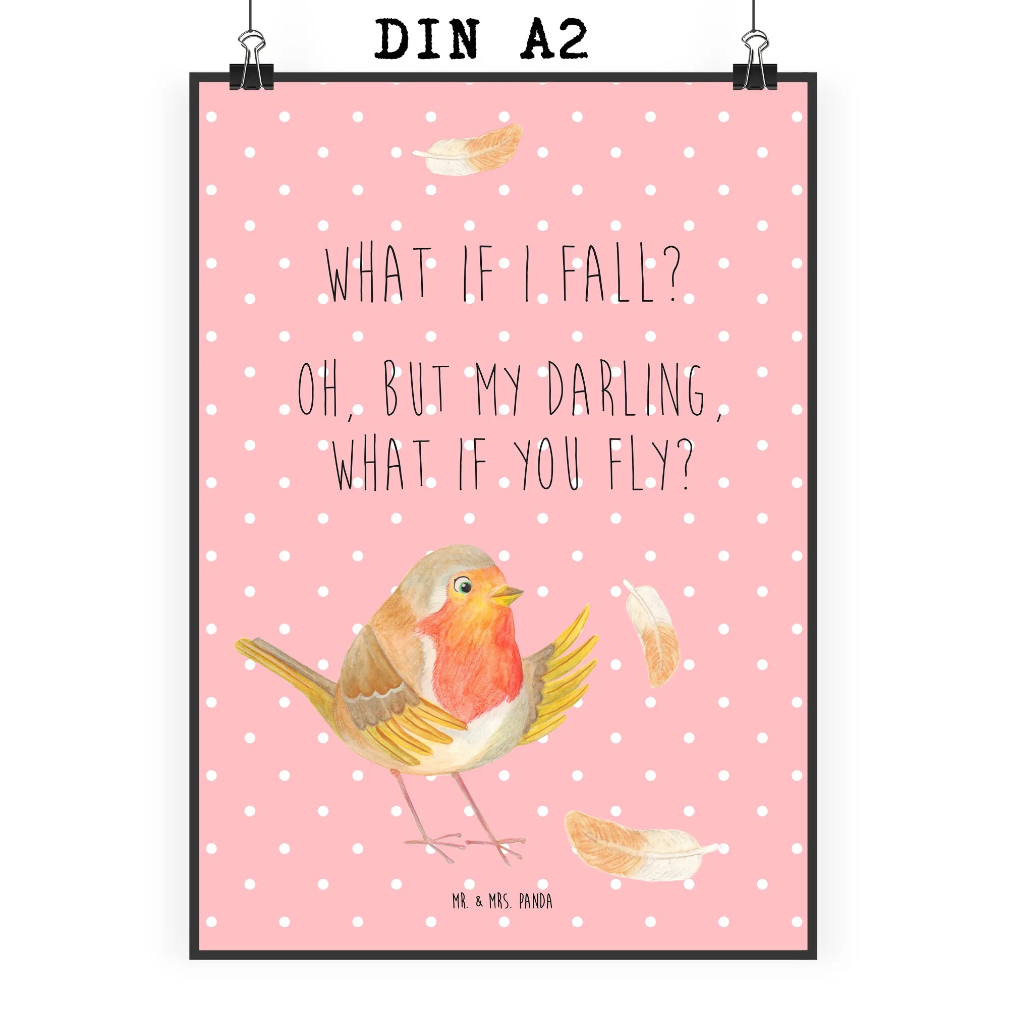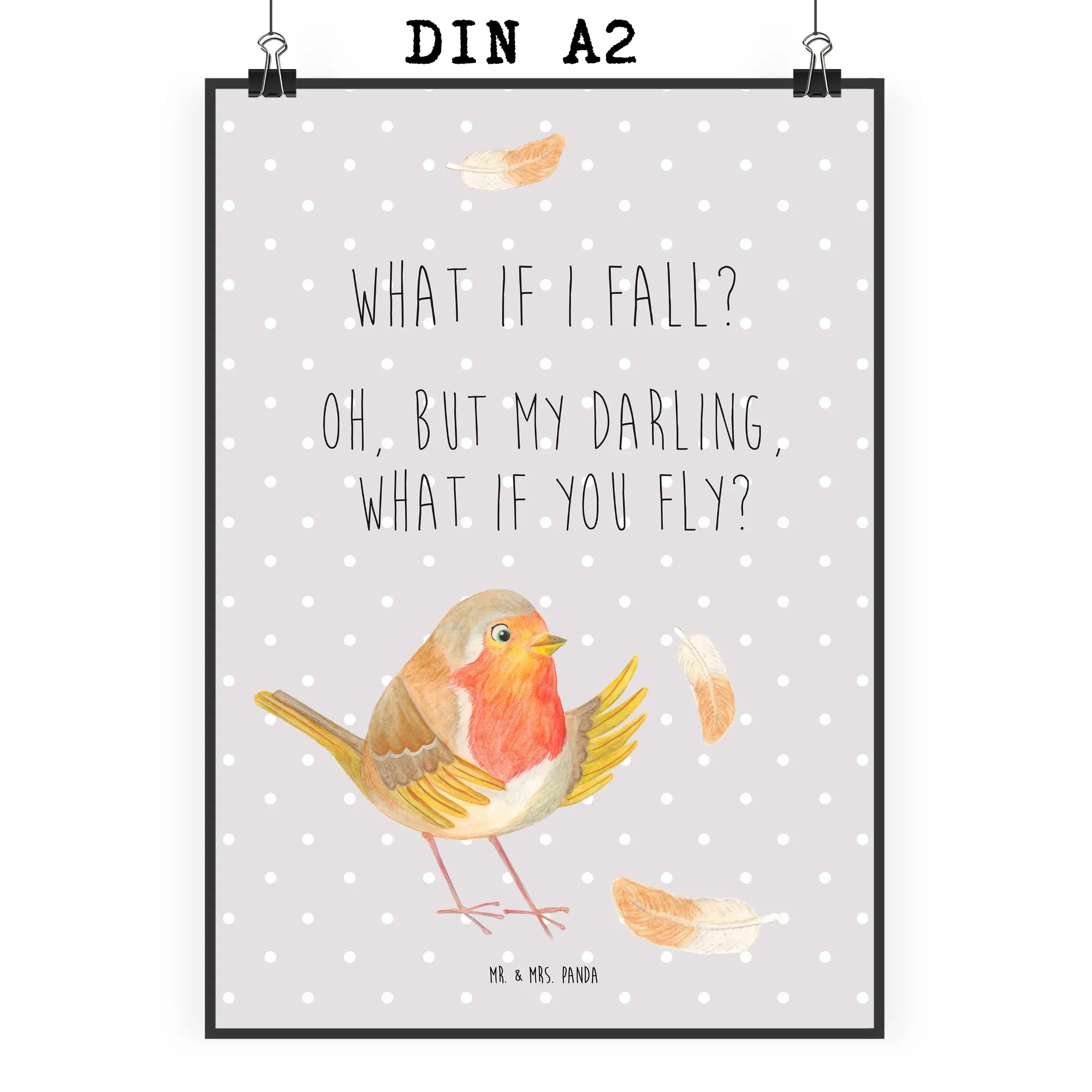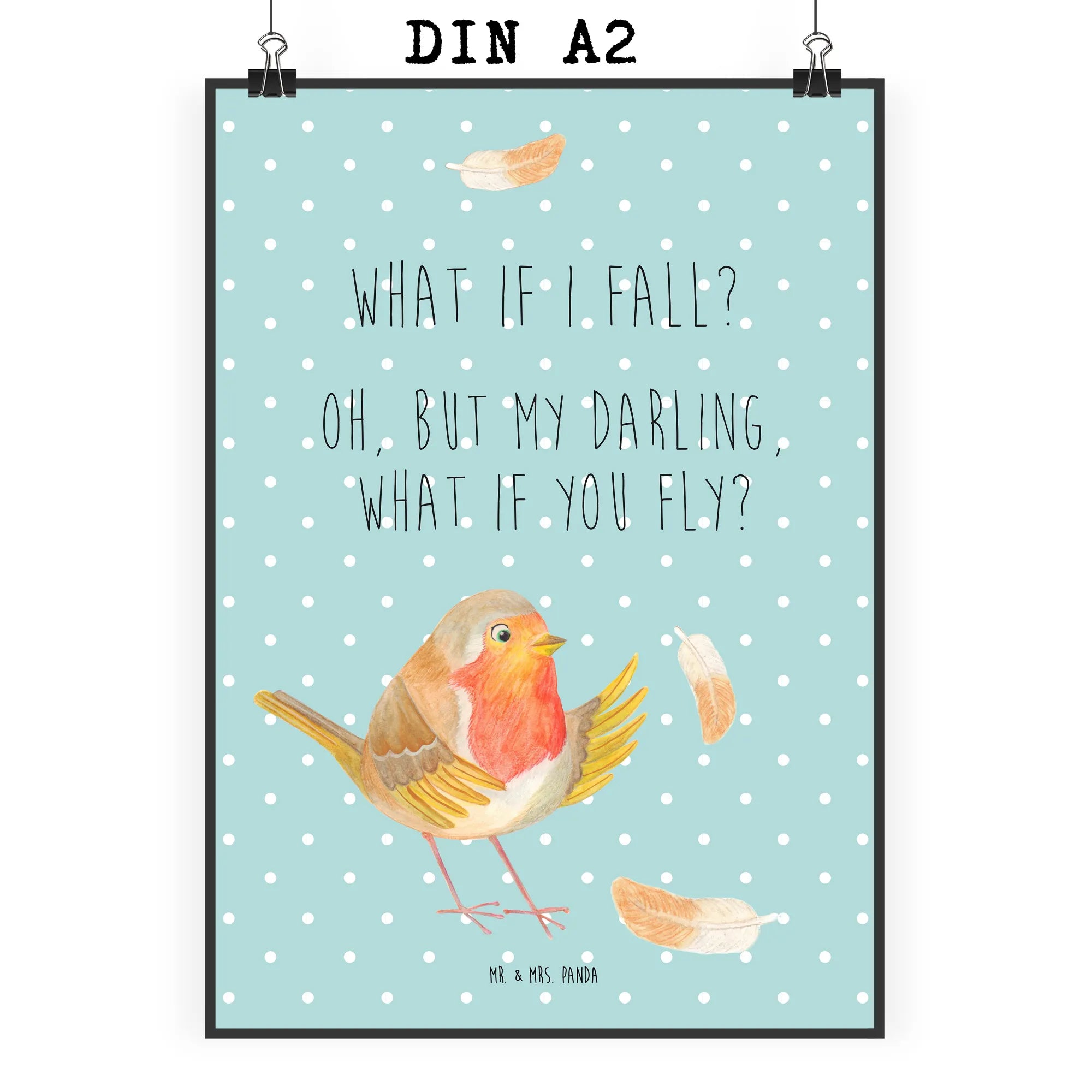 Poster robin feathers - DIN A0 - with a saying - White