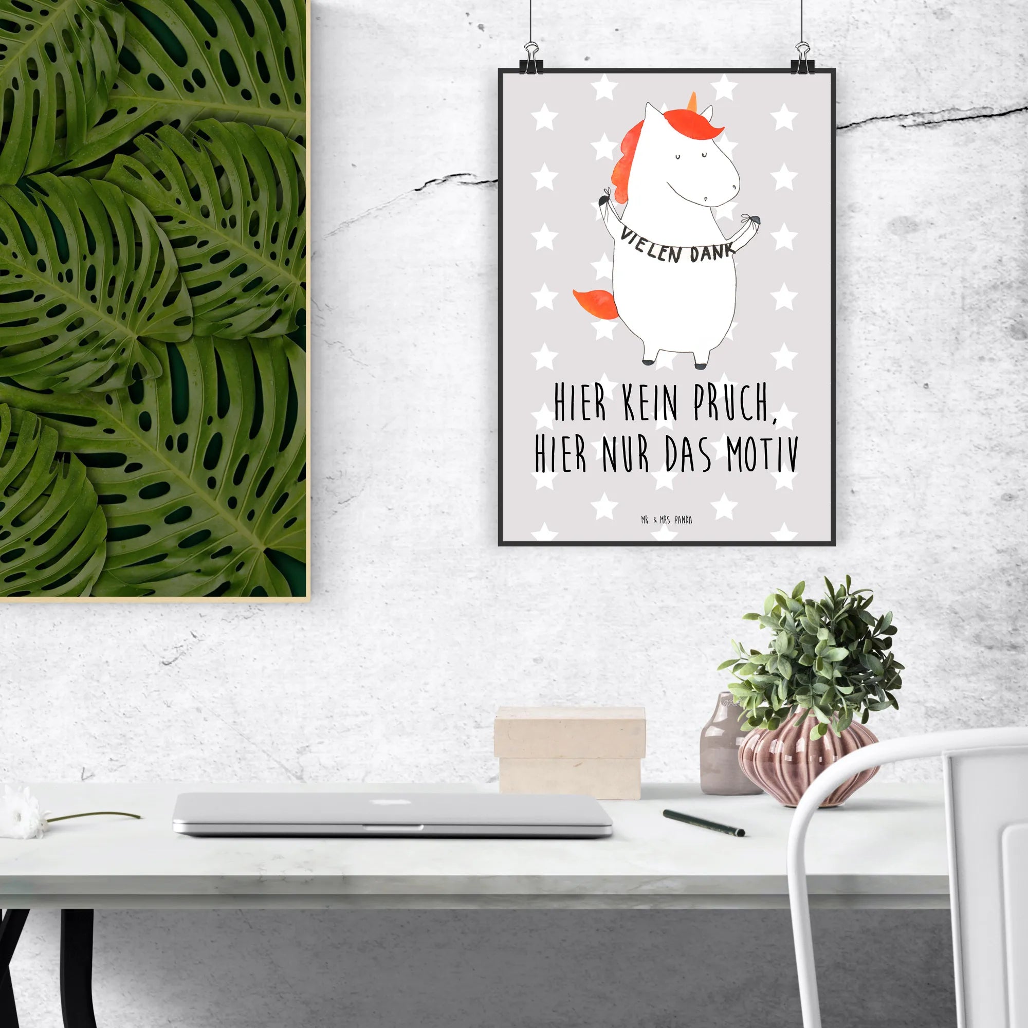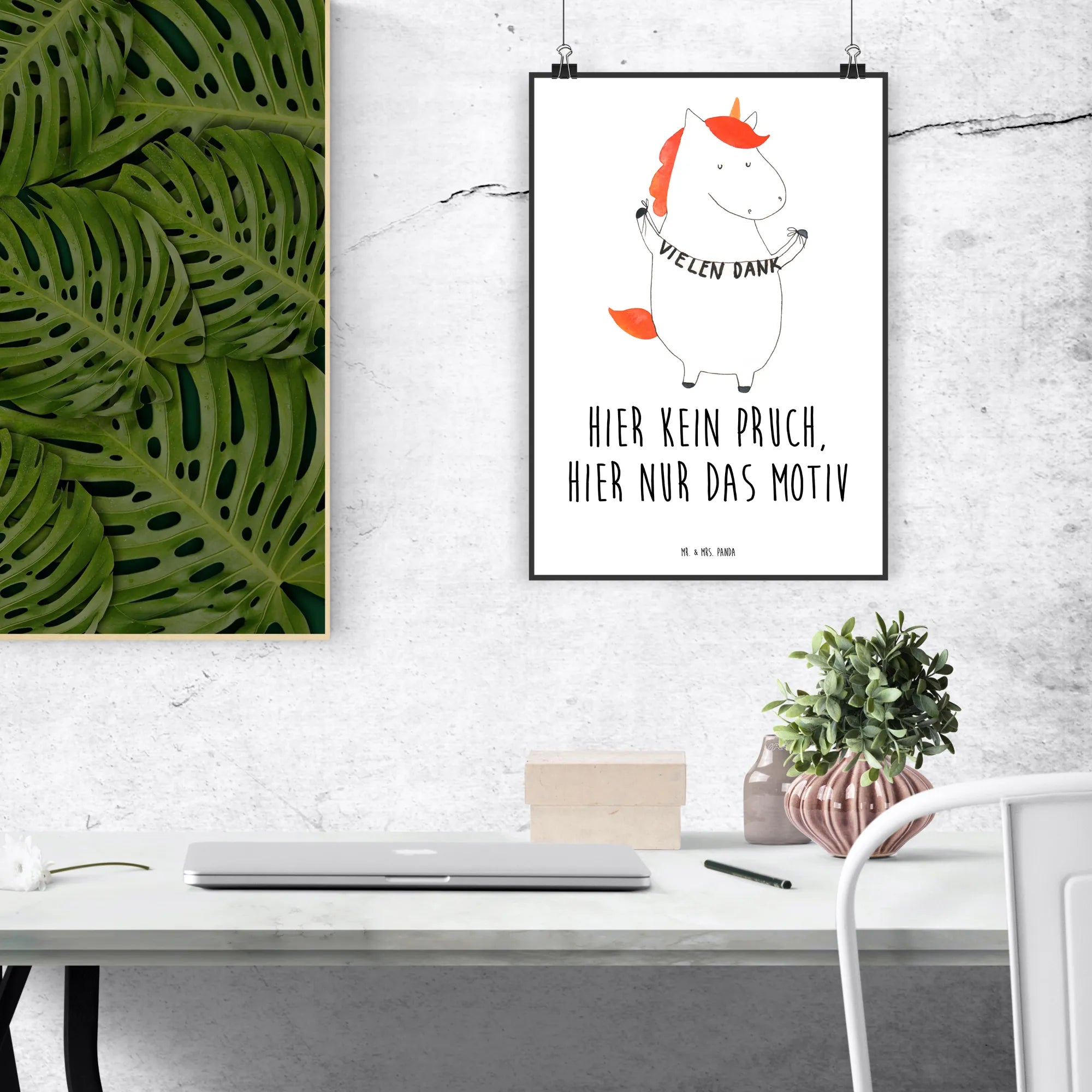 Poster unicorn Thank you very much - DIN A0 - with saying - White