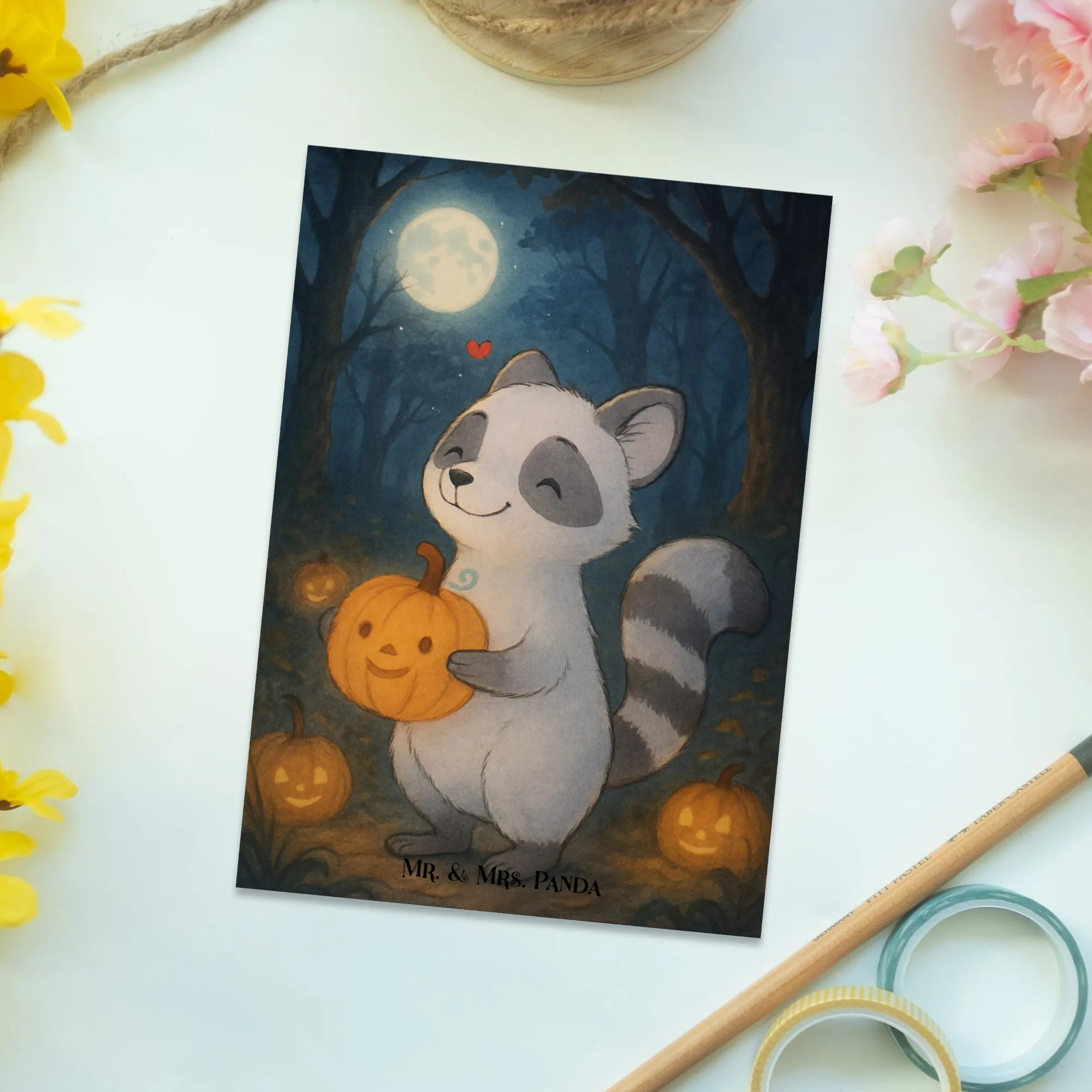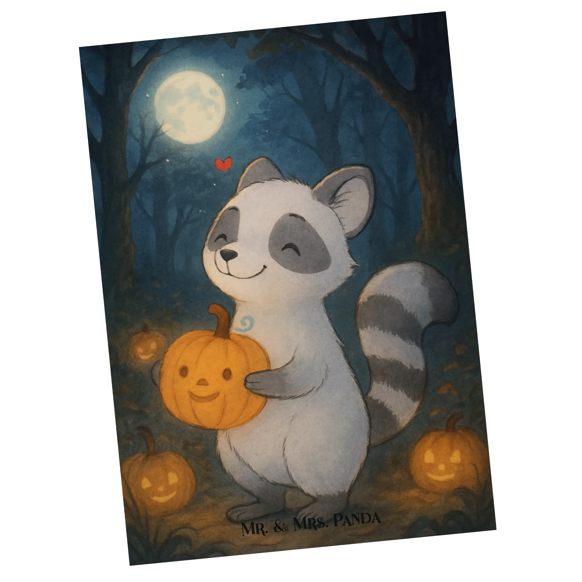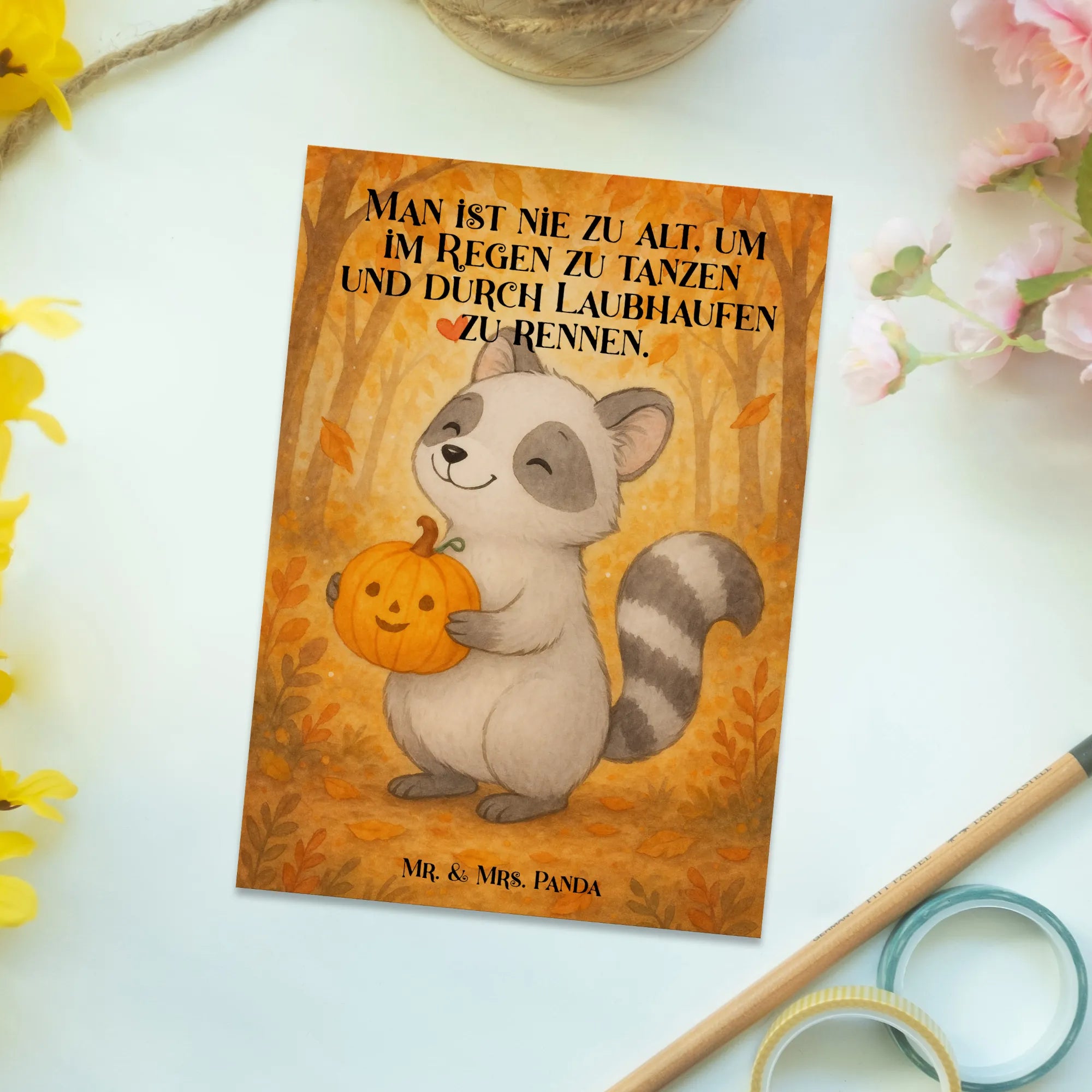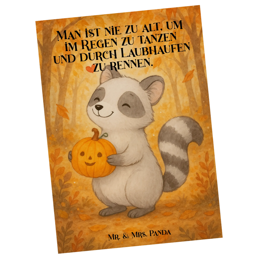Postkarte Waschbär Kürbis Design - mit Spruch