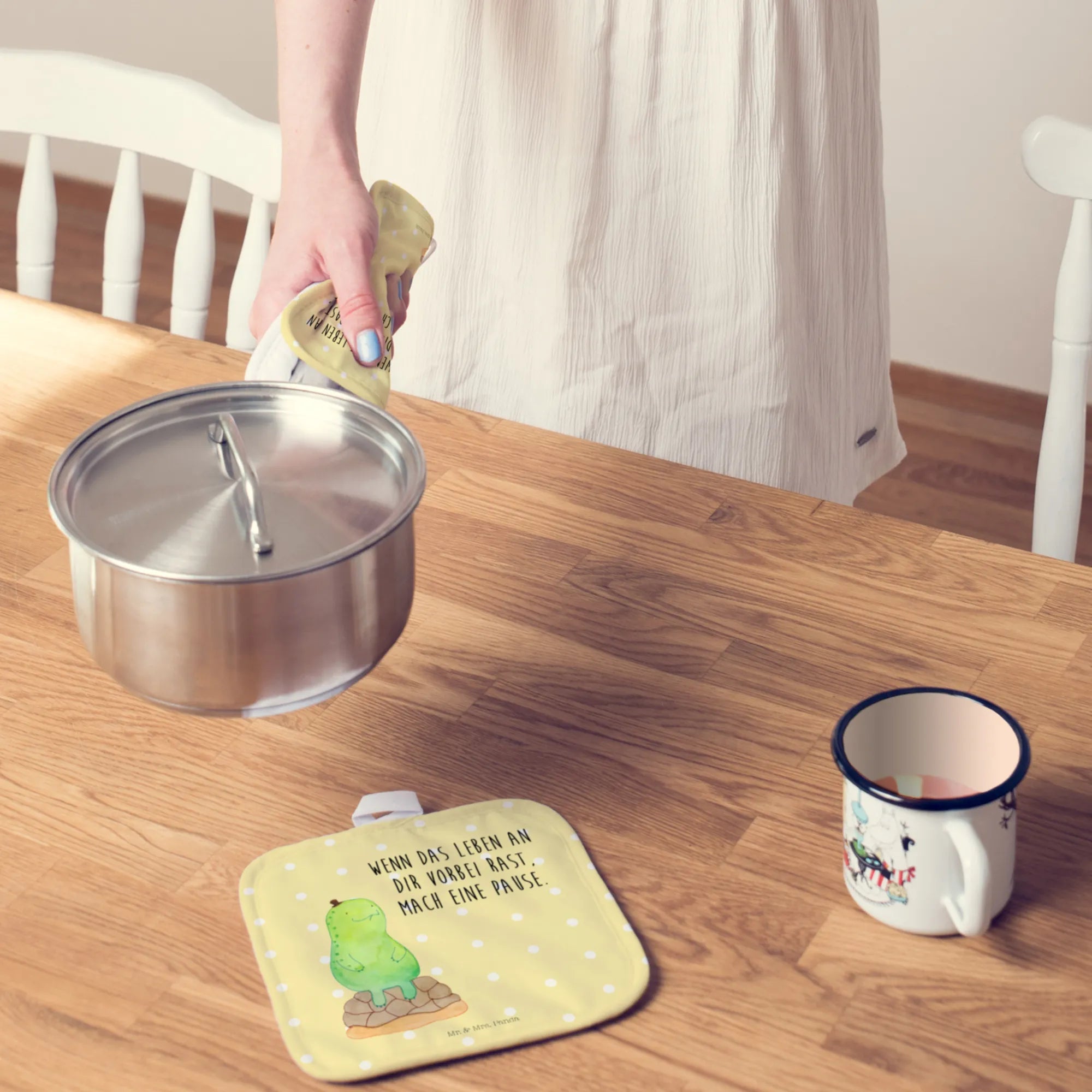Pot holder tortoise Break - with saying - Pastel Yellow