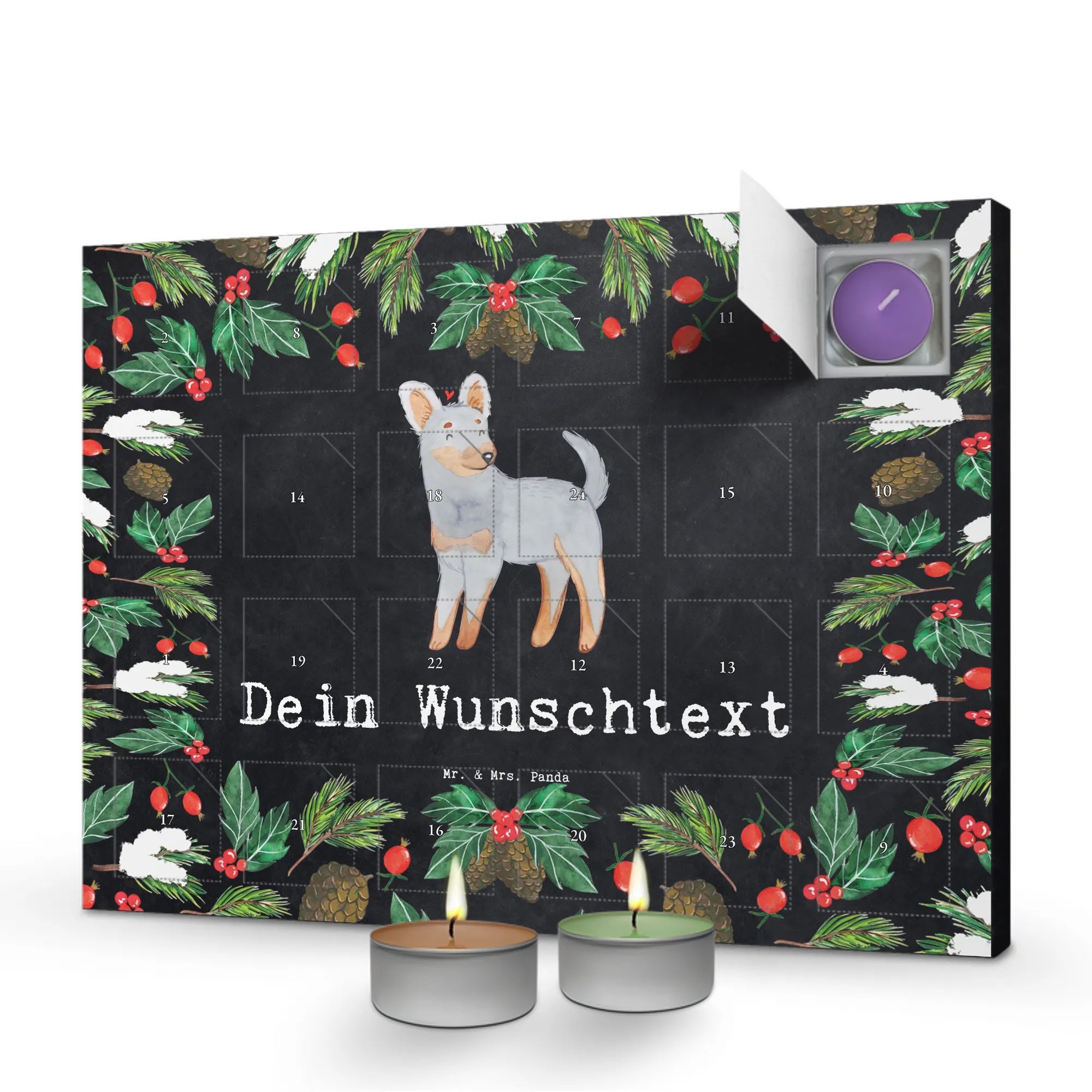 Discover the magic of the pre-Christmas season with our 'Personalized Scented Candle Advent Calendar' from Mr. & Mrs. Panda. Enchantingly adorned with beautiful quotes and motifs, this unique Advent calendar can be personalized with a message or name of your choice. Be captivated by Mrs. Panda's charming drawings on the front and a new festive scent behind every door, including vanilla, lavender, and apple-cinnamon. A sturdy box that can be hung up or displayed completes the experience.