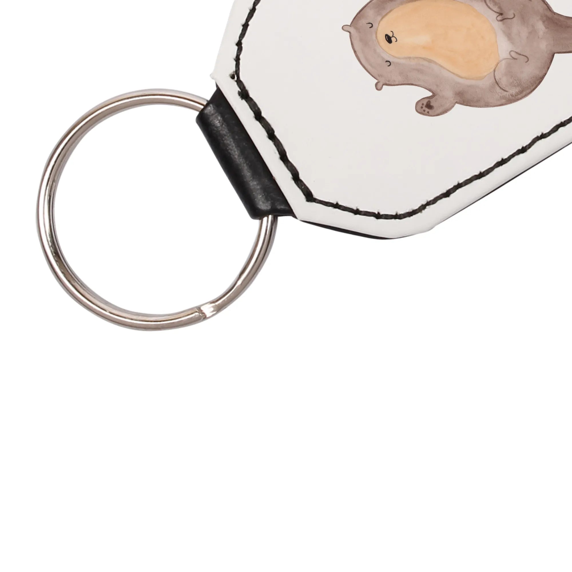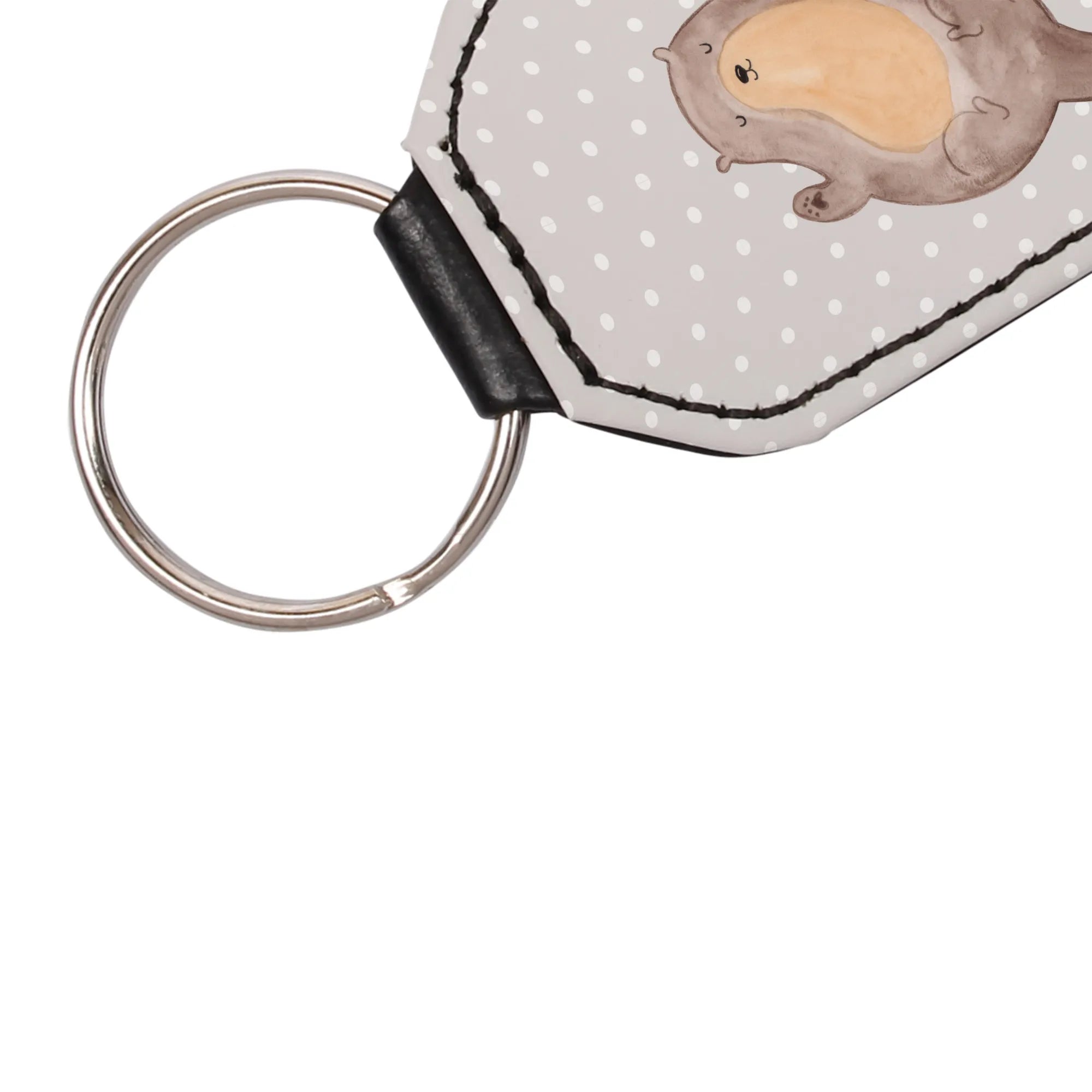 Rectangular key ring otter Embrace - with saying - Pastel Gray