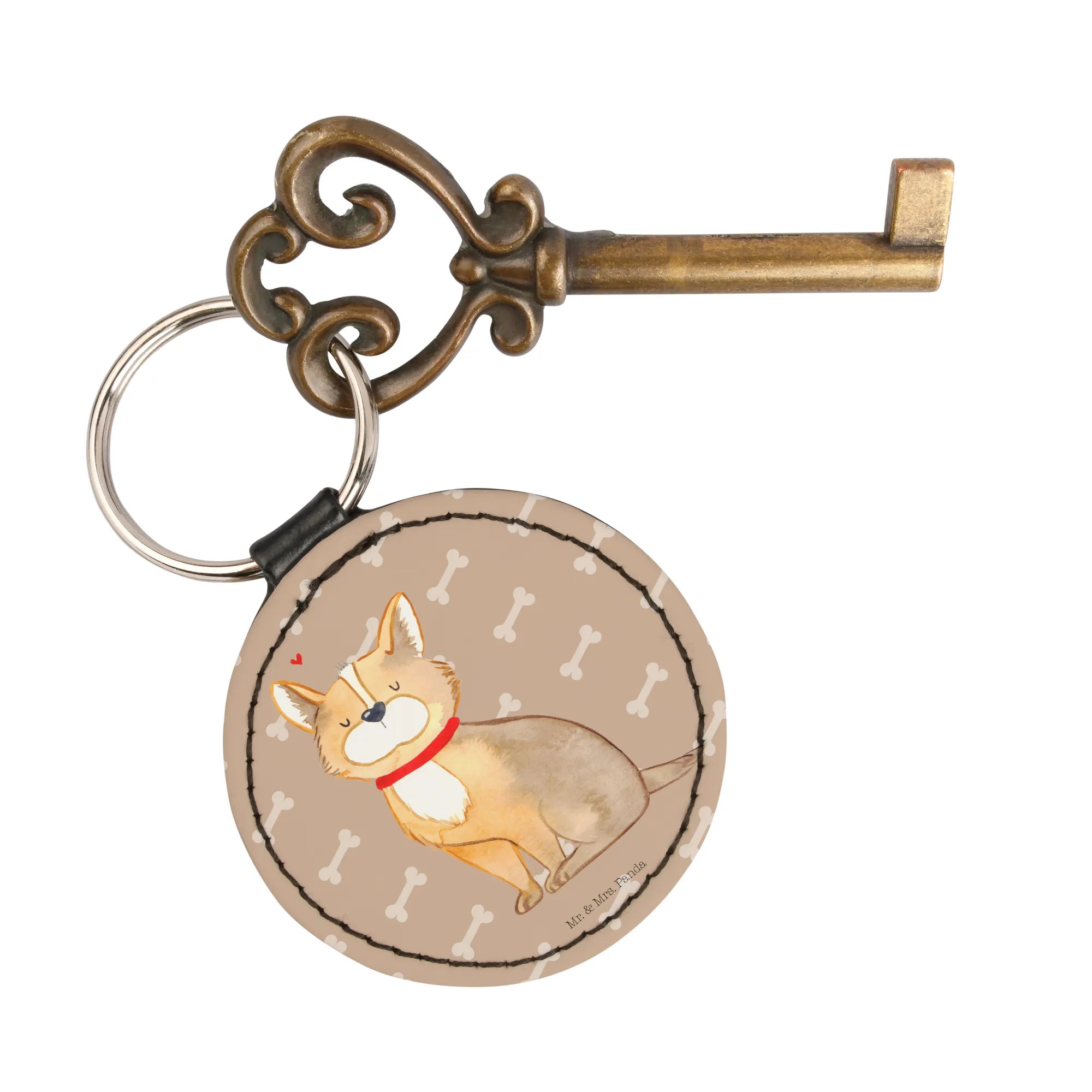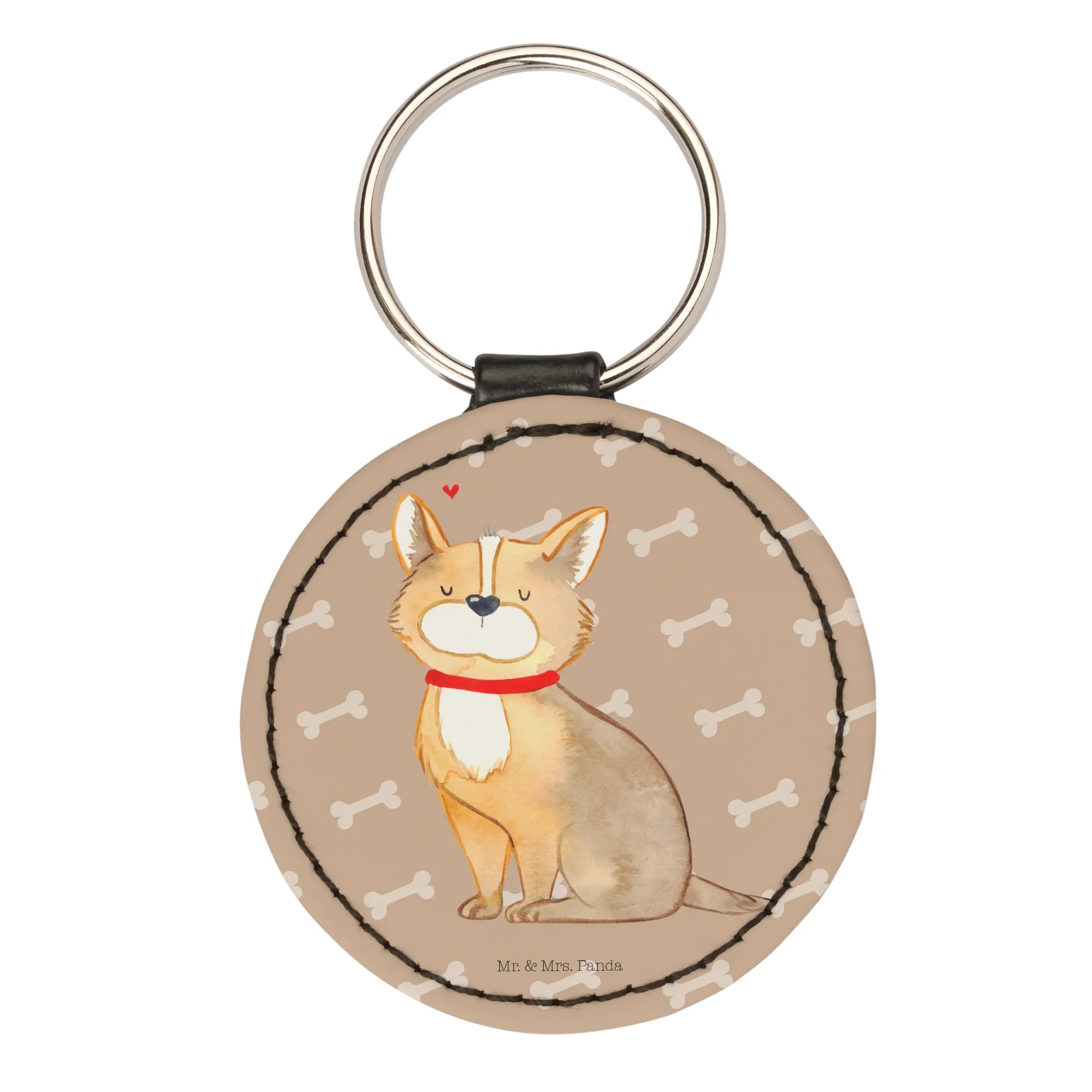 Round key ring Dog Luck - White