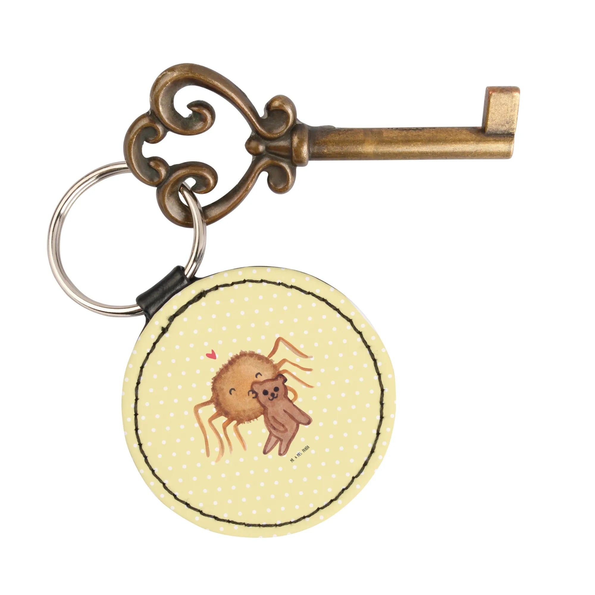Round key ring Spider Agathe Teddy - Yellow Pastel