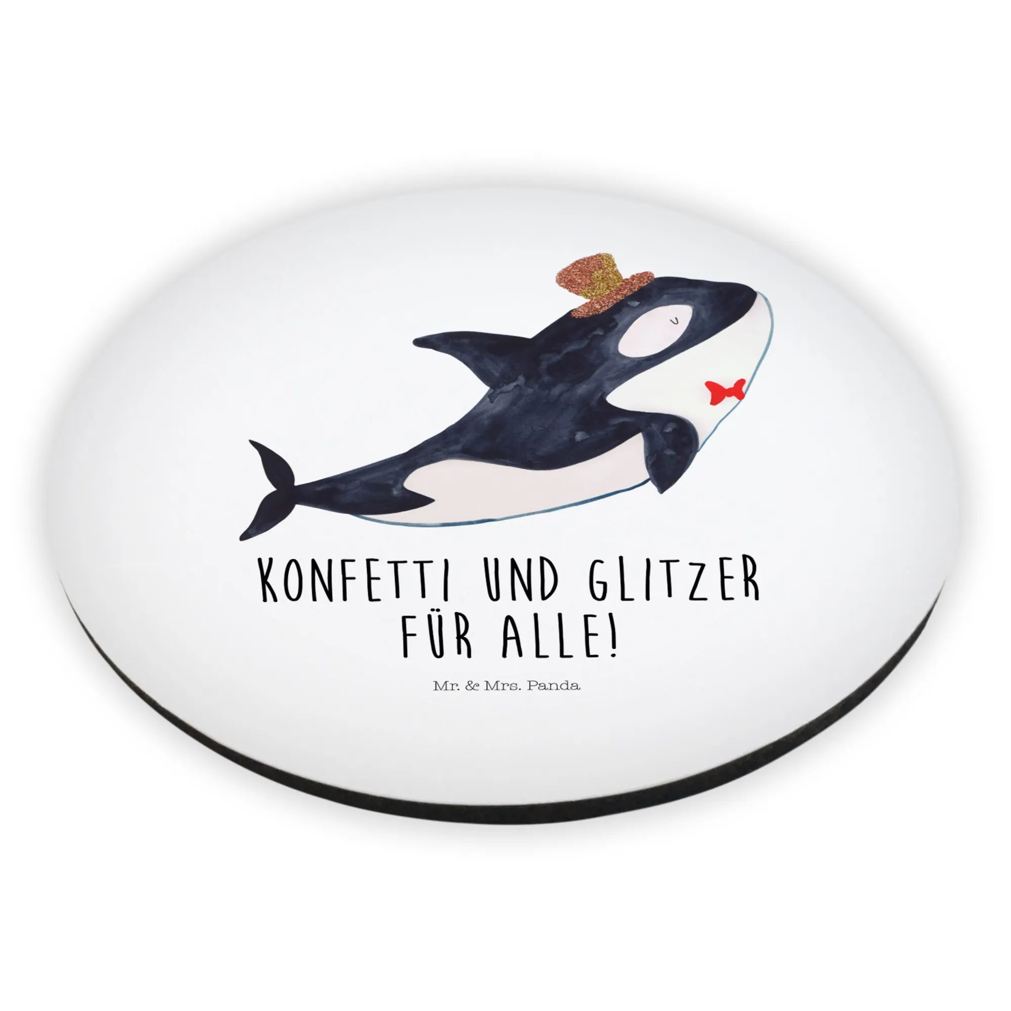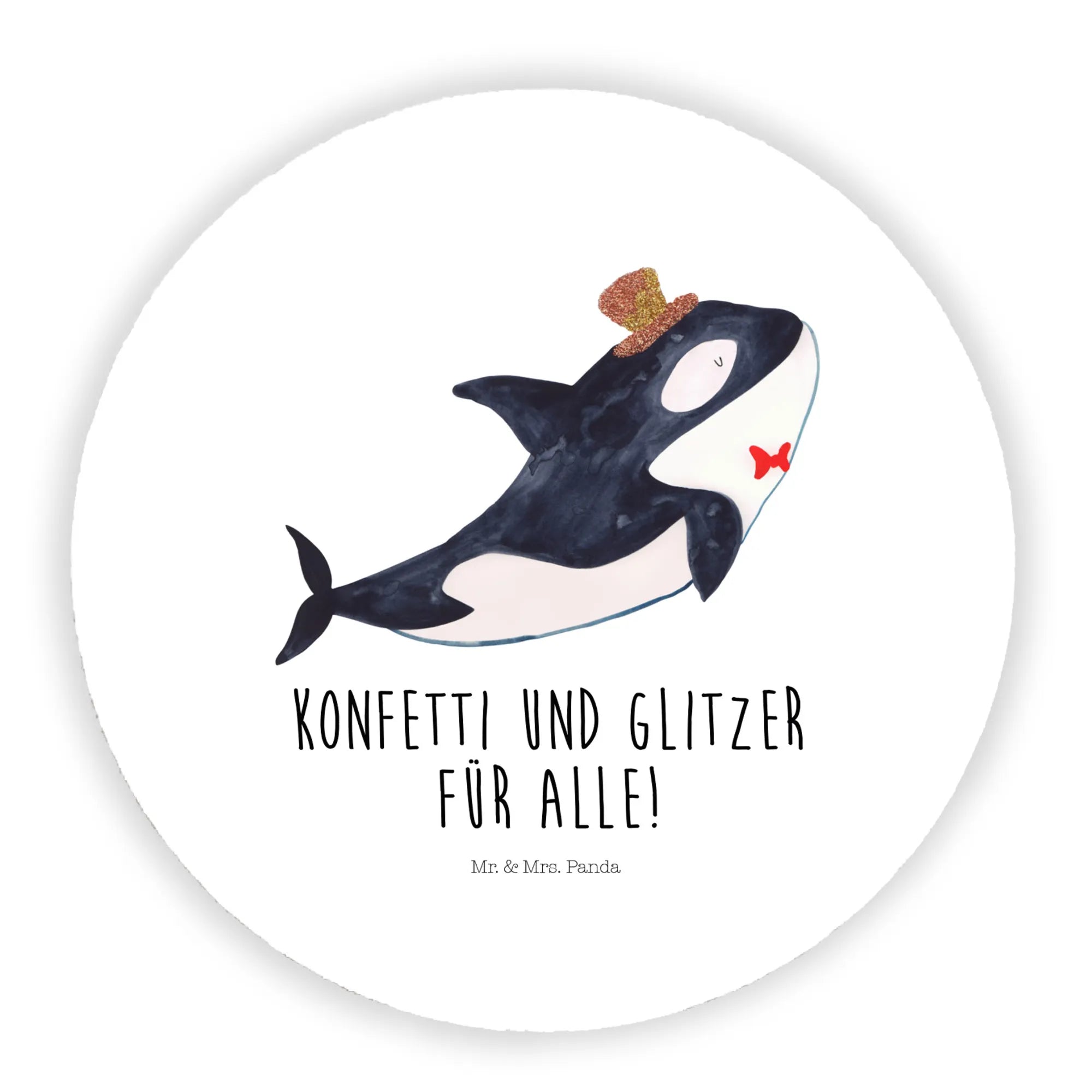 Our elated orca is bursting with joy, draped in a stylish floral cylinder hat that radiates charm! Its sleek black and white palette captures the essence of celebration, and the little red fish adds a playful twist! With the phrase 'Konfetti und Glitzer für alle!', this motif sings a tune of joy perfect for birthdays or any festivities. It’s all about embracing the spirit of fun, togetherness, and making every moment feel like a grand party full of love and laughter.