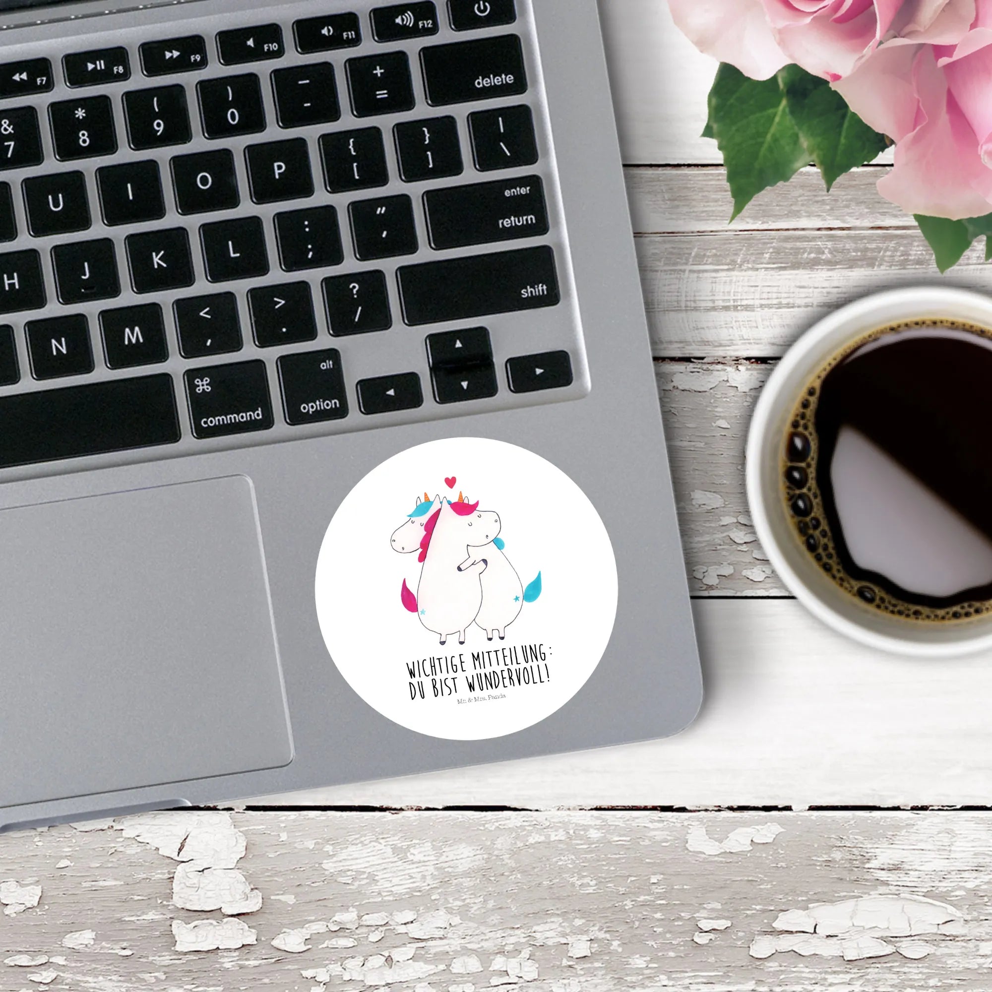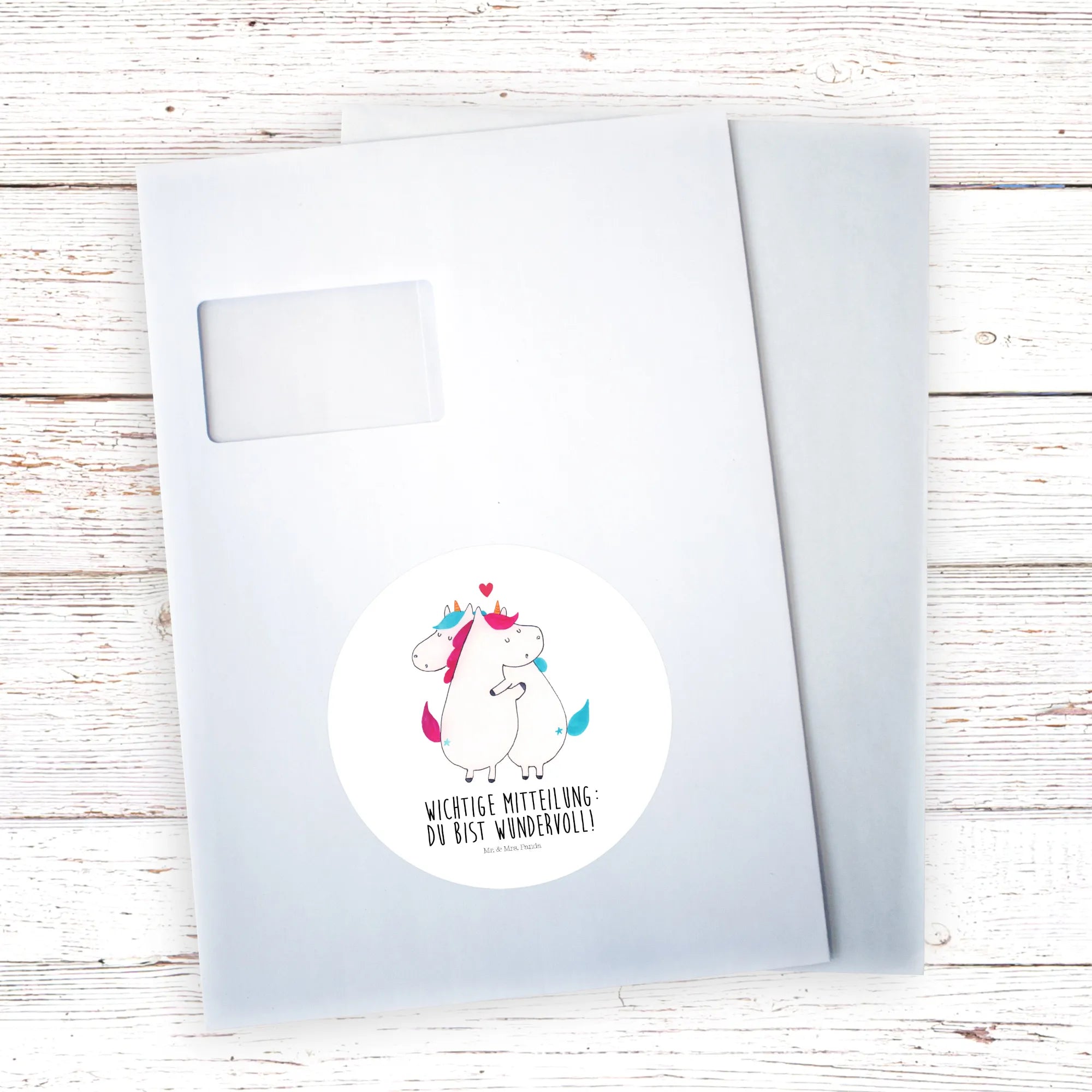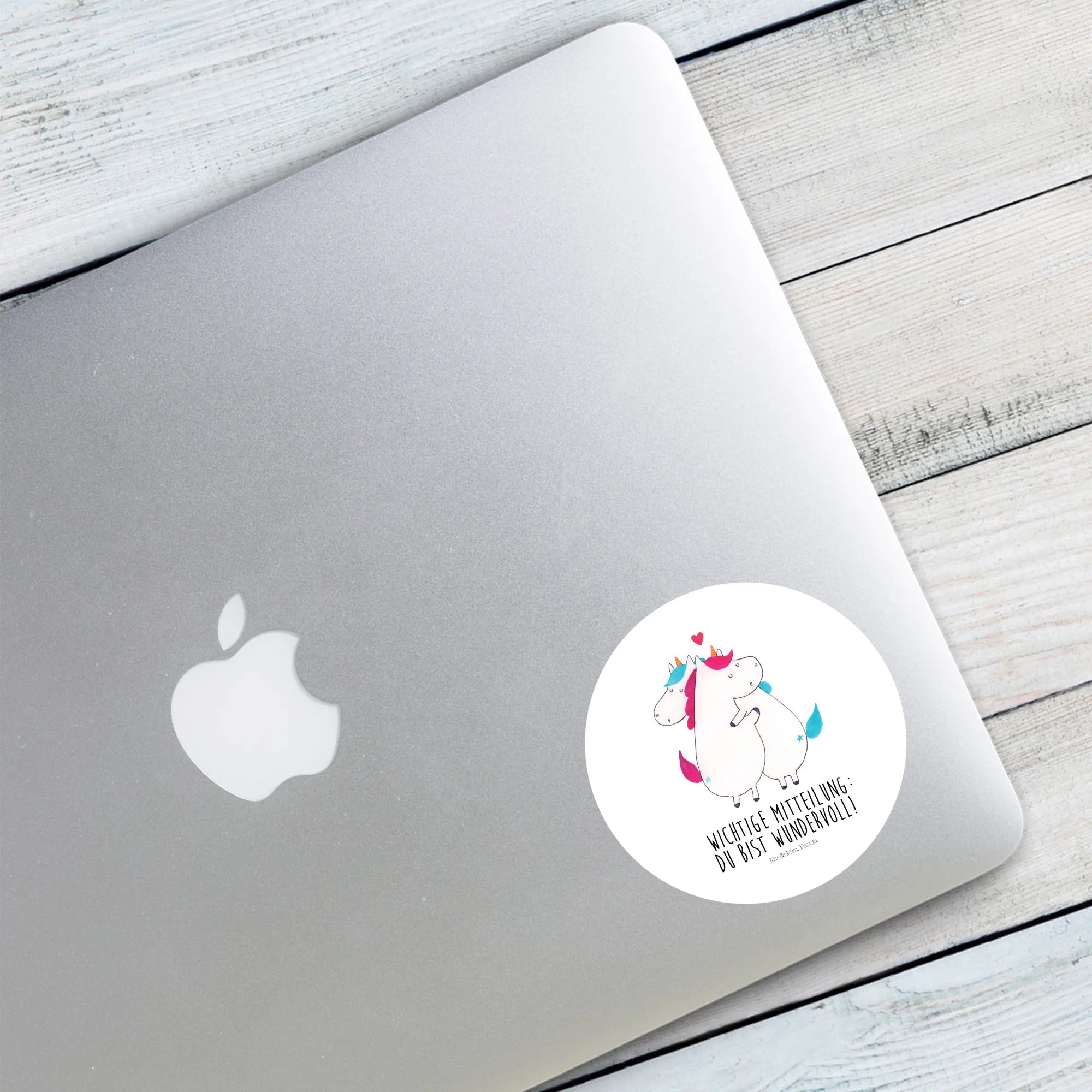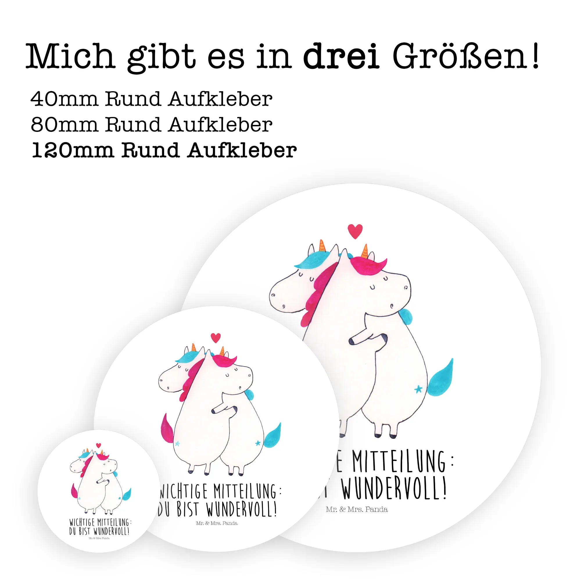 Diese runden Aufkleber mit zwei kuschelnden Einhörnern und dem liebevollen Spruch „Wichtige Mitteilung: du bist wundervoll!“ sind kleine Botschafter großer Gefühle. Perfekt für Kinder, Eltern, Lehrerinnen, Bastler und alle Einhorn-Fans, die Freude verschenken wollen.
