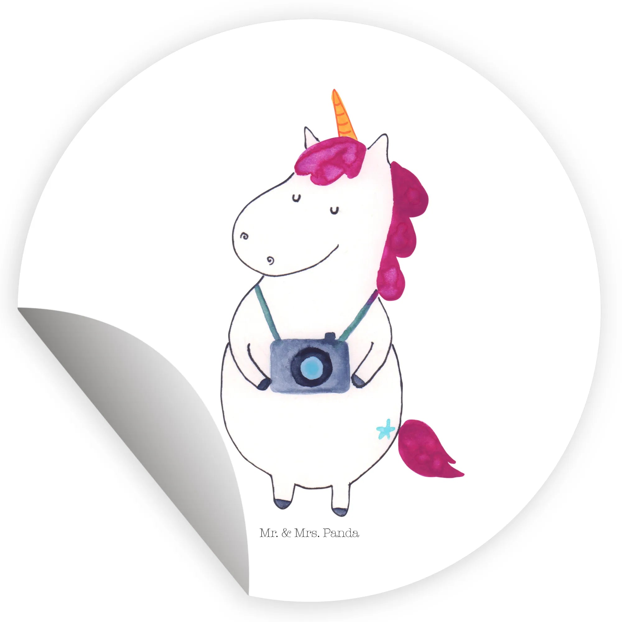 Round sticker unicorn photographer – Mr. & Mrs. Panda