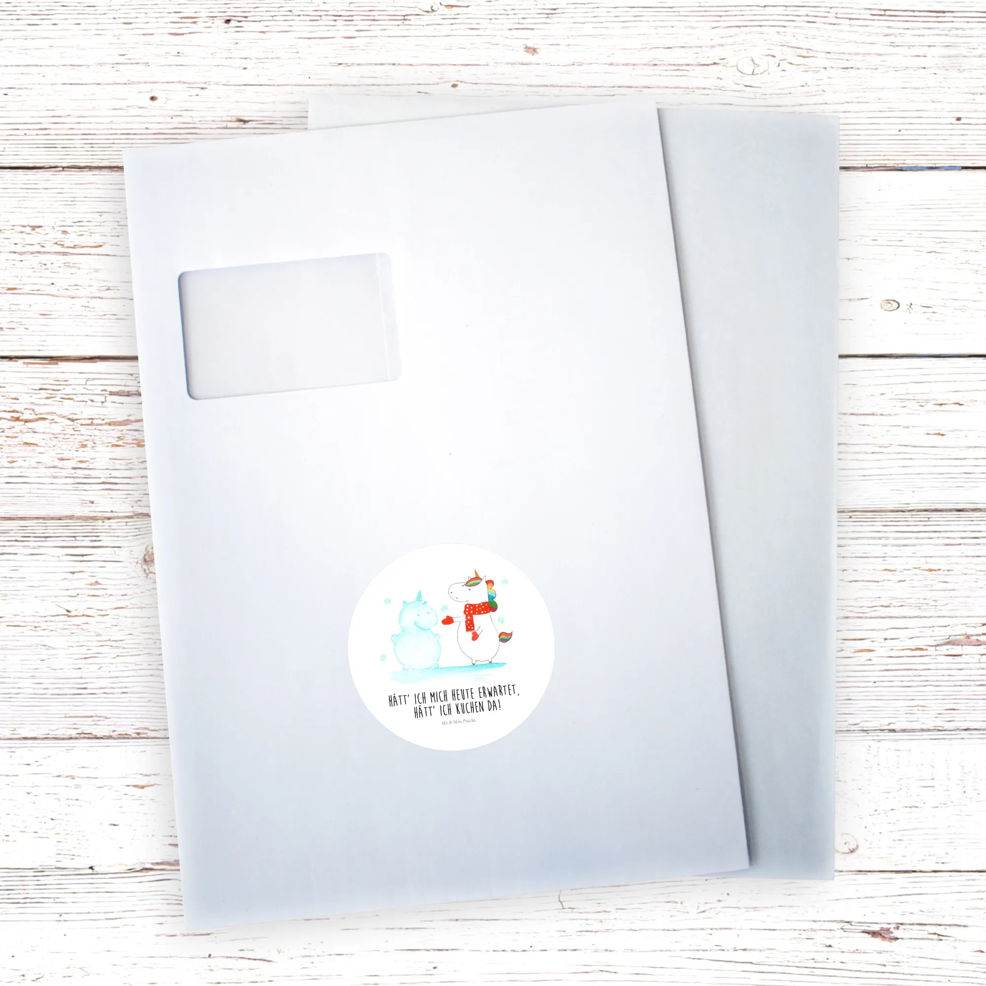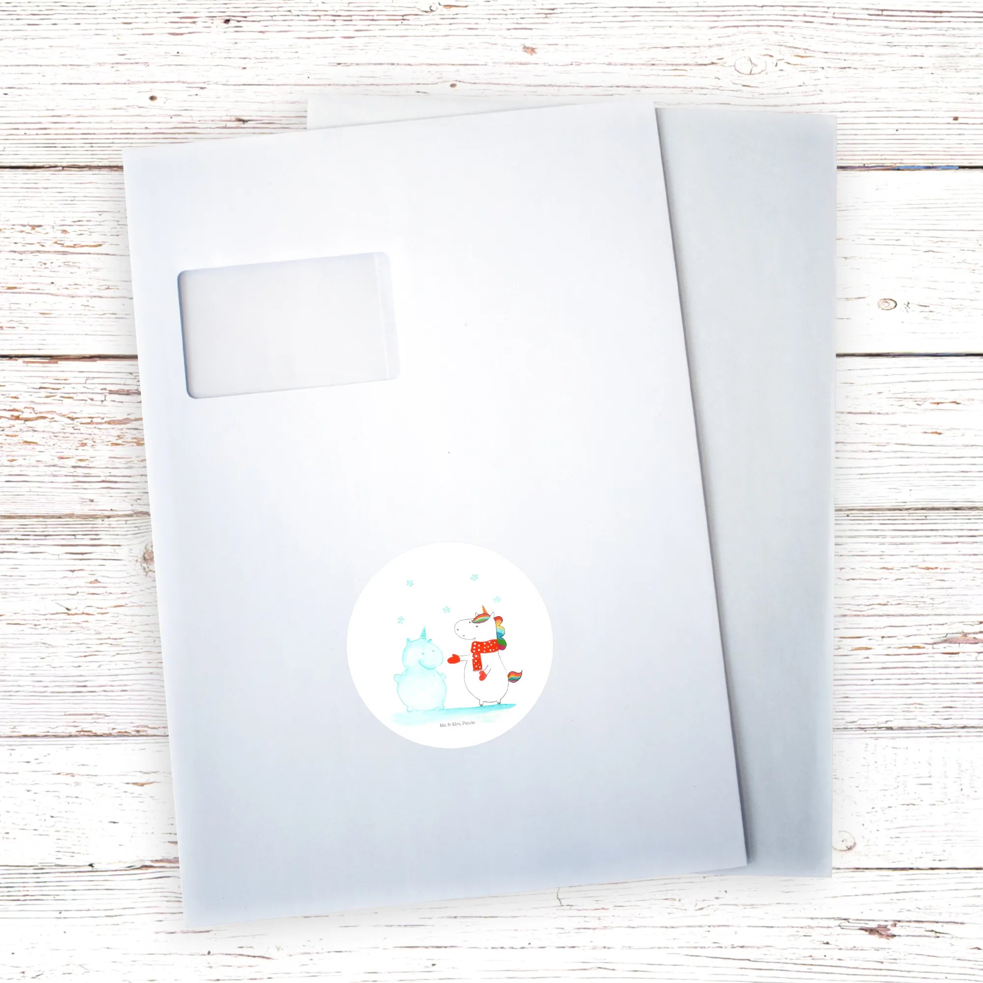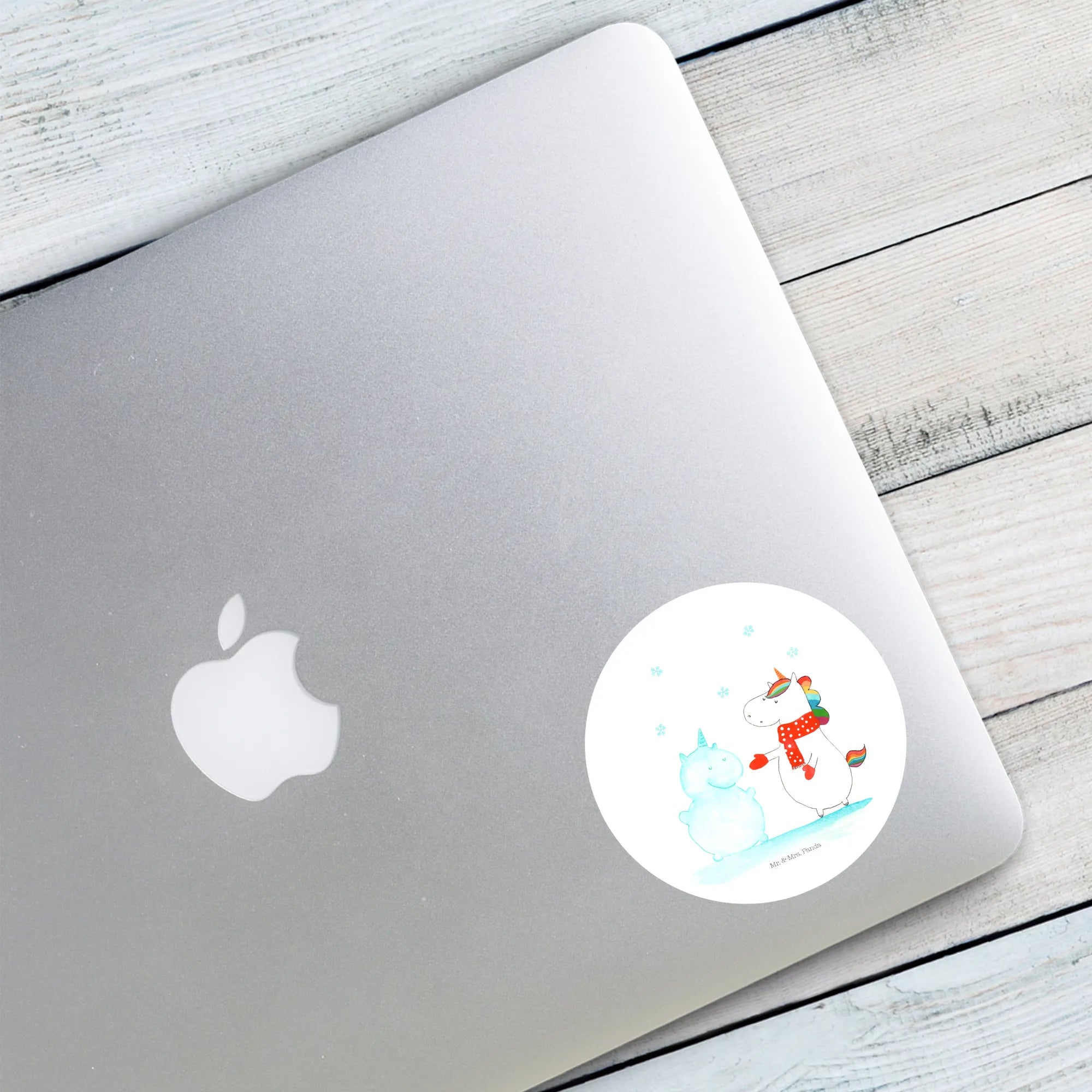 Round sticker unicorn snowman - 80mm Round Sticker - with a saying