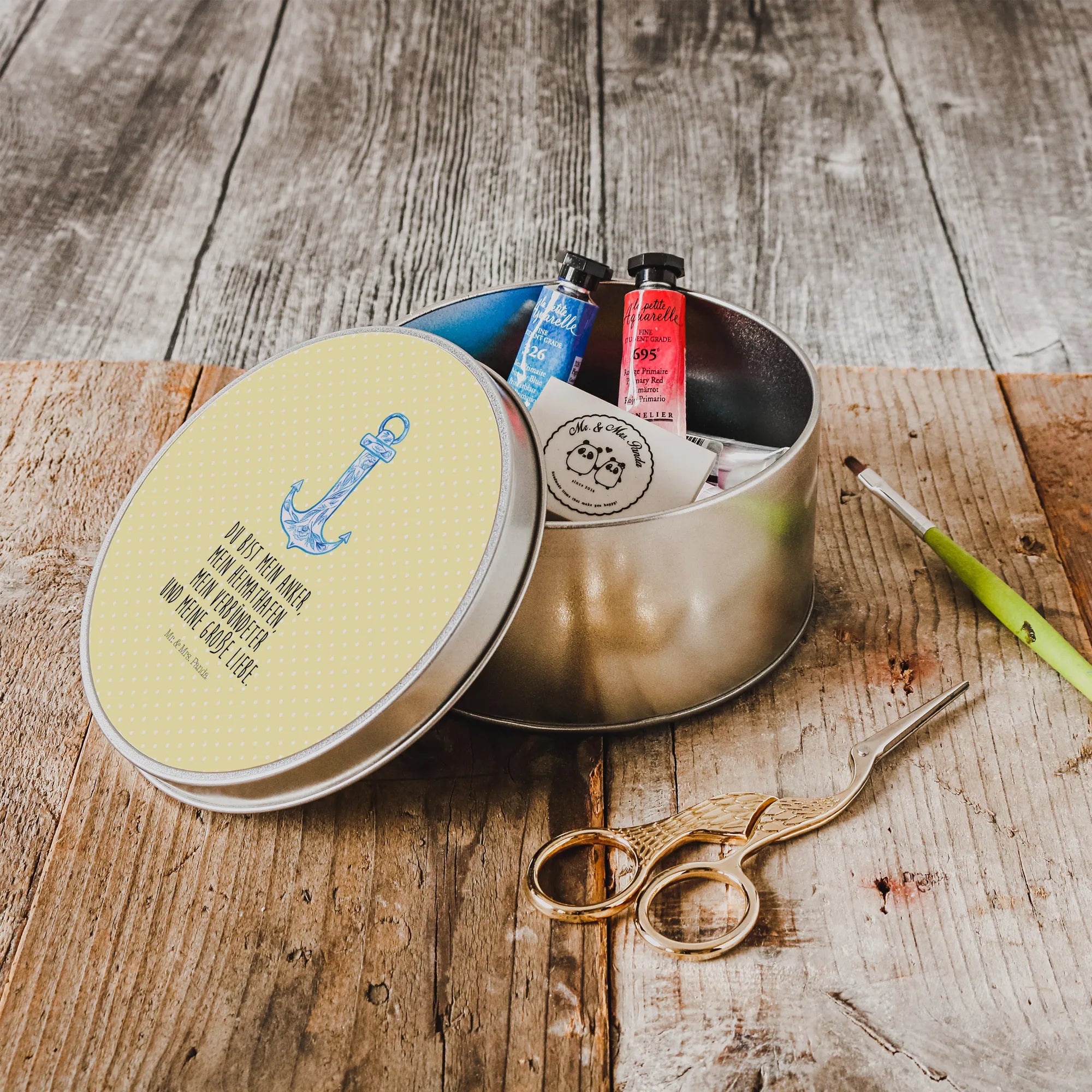 Looking for the perfect gift for the animal lover in your life? Say hello to the delightful Round Tin with the Blue Anchor design from our charming Small World collection!