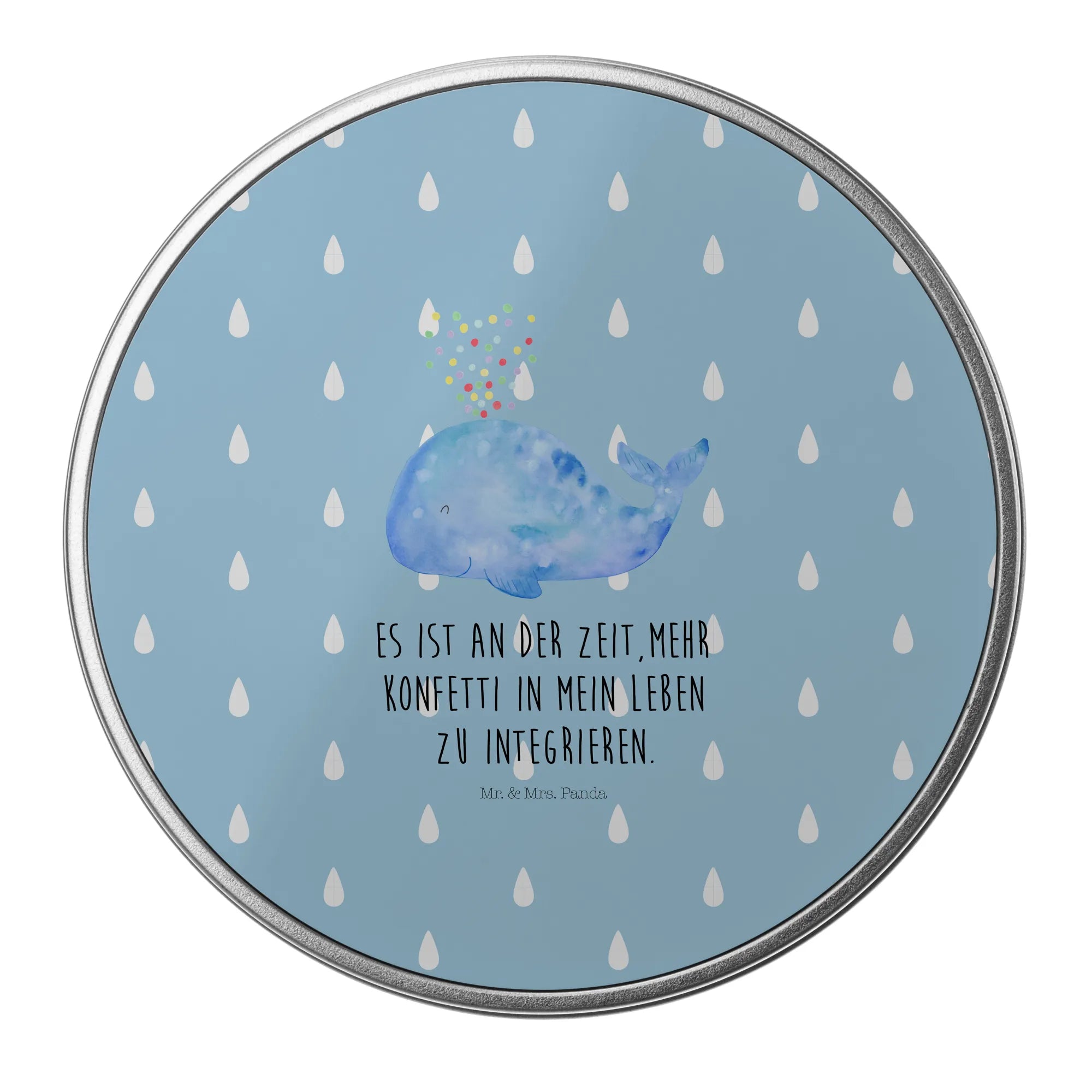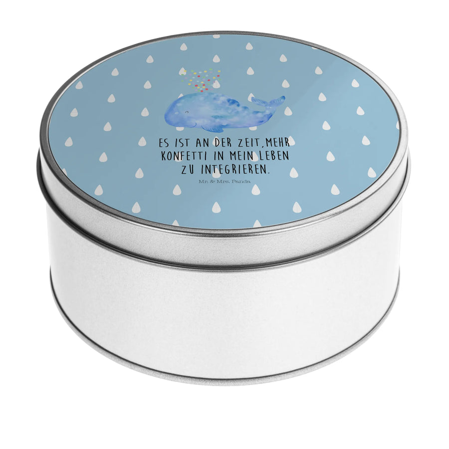 Picture this: a beautifully crafted round metal tin featuring a serene whale floating gracefully among colorful confetti. The whale, with its friendly demeanor and gentle smile, brings a touch of magic and whimsy to your storage solutions. Ideal for those special occasions like birthdays, new beginnings, or even as a thoughtful gift for someone going through a transition in life, this tin can serves multiple purposes!