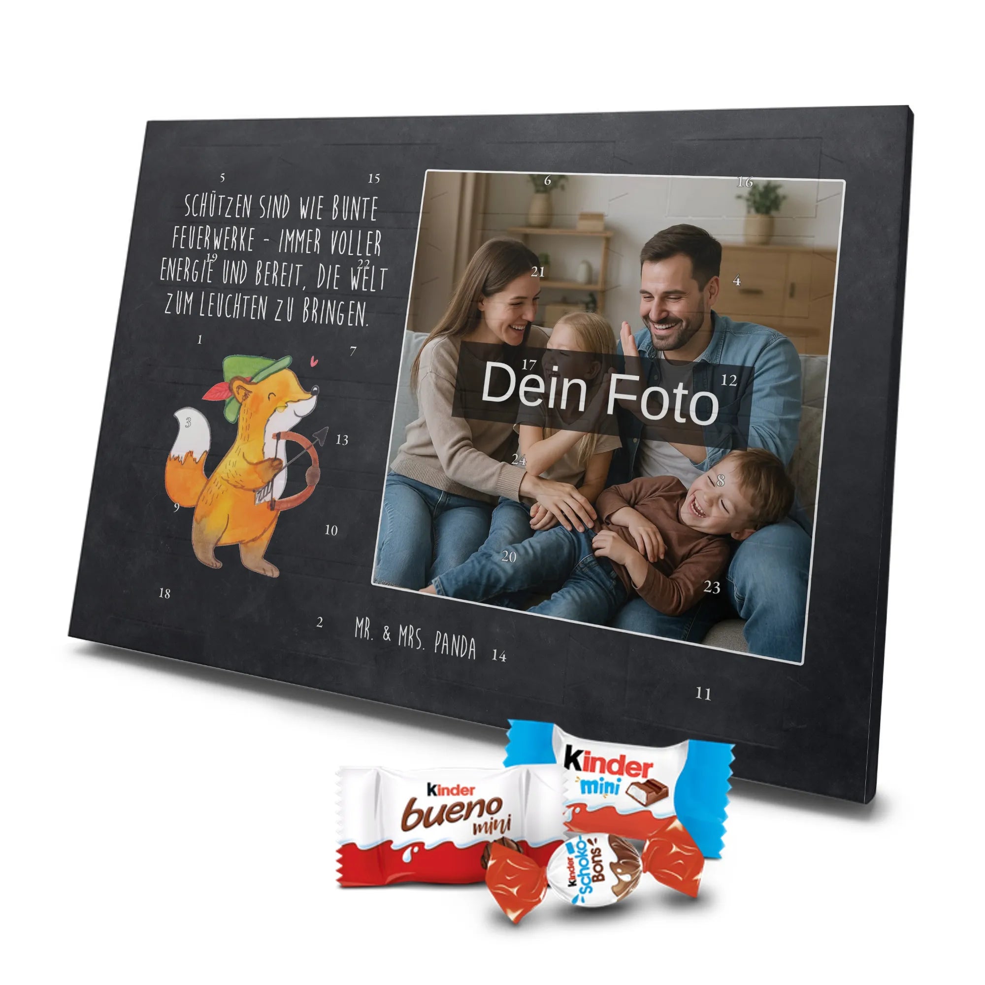 Unser personalisierten Schoko Foto Adventskalender ist ein echtes Highlight in der Adventszeit – handlich, individuell und voller süßer Überraschungen. Du personalisierst die Vorderseite mit deinem liebsten Foto und wir kombinieren es mit liebevollen Motiven und Sprüchen von Mr. & Mrs. Panda. Bitte achte auf eine ausreichende Bildauflösung und einen passenden Bildausschnitt, damit das Druckergebnis gestochen scharf ist. Lade nur Bilder hoch, deren Rechte du besitzt oder bei denen du die Erlaubnis hast, besonders wenn Personen darauf zu sehen sind. Wichtig: Fotos werden nicht retuschiert oder zugeschnitten; personalisierte Foto-Artikel sind vom Widerruf ausgeschlossen. Der Kalender besticht durch brillante Druckqualität und eine seidenmatte Oberflächenveredelung sowie bedruckte Seitenflächen. Maße: 355 mm x 245 mm x 11 mm. Du kannst ihn entweder aufstellen oder an die Wand hängen. Gefüllt ist der Adventskalender mit kinder® Schokolade, inklusive kinder® Schoko-Bons, kinder® Bueno mini und kinder® Schokolade mini. Ein liebevolles, persönliches Geschenk für Kinder, Freunde oder die bessere Hälfte – individuell, süß und mit dem typischen Mr. & Mrs. Panda Charme.