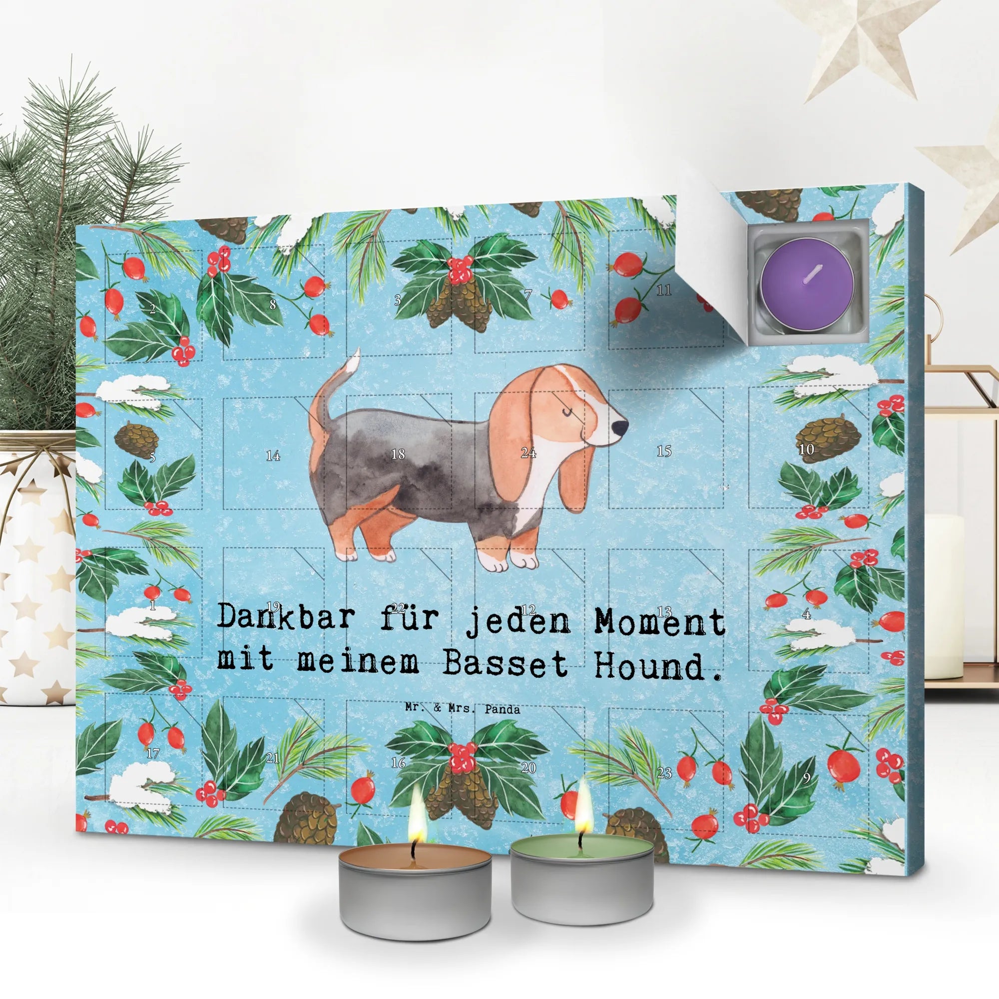 Scented candle advent calendar Basset Hound Moment - with saying - Ice Blue
