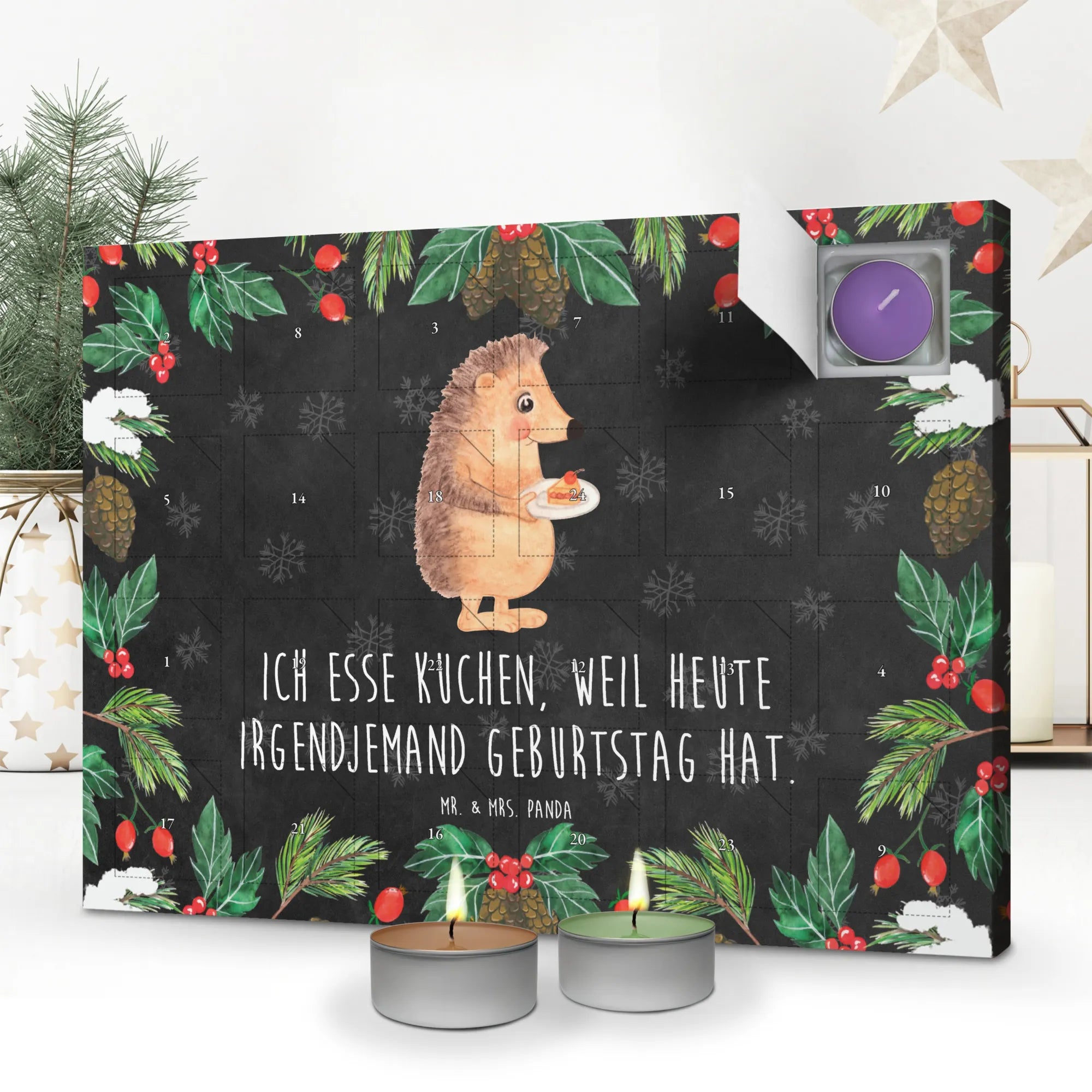 Scented candle advent calendar Hedgehog piece of cake - Chalkboard