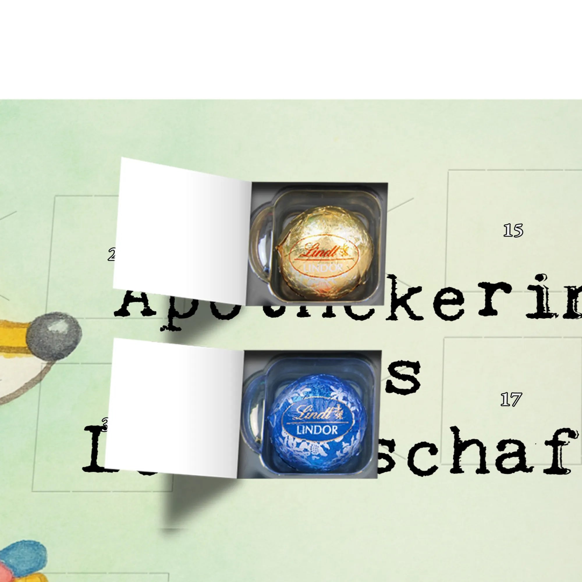 Unser Adventskalender Schokolade von Mr. & Mrs. Panda vereint niedliches Design mit leckerer Überraschung. Bedruckt mit wunderschönen Motiven & Sprüchen, nicht personalisierbar, ist er ein unkompliziertes Geschenk, das Freude macht. Die brillante Druckqualität mit seidenmatter Oberflächenveredelung verleiht dem Kalender einen hochwertigen Look, ergänzt durch bedruckte Seitenflächen für ein rundum stimmiges Design. Maße: 233 mm x 178 mm x 24 mm. Besonderheit: kann aufgehängt oder aufgestellt werden und passt so perfekt in jede Deko. Gefüllt mit Lindt Lindor: 24 einzeln verpackte Markenschokoladen Kugeln in Vollmilch, Feinherb und Weiße Schokolade sorgen für abwechslungsreichen Genuss. Zutaten: Zucker, pflanzliches Fett (Kokosnuss, Palmkern), Kakaobutter, Vollmilchpulver, Kakaomasse, Milchzucker, Magermilchpulver, Butterreinfett, Emulgator (Sojalecithin), Gerstenmalzextrakt, Aromen. Besondere Hinweise: Kann Haselnüsse und Mandeln enthalten. Hol dir diese süße Vorfreude oder verschenke sie – Mr. & Mrs. Panda wünschen dir eine gemütliche Adventszeit!