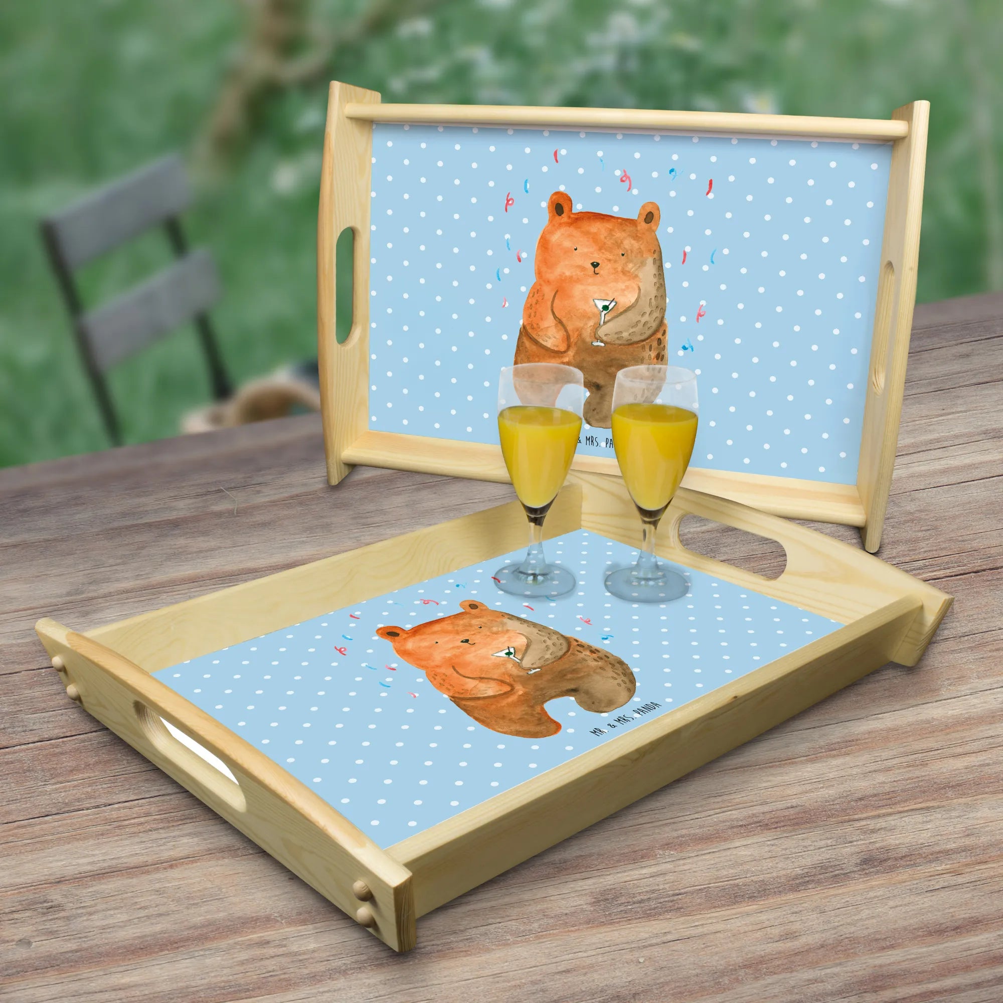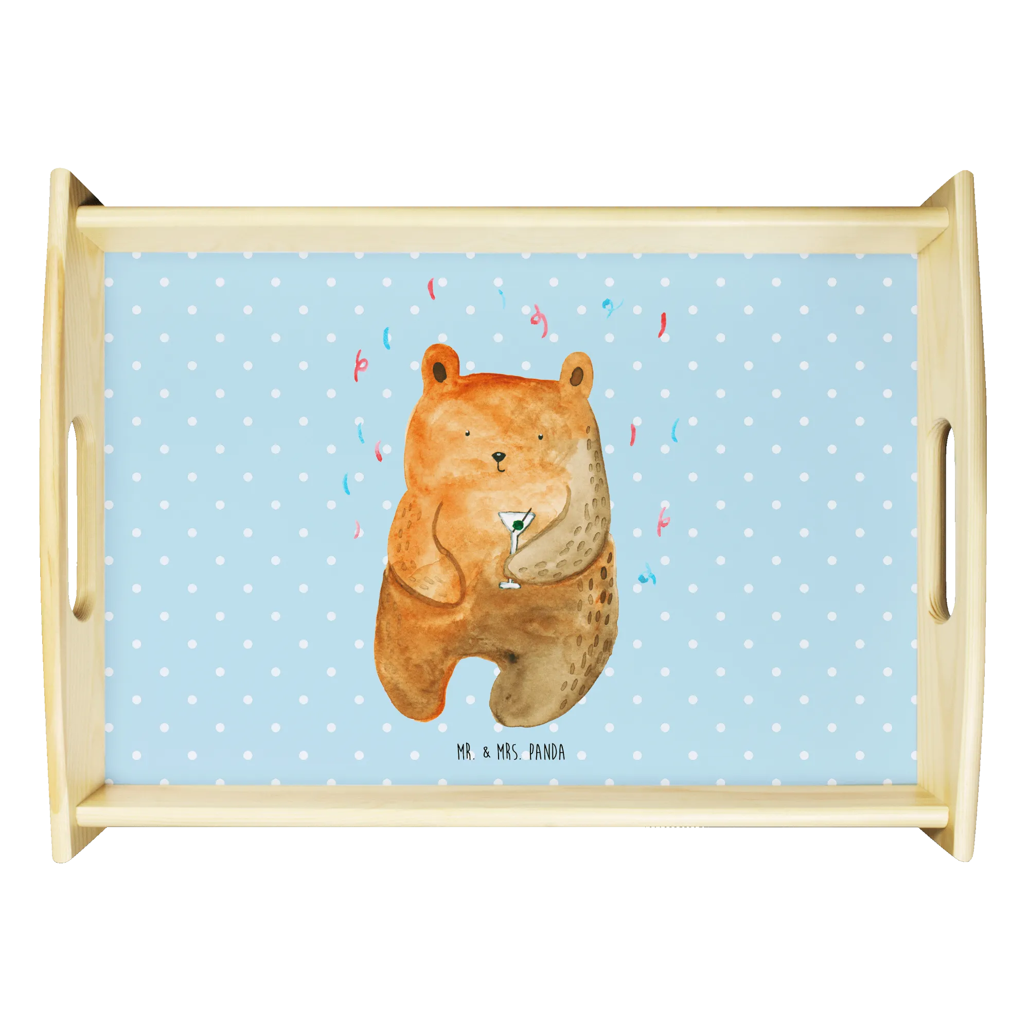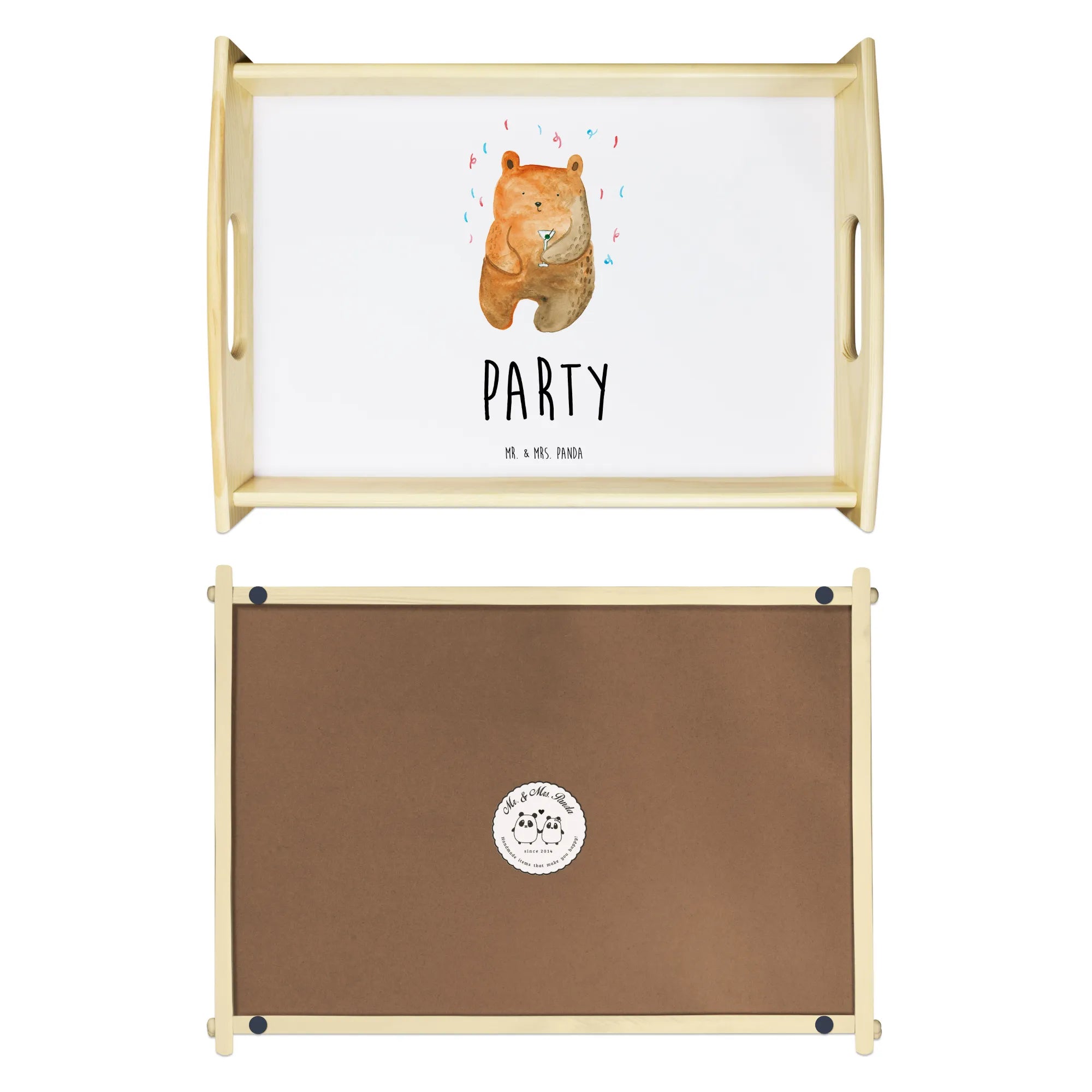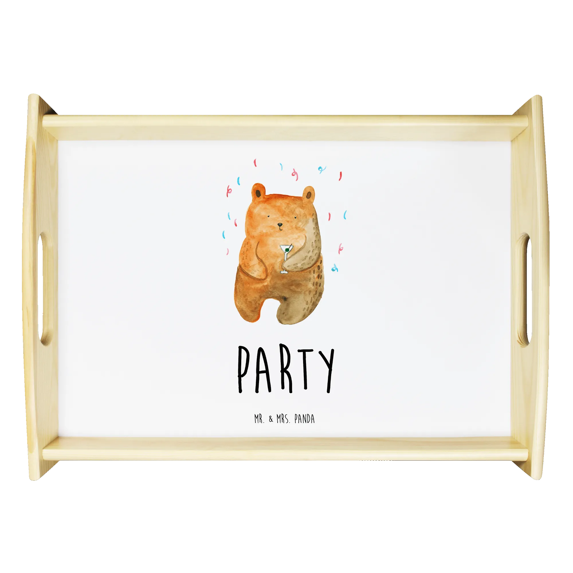 Suchst du ein Tisch- und Frühstückstablett, das praktisch ist und gleichzeitig gute Laune verbreitet? Das Serviertablett Bär Party bringt mit seinem süßen Bären im Partyhütchen sofort Stimmung an Bett, Sofa oder Esstisch. Perfekt als Frühstückstablett, Bett Tablett oder Couchtablett.