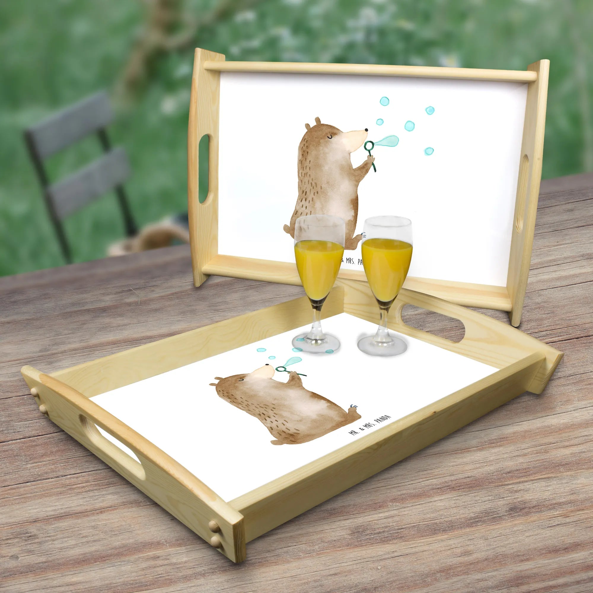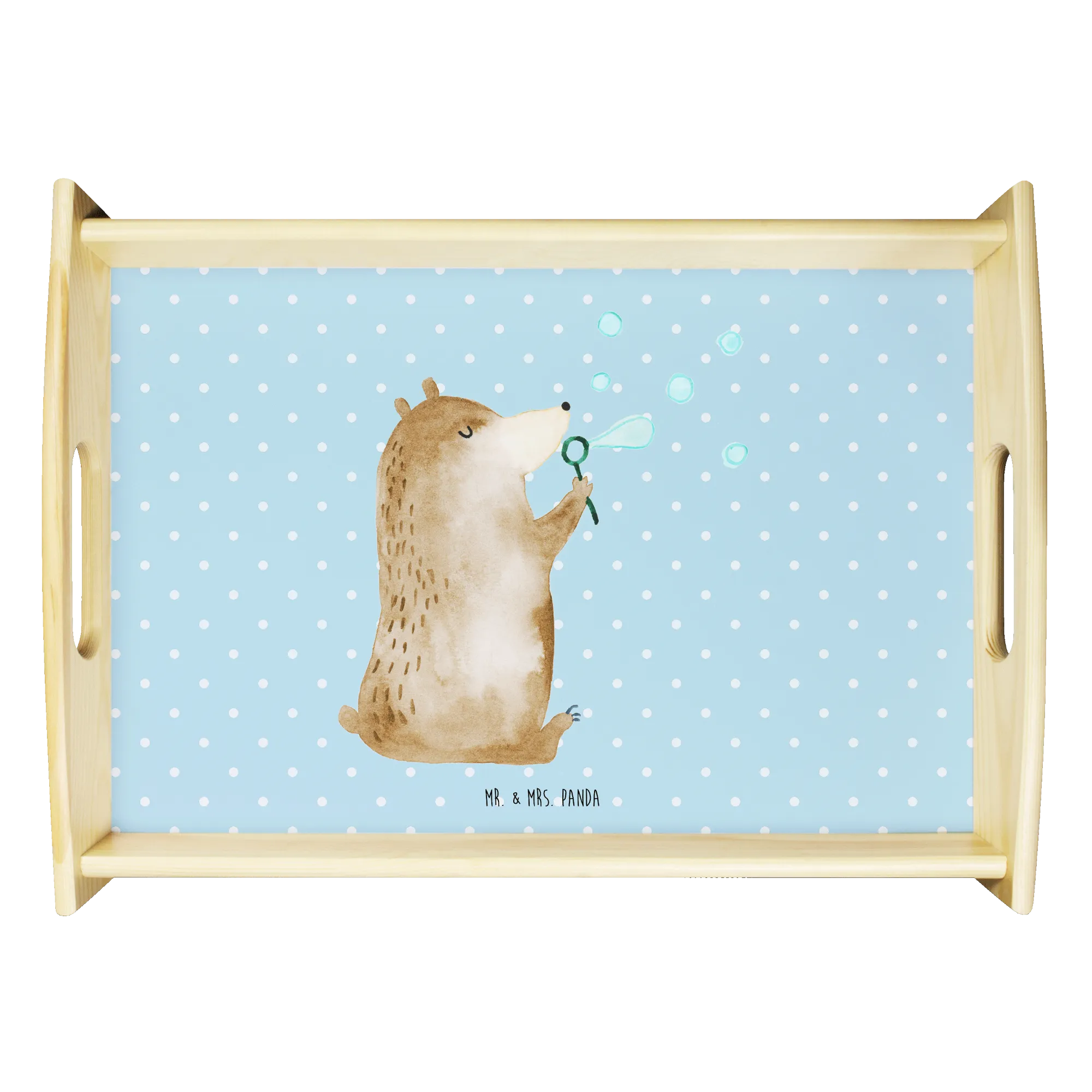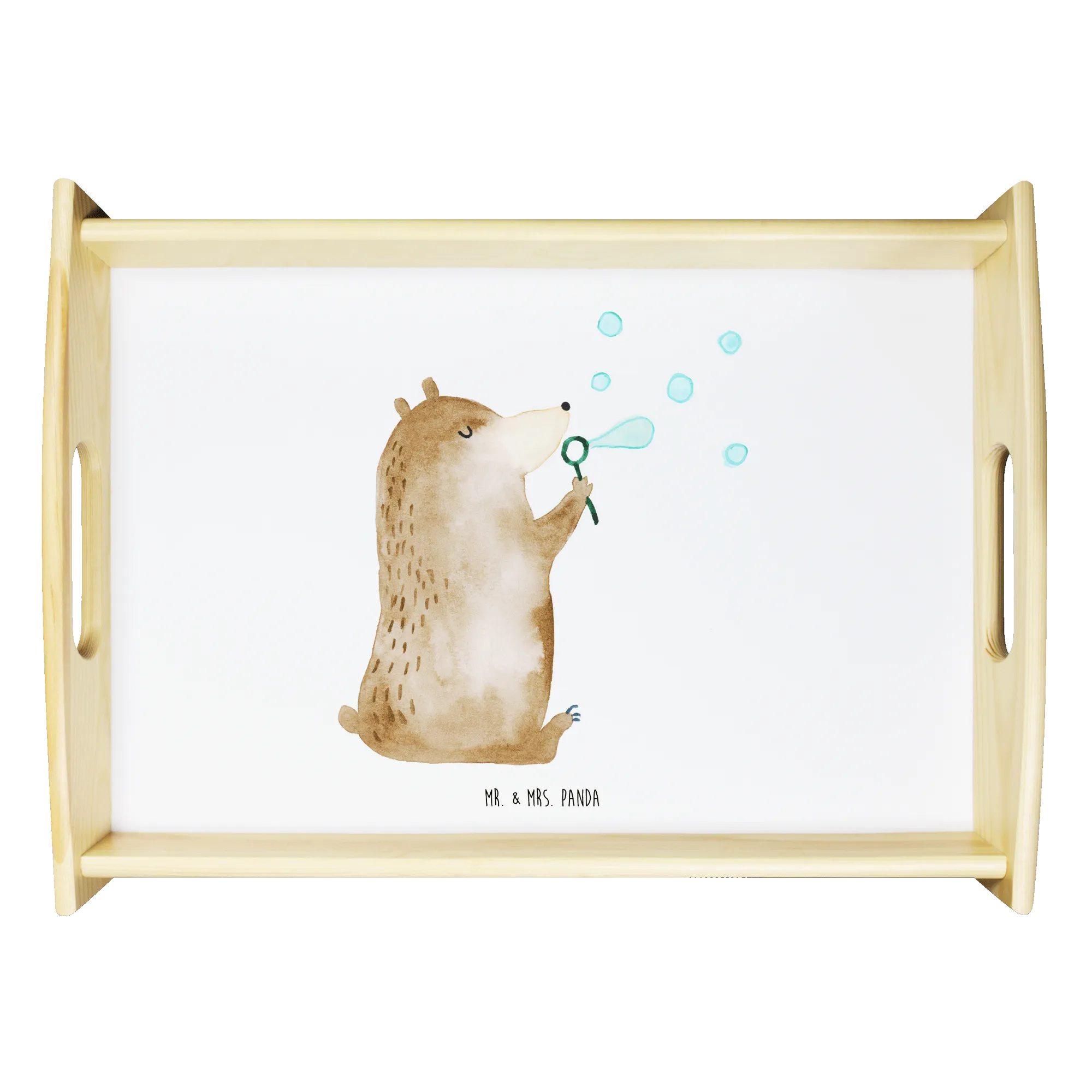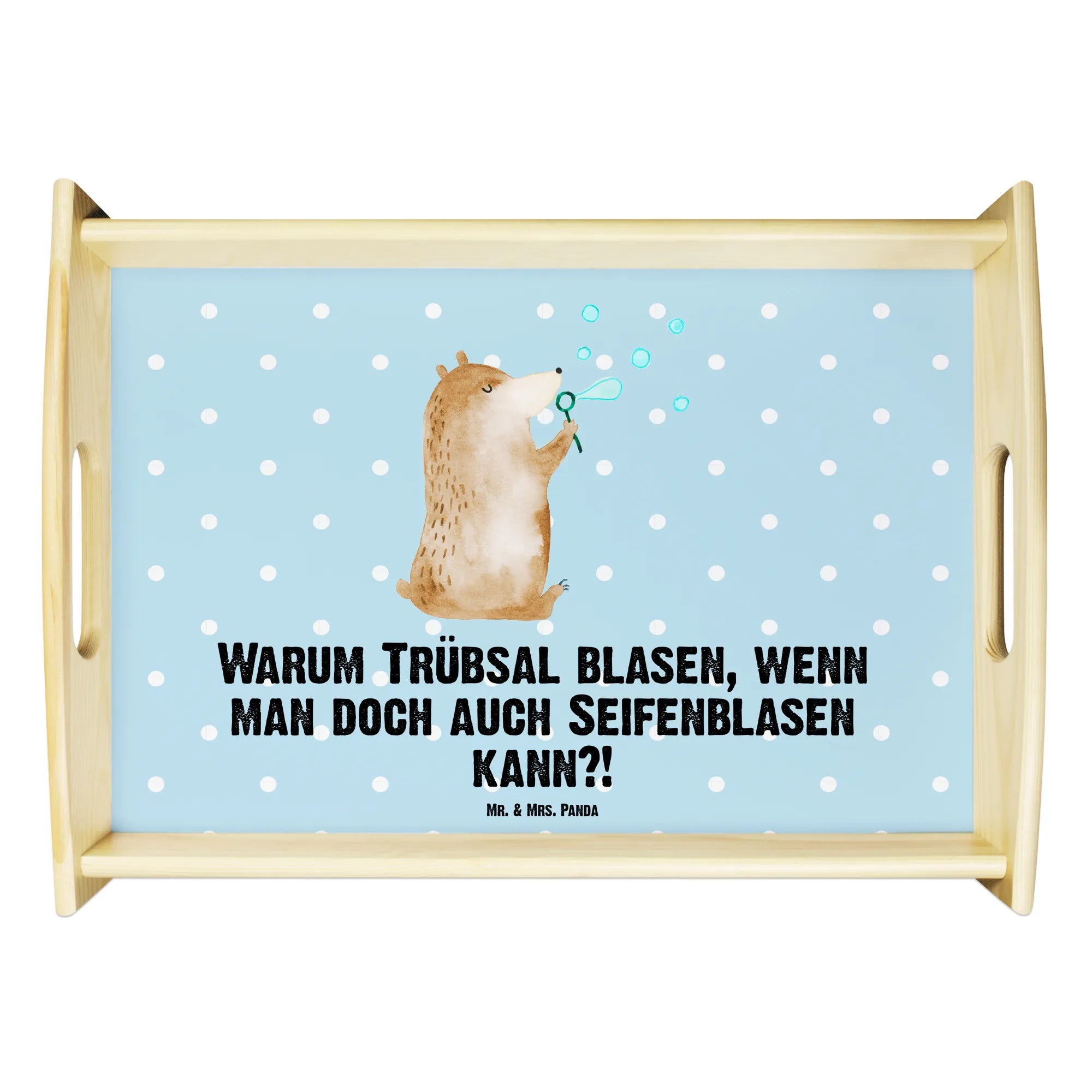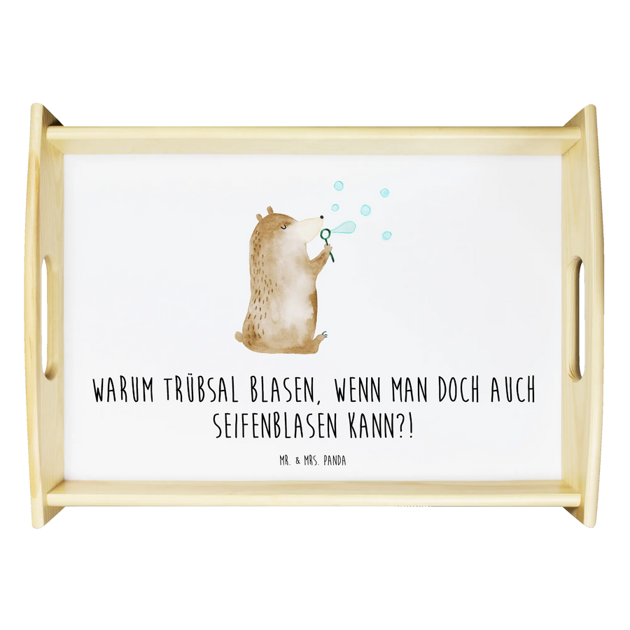 Serving tray bear soap bubbles - with a saying - White