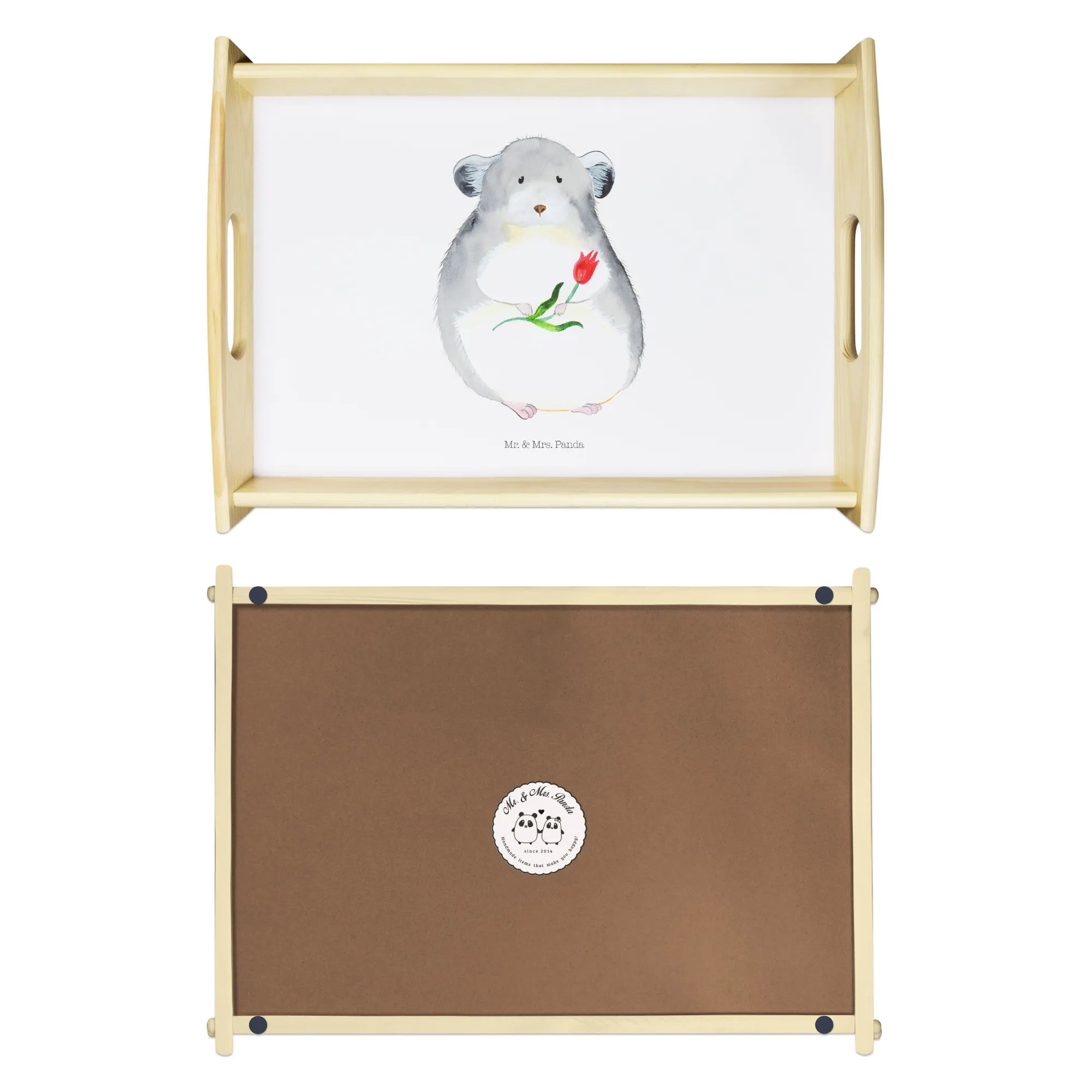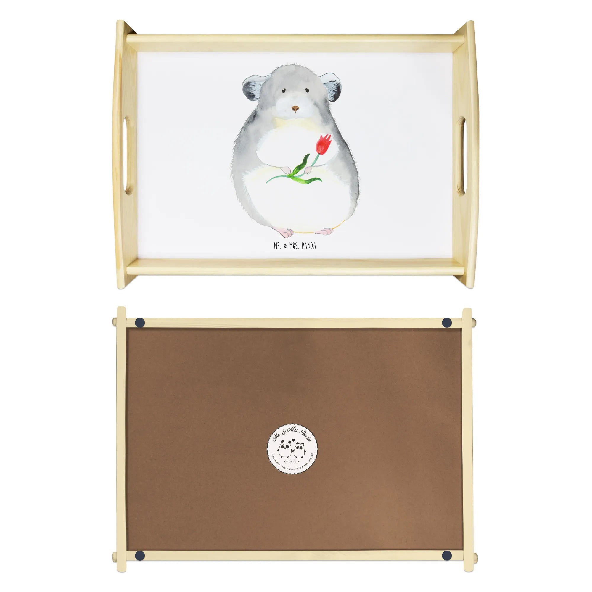 🐼 Durable, scratch-resistant wood tray with easy-carry handles.