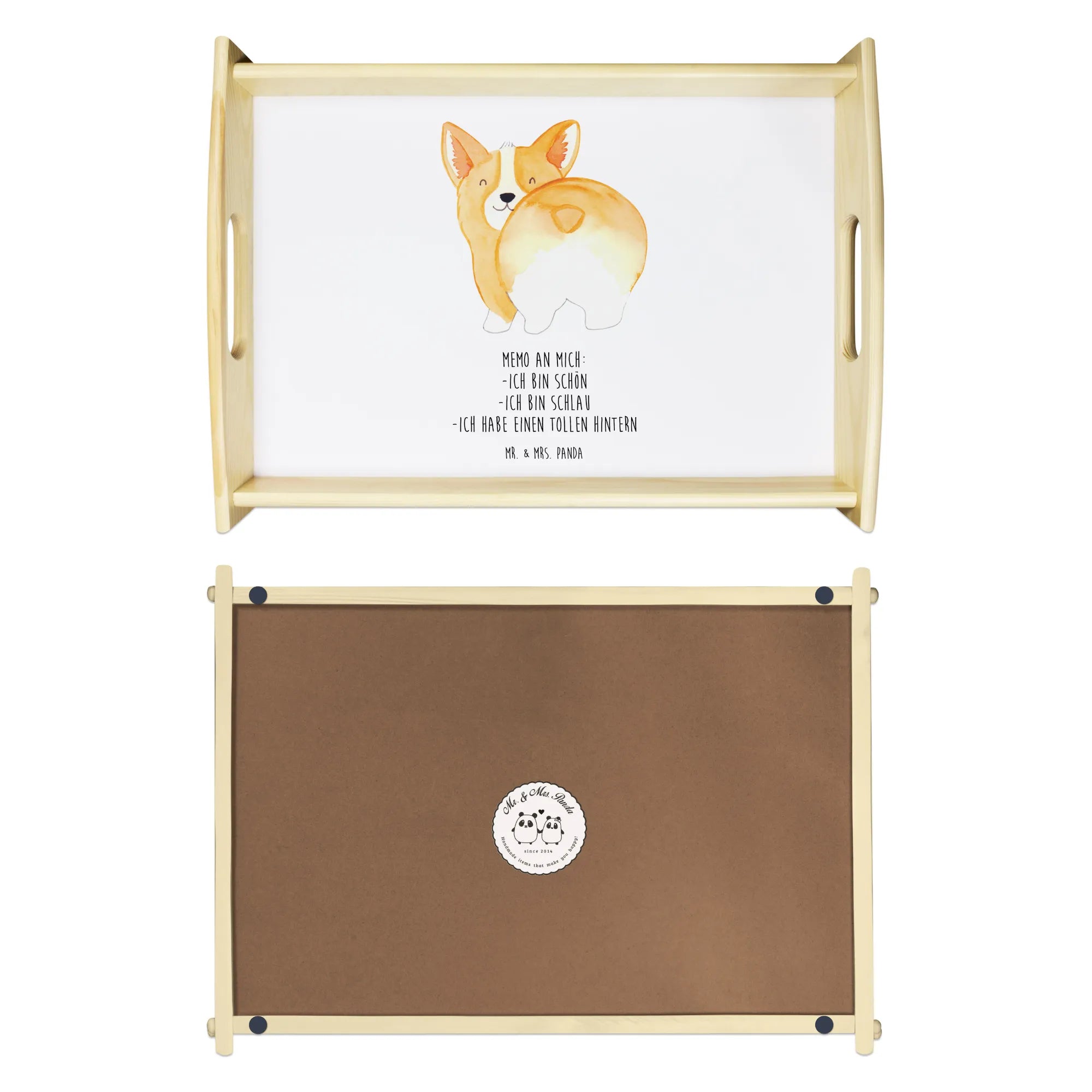Serving tray corgi buttocks - with saying - Hundeglück