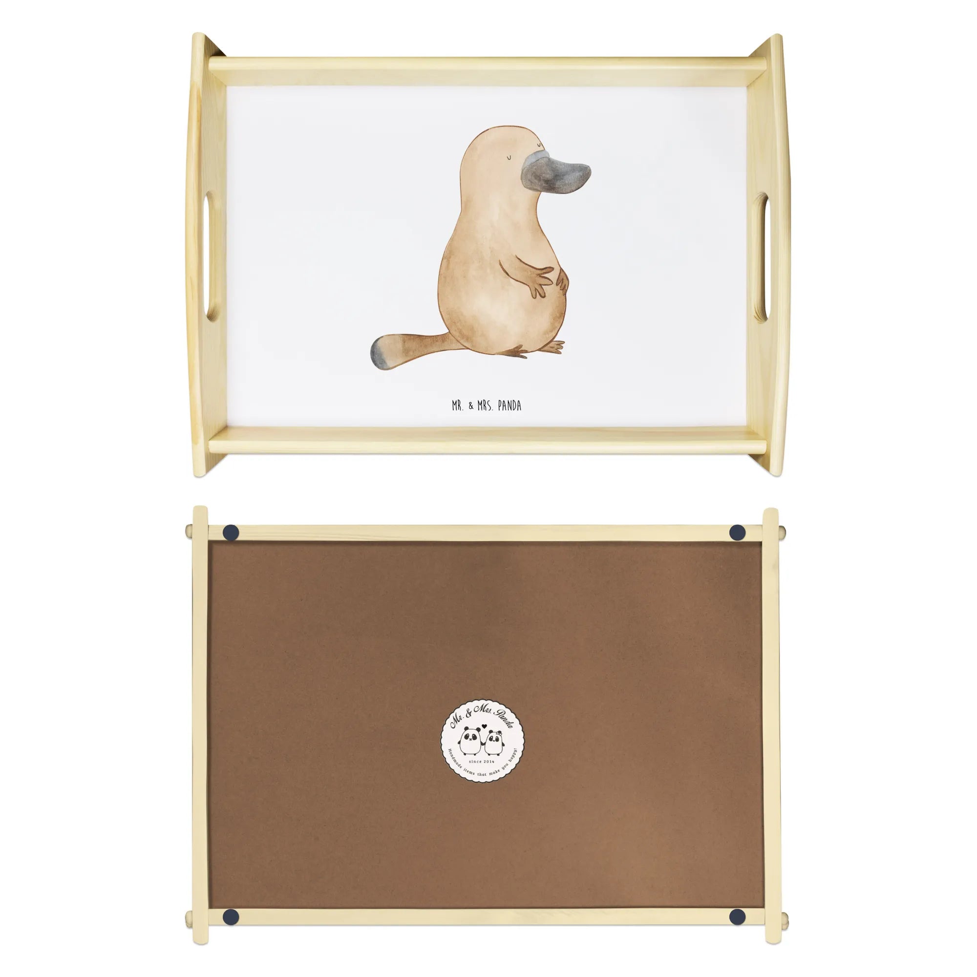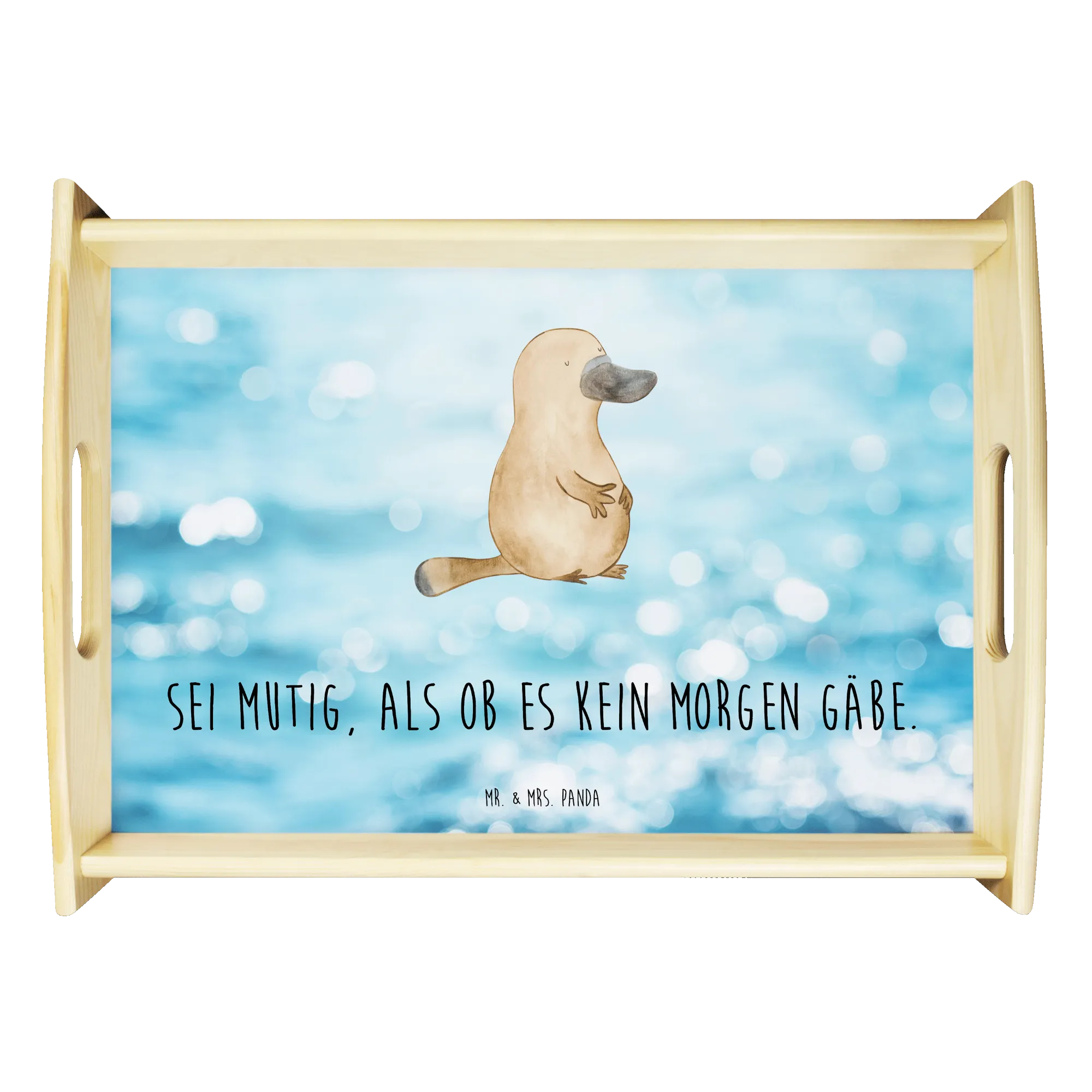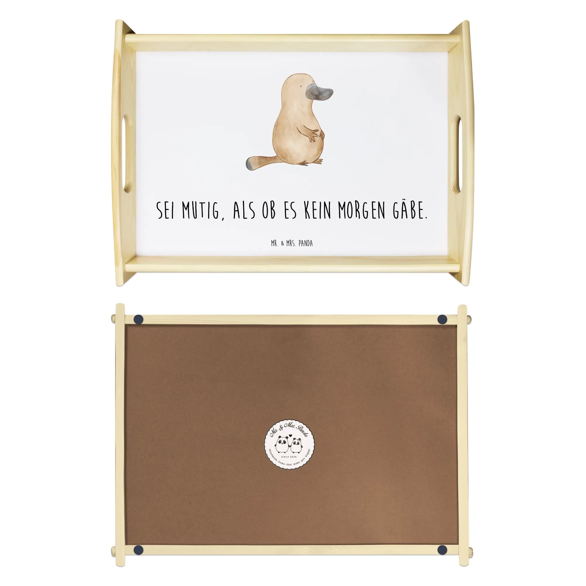 Serving tray platypus courage - with a saying - White