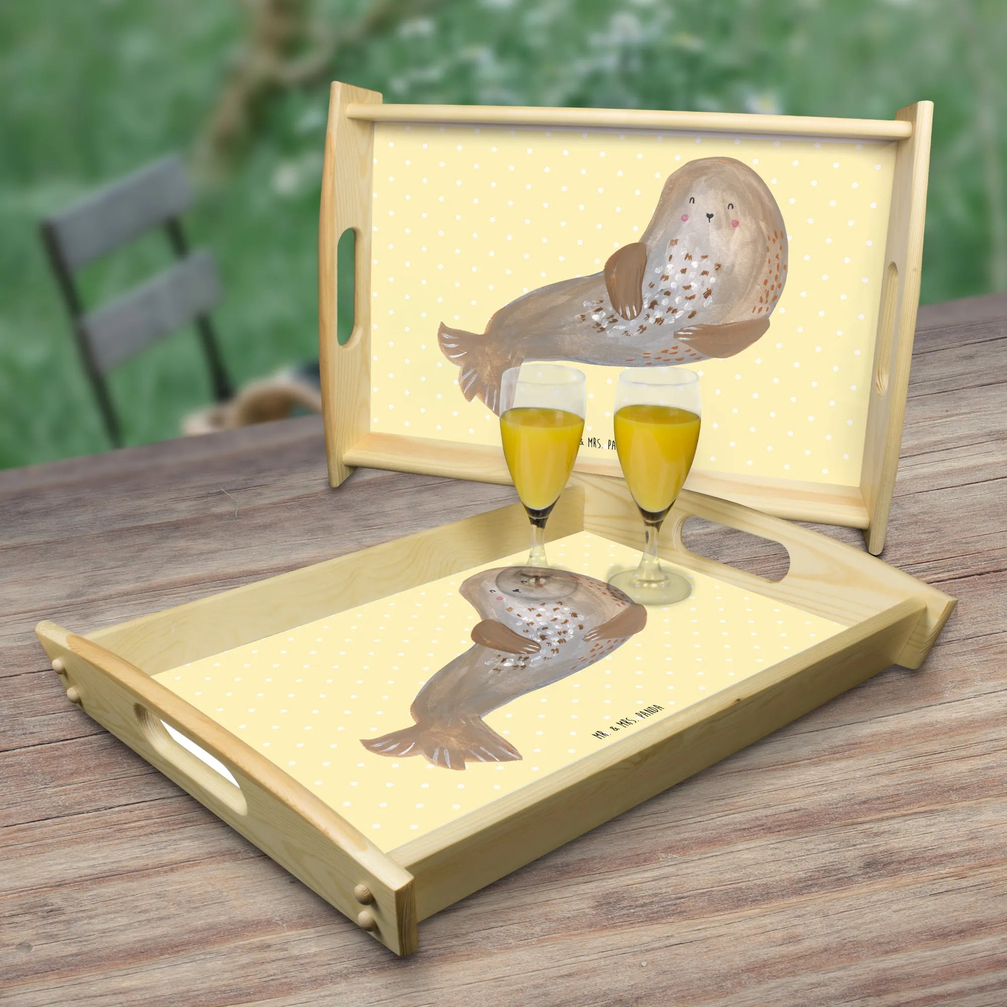 Serving tray seal Laugh - with saying - Pastel Yellow