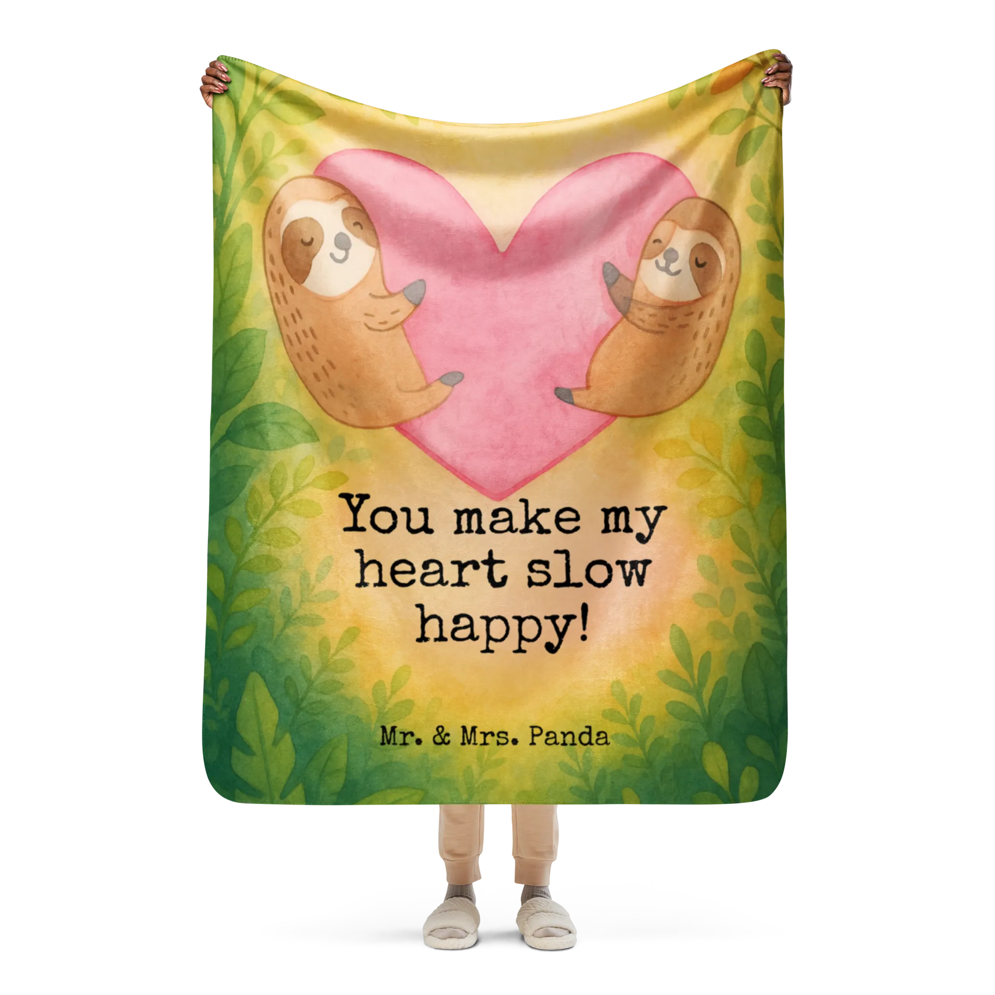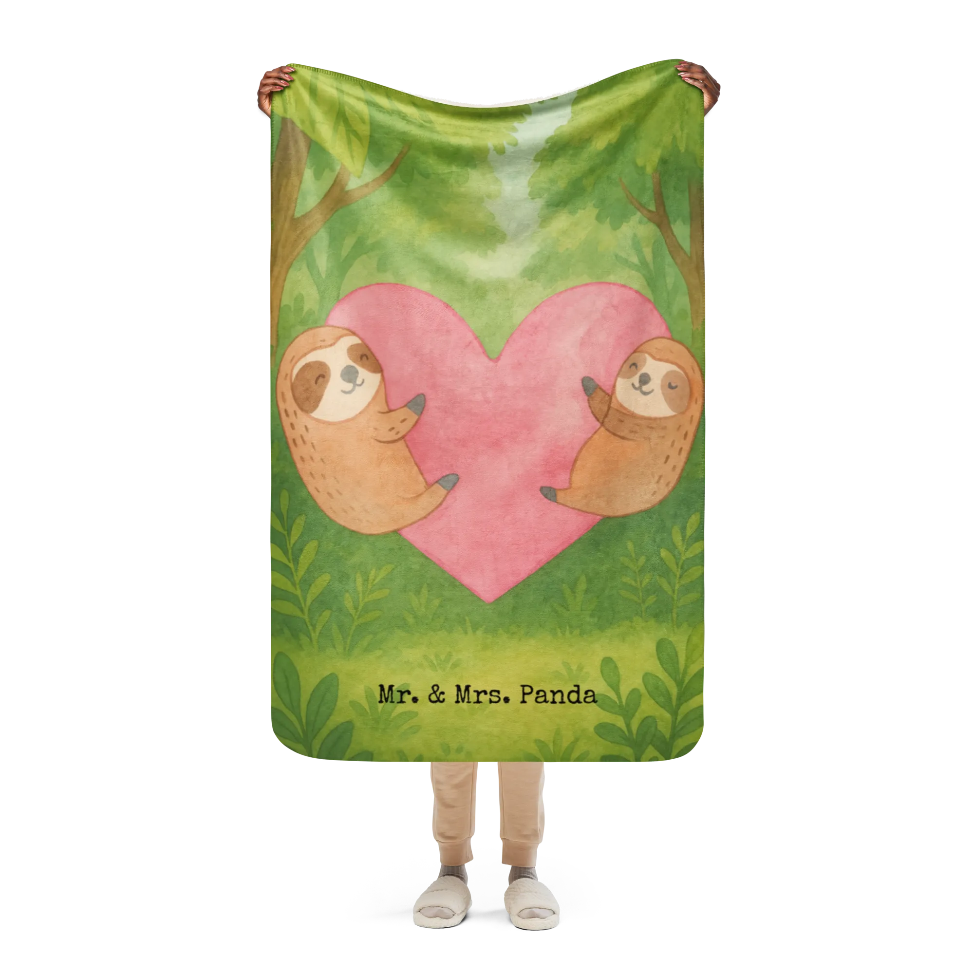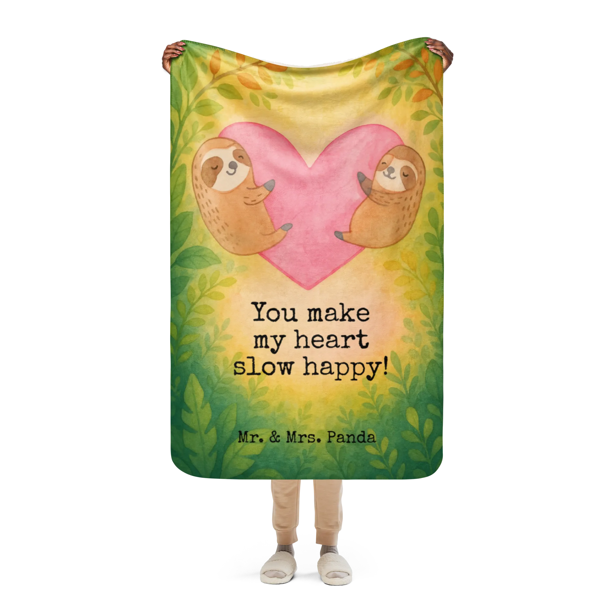 Sherpa cuddly blanket sloths Heart Design - 130 x 155 cm - with saying