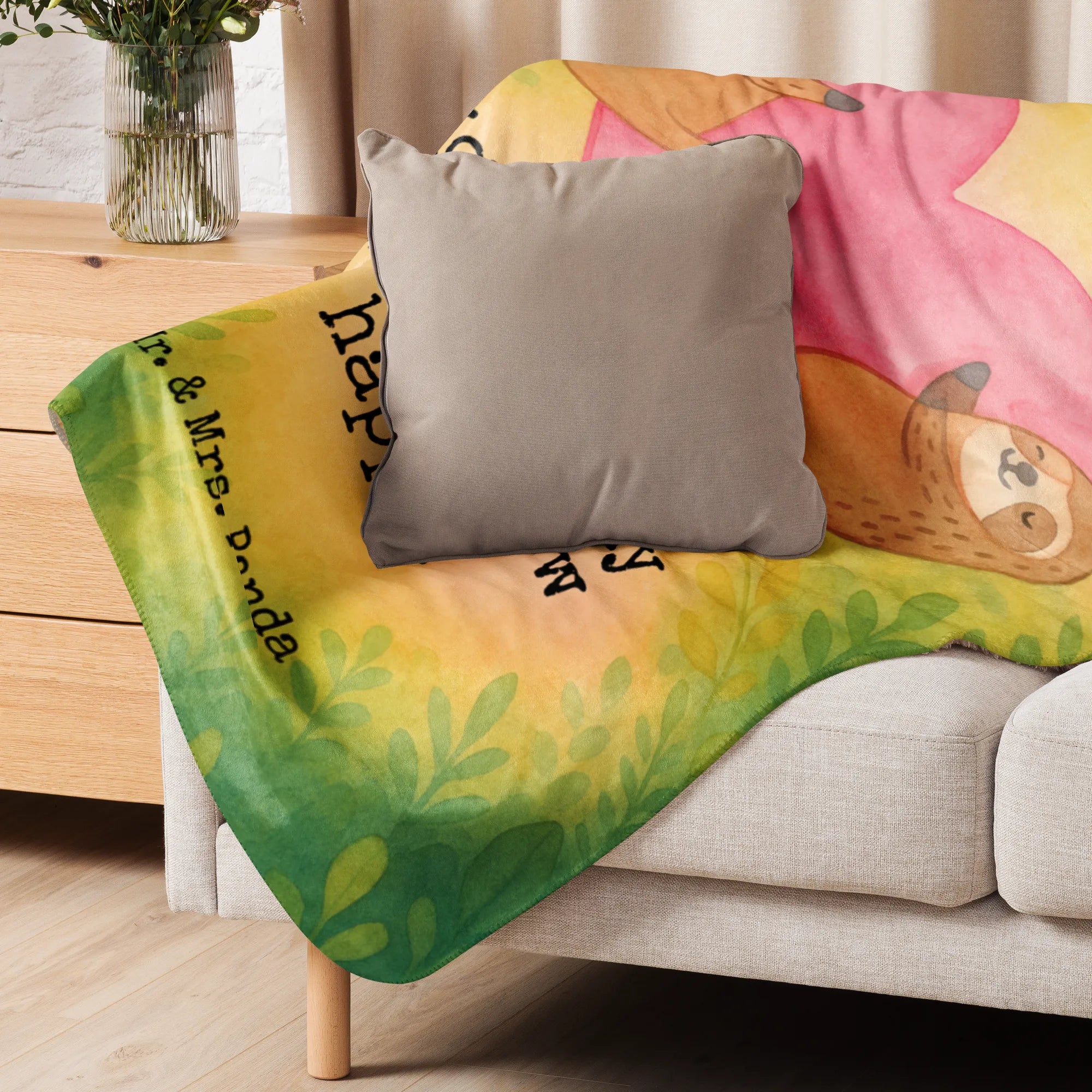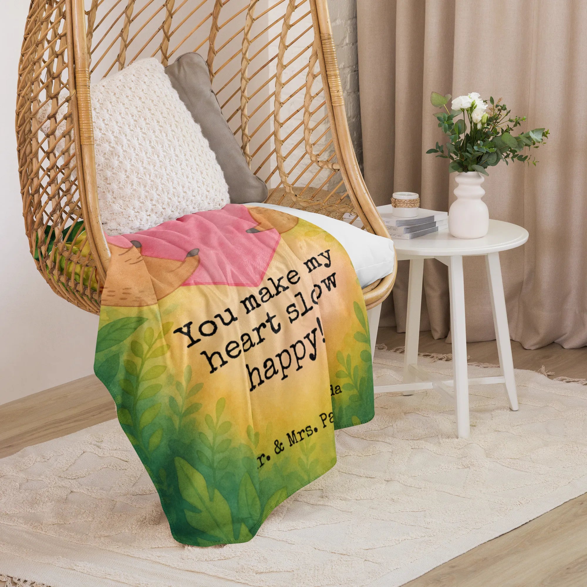 Experience the incredible softness of our Sherpa cuddly blanket by Mr. & Mrs. Panda. Perfectly sized at approximately 1300 mm x 1550 mm (51 inch x 61 inch), it’s the ultimate go-to for snuggling during those chilly evenings on the couch. Made from 100% ultra-soft polyester fibers, featuring a gorgeous smooth side fabric at 220g/m² and a fluffy Sherpa side at 240g/m², this blanket is as warm as it is inviting. Adorned with adorable graphics and joyful phrases, it effortlessly brightens up any room, making it a fantastic choice for both use and decoration. With vibrant hues and exceptional craftsmanship, you’ll love curling up in it time after time. Remember to wash it before you cuddle up for the first time, and use gentle cleaning agents to keep it looking fabulous. Available in various sizes, our Sherpa cuddly blanket is designed to wrap you in luxury and warmth, bringing you comfort all year round!
