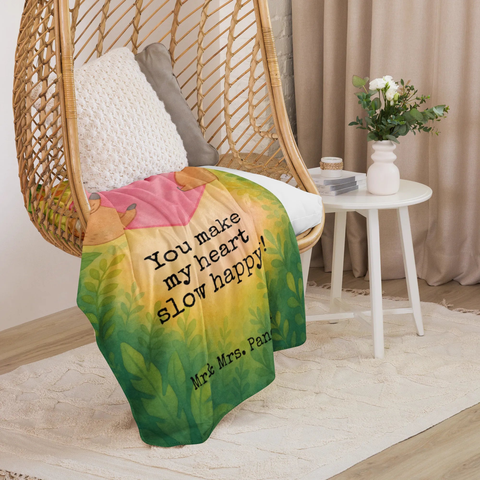 🐼 Brighten your space with our colorful Sherpa cuddly blanket featuring cute prints and quotes.