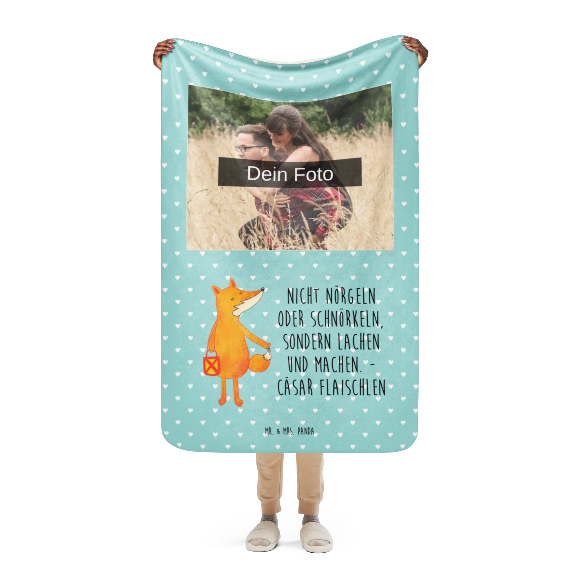 Lass dich von unserer himmlischen Sherpa Foto Kuscheldecke von Mr. & Mrs. Panda verwöhnen! Diese hochwertige Decke hat die Maße 1300 mm x 1550 mm und bietet dir unvergleichlichen Komfort und Wärme. Hergestellt aus 100 % ultrweichen Polyesterfasern, mit einer Obermaterialkombination von 51,5 % und einem kuscheligen Sherpa-Gewebe von 48,5 %, sorgt diese Decke für ein Gefühl von purer Gemütlichkeit. Die beiden Stoffarten haben eine angenehme Grammatur von 220 g/m² für den glatten Seitenstoff und 240 g/m² für das warme Sherpa. Egal, ob du auf der Couch entspannst oder die Decke als stilvollen Überwurf nutzen möchtest, ihre super leuchtenden Farben und das niedliche Design mit Sprüchen und Motiven von Mr. & Mrs. Panda machen sie zum perfekten Begleiter für gemütliche Abende. Außerdem kannst du sie mit deinem eigenen Wunschfoto personalisieren, sodass sie zu einem einzigartigen Highlight in deinem Zuhause wird. Denke daran, die Decke vor der ersten Nutzung zu waschen, um die besten Ergebnisse zu erzielen!