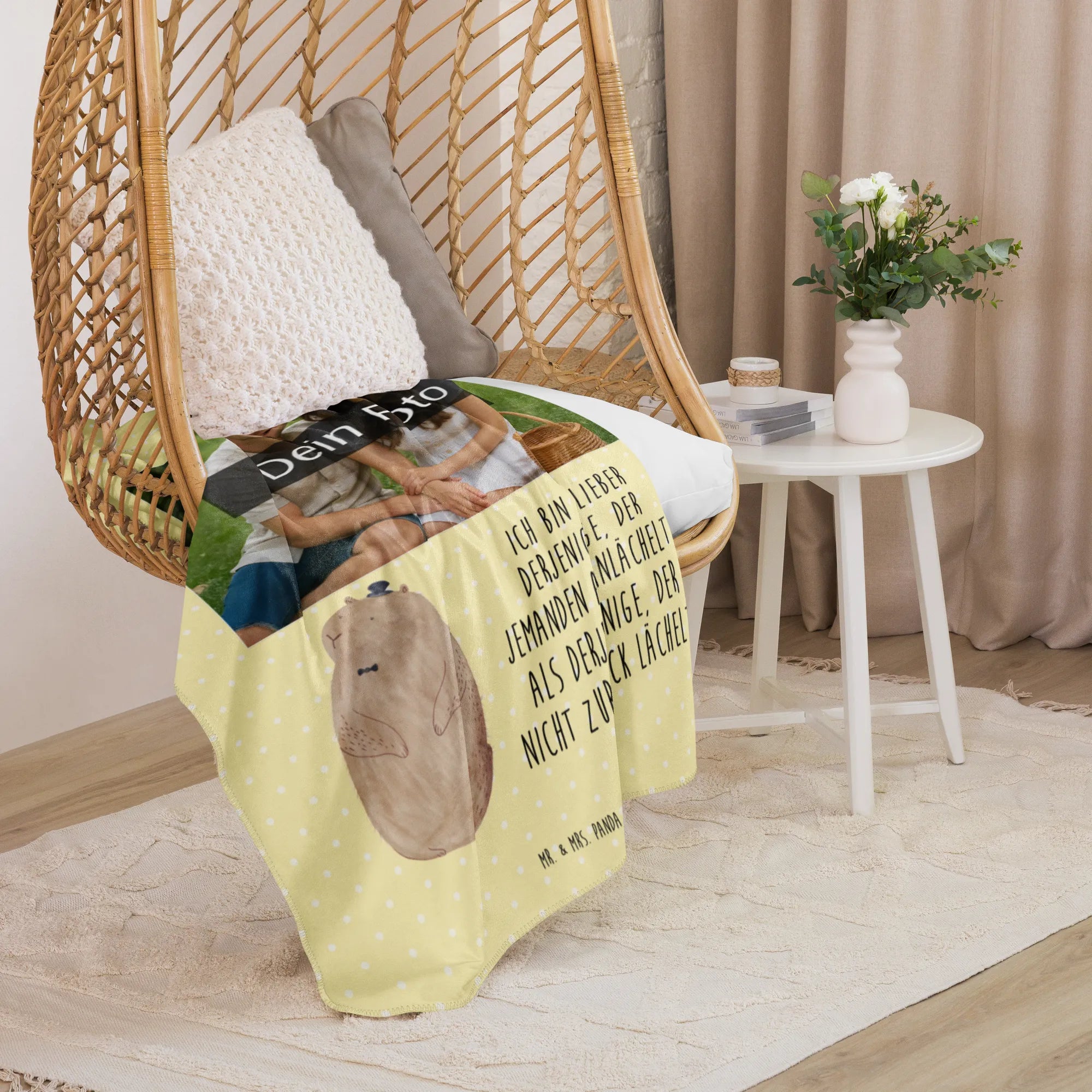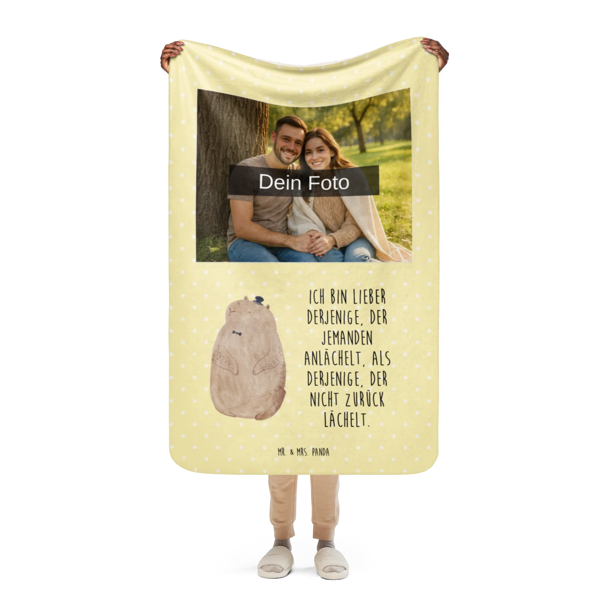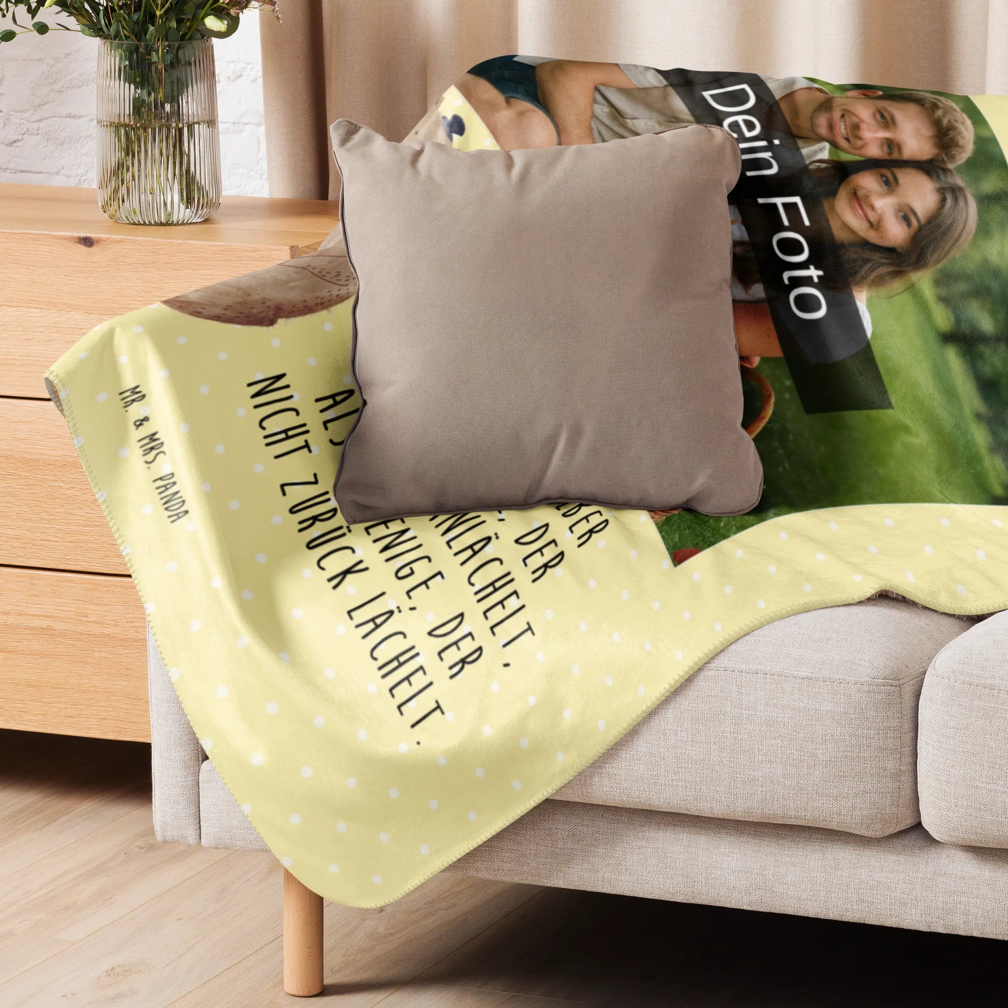 Entdecke die zauberhafte Sherpa Foto Kuscheldecke von Mr. & Mrs. Panda, die deinen Raum mit Wärme und Komfort erfüllt! Mit großzügigen 1500 mm x 1000 mm eignet sich diese Decke nicht nur zum Kuscheln, sondern auch als stilvolles Wohnaccessoire. Sie wird aus 100% ultraweichen Polyesterfasern gefertigt, wobei der glatte Stoff und die flauschige Sherpa-Seite für ein unvergleichliches Kuschelerlebnis sorgen. Ihre lebendigen Farben bringen Frische in dein Zuhause und die Möglichkeit, sie mit deinem Wunschfoto zu bedrucken, macht sie zu einem ganz besonderen Geschenk für Freunde und Familie. Sei es für einen gemütlichen Abend vor dem Fernseher oder als Highlight in deinem Schlafzimmer – diese Decke macht immer eine gute Figur. Bitte denk daran, sie vor der ersten Nutzung zu waschen, um die besten Ergebnisse zu genießen! Pflegehinweise: sanfte Reinigungsmittel sind empfehlenswert. Lass dich von der Gemütlichkeit verzaubern, die diese Kuscheldecke aus dem Hause Mr. & Mrs. Panda mit sich bringt!